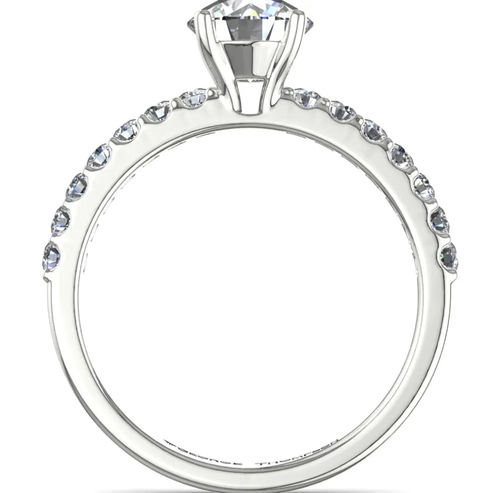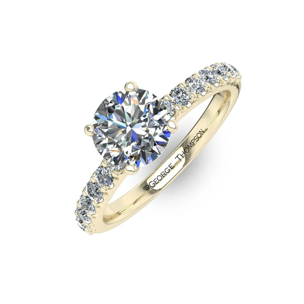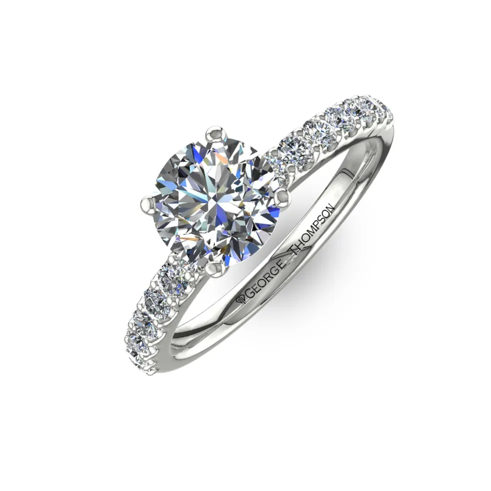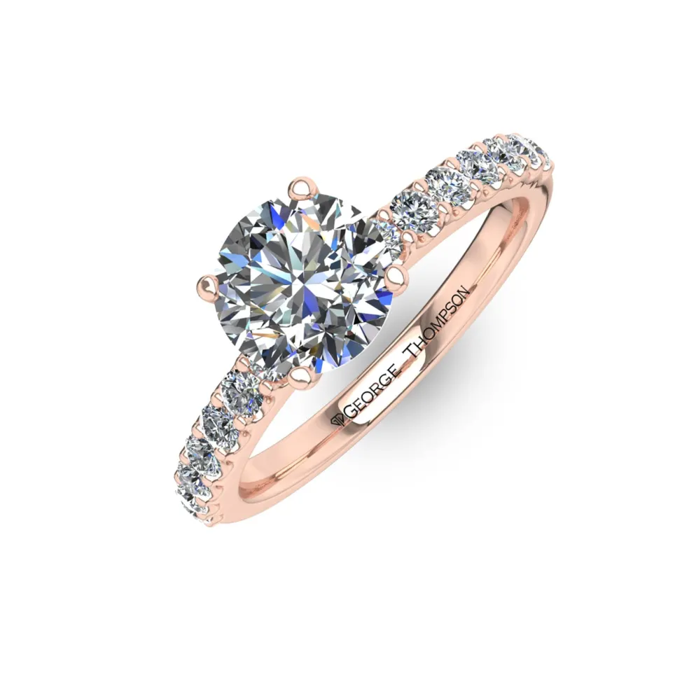 Meet the Acacia, a timeless and elegant diamond engagement ring that radiates classic beauty. The centerpiece of this stunning ring is a breathtaking 0.80ct Round Brilliant Diamond, accented by 14 additional Round Brilliant diamonds with a total weight of approximately 0.25cts. With a total diamond weight of approximately 1.05cts., the Acacia is a true symbol of love and commitment.