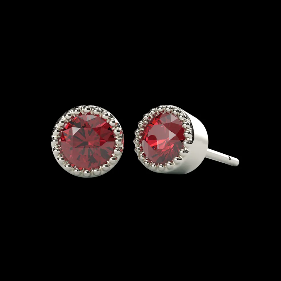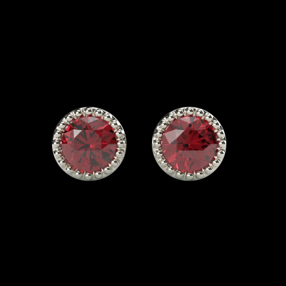 At the heart of this enchanting pair, two brilliant round rubies, totaling 0.30 carats, take center stage, infusing your look with a rich, captivating hue. These rubies are not just gemstones; they’re small but mighty bursts of color, nestled in the delicate embrace of white gold settings that add a touch of contemporary chic.