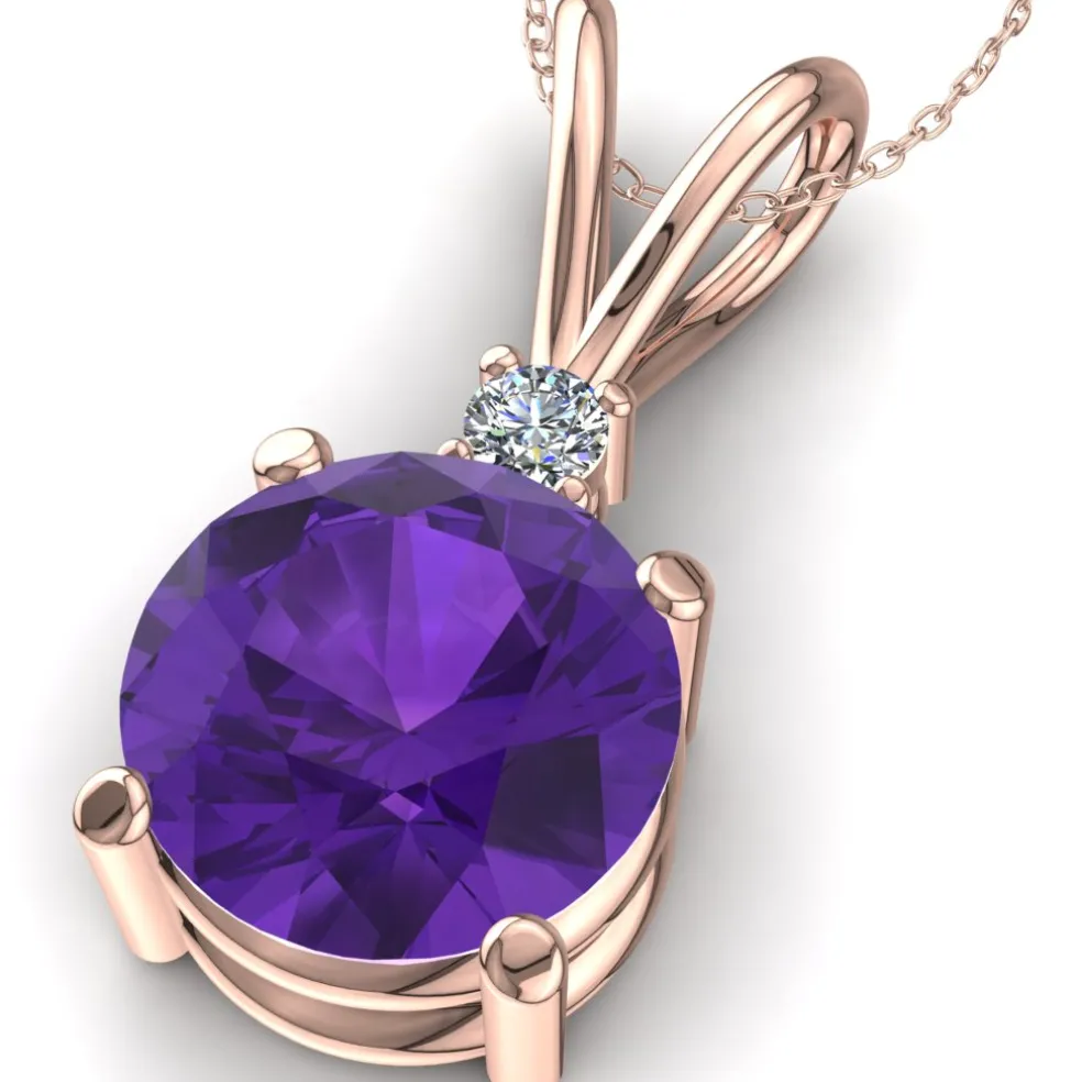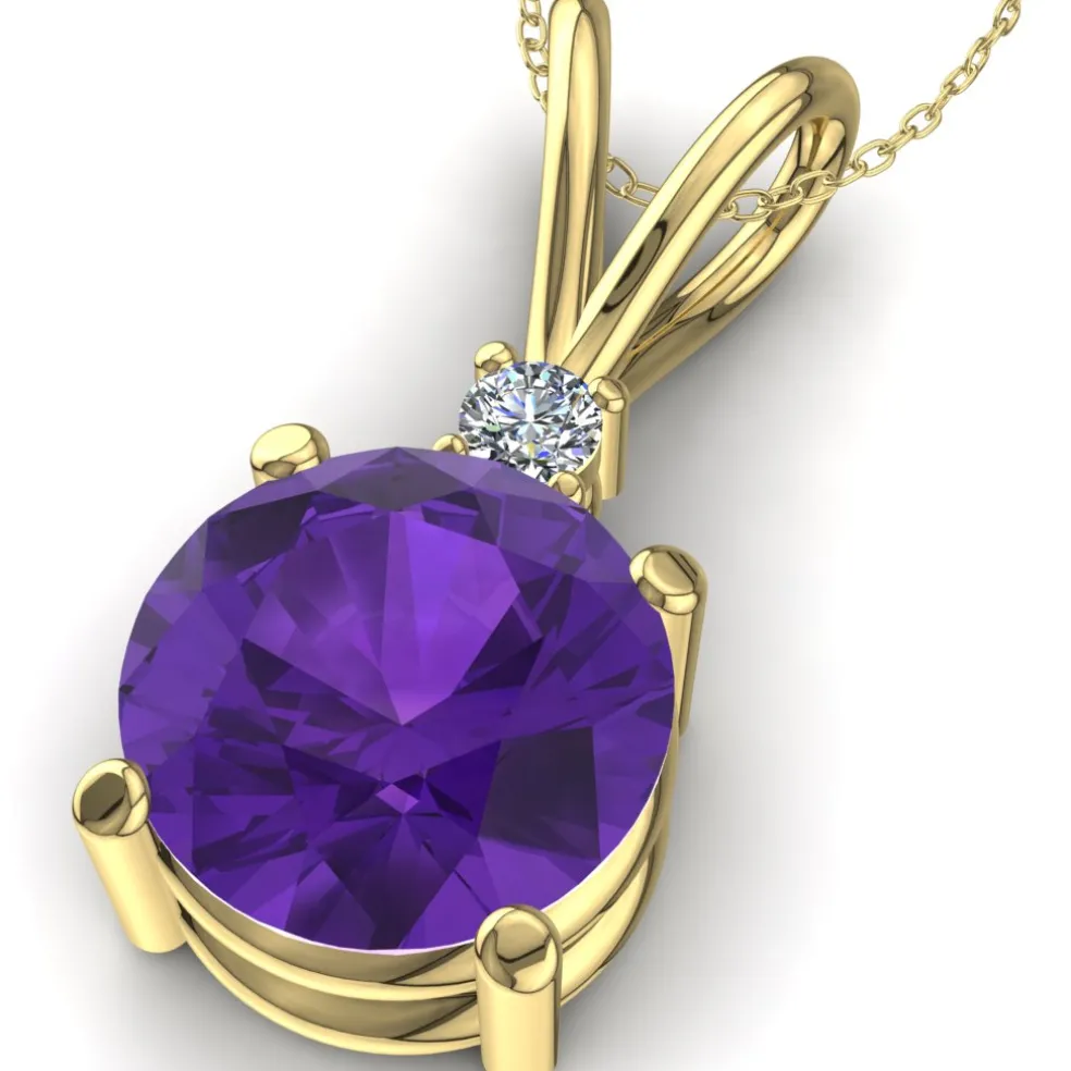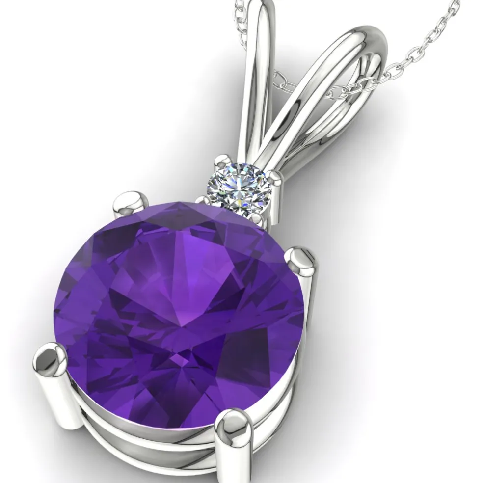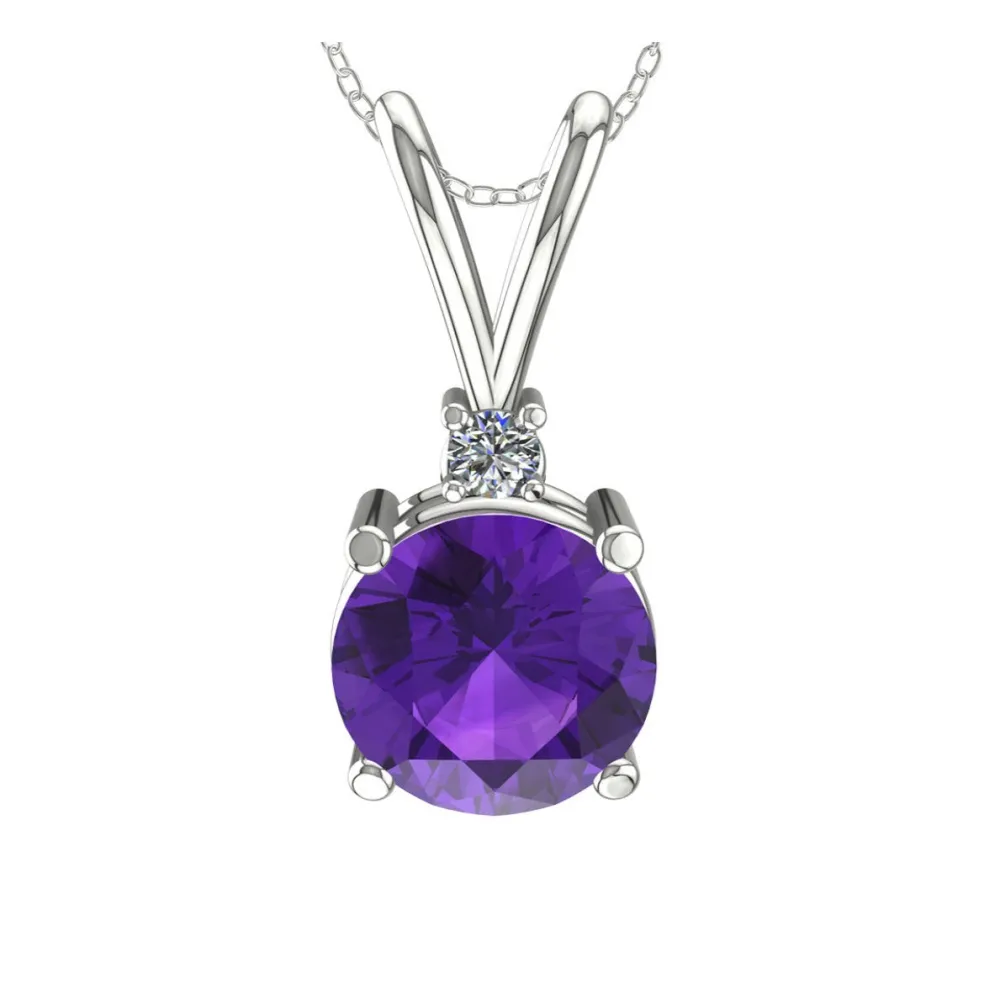 This stunning and elegant piece is sure to add a touch of sophistication to any outfit. The centerpiece of this pendant is a beautiful Amethyst gemstone, approximately 0.90ct in weight, which is perfectly complemented by a single round brilliant diamond of approximately 0.05cts. But that’s not all, the Carinna is also available in Blue Topaz and Citrine gemstones, giving you the opportunity to choose the gemstone that best reflects your style and personality.