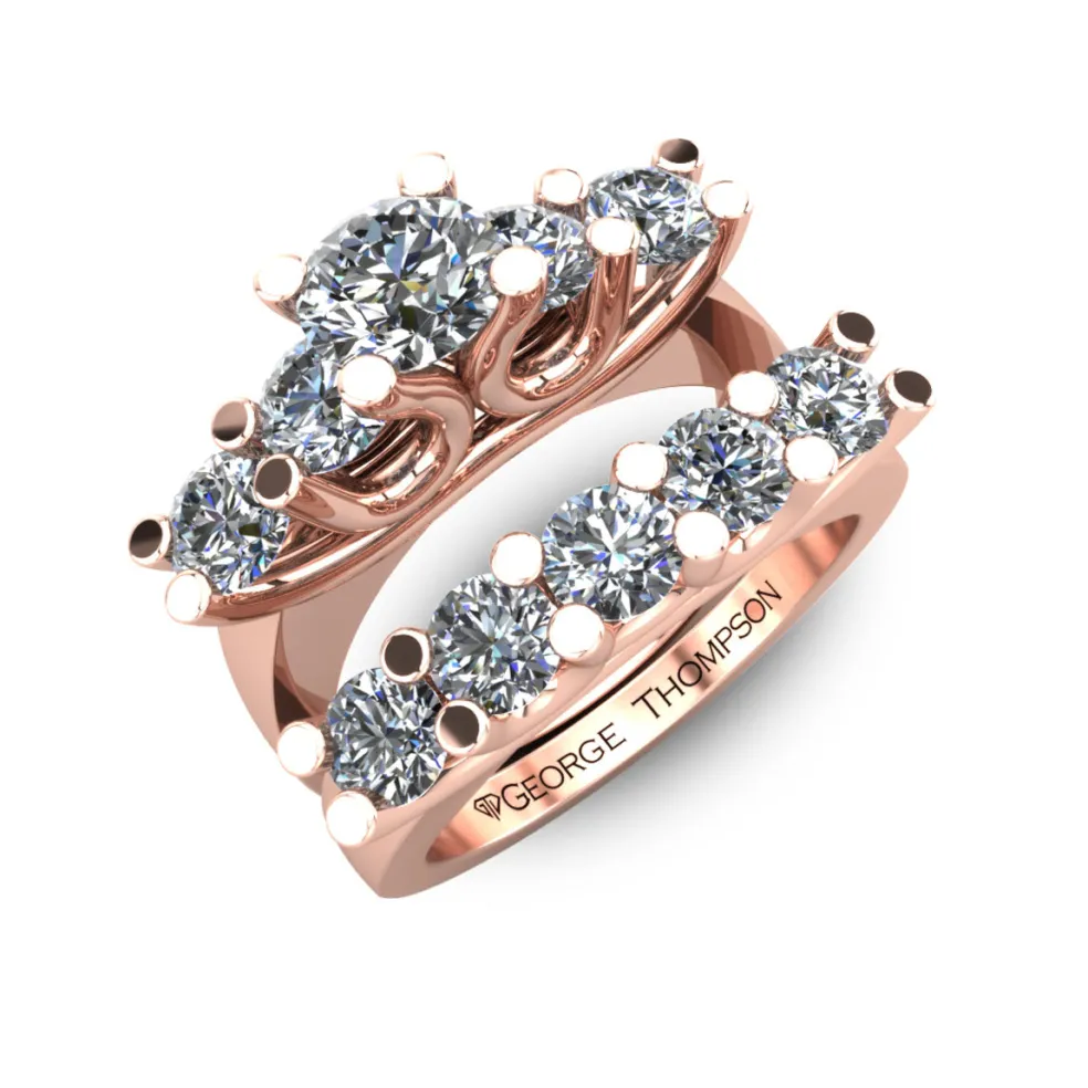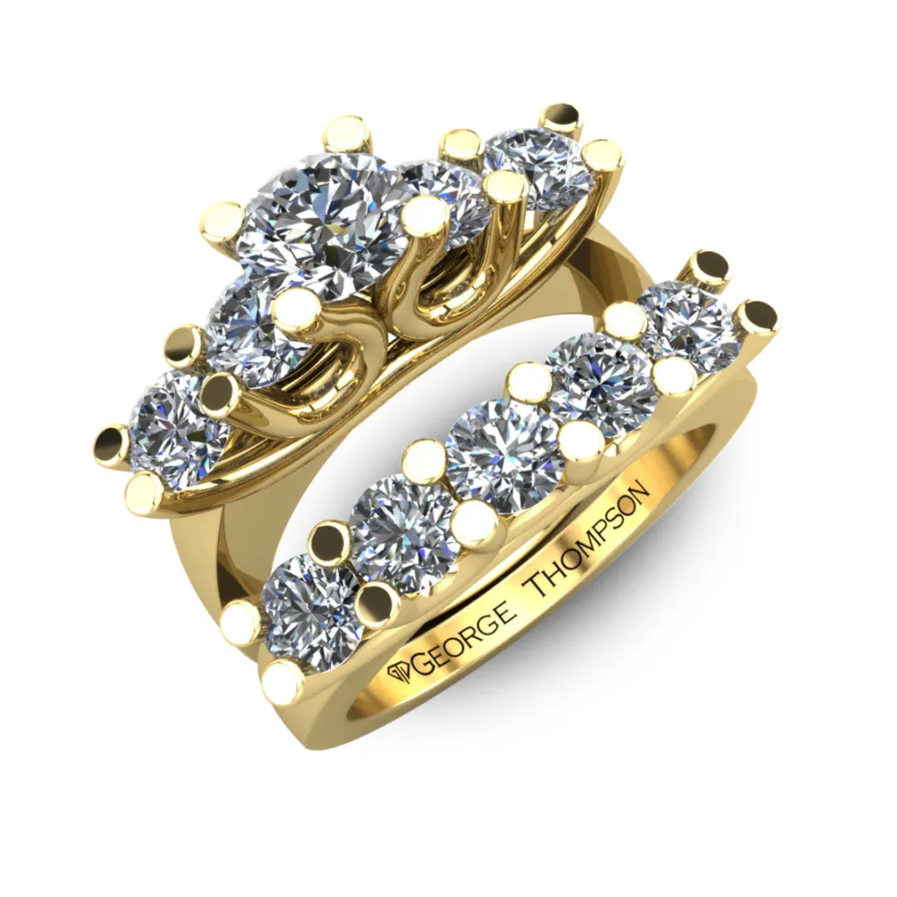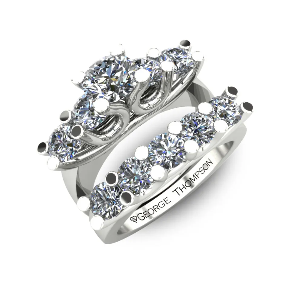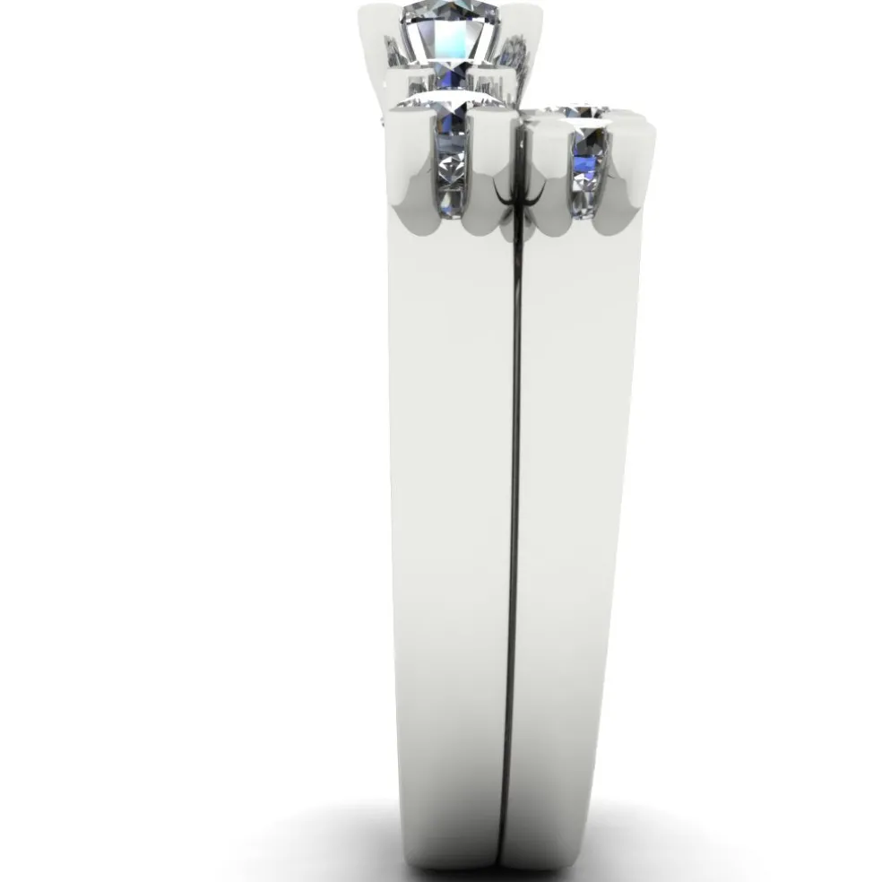 Celebrate your love with the Costada, a stunning and dazzling wedding set that will take your breath away. It is made of 14kt white gold and features a round brilliant diamond at the center that weighs approximately 1/2ct. The ring is also adorned with 9 round brilliant accent diamonds with a total weight of approximately 1.40cts, making the total diamond weight of the ring approximately 1.90cts.