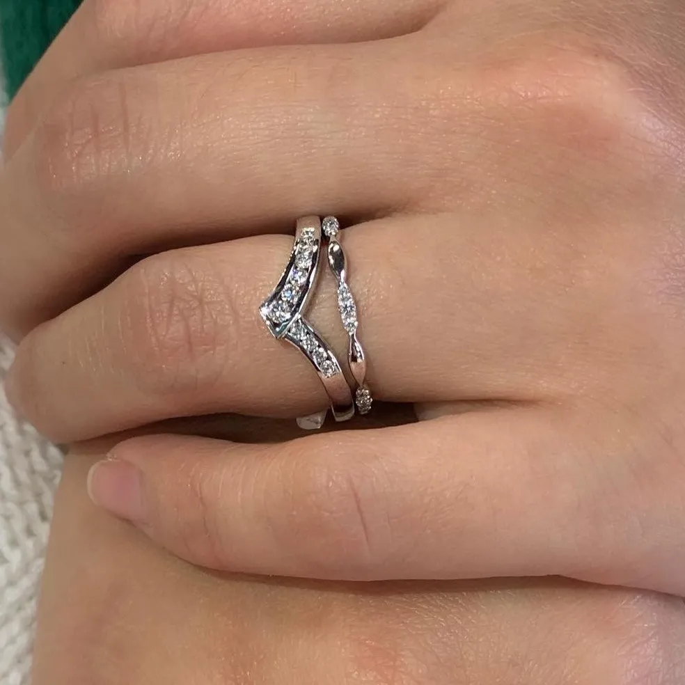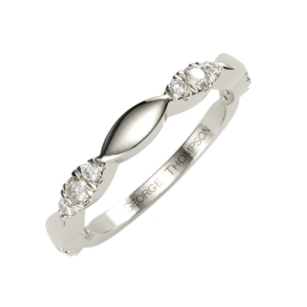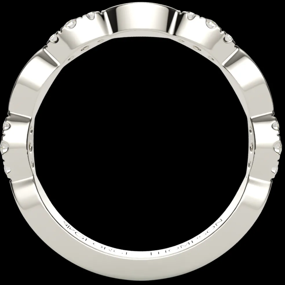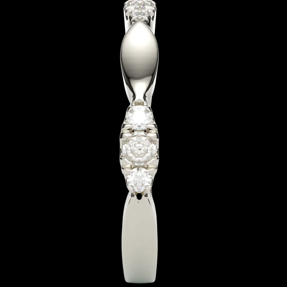 The Damiana is a beautiful and simple piece that exudes elegance that features 12 Round Brilliant accent diamonds with an approximate total weight of 0.15cts. Crafted with 14kt white gold, this ring weighs approximately 2.20 grams, this ring is both stunning and timeless.