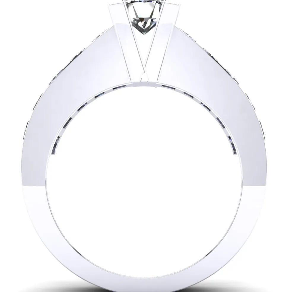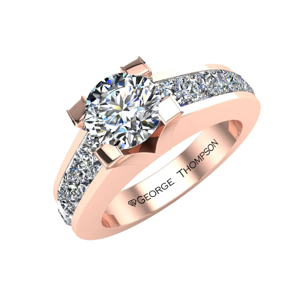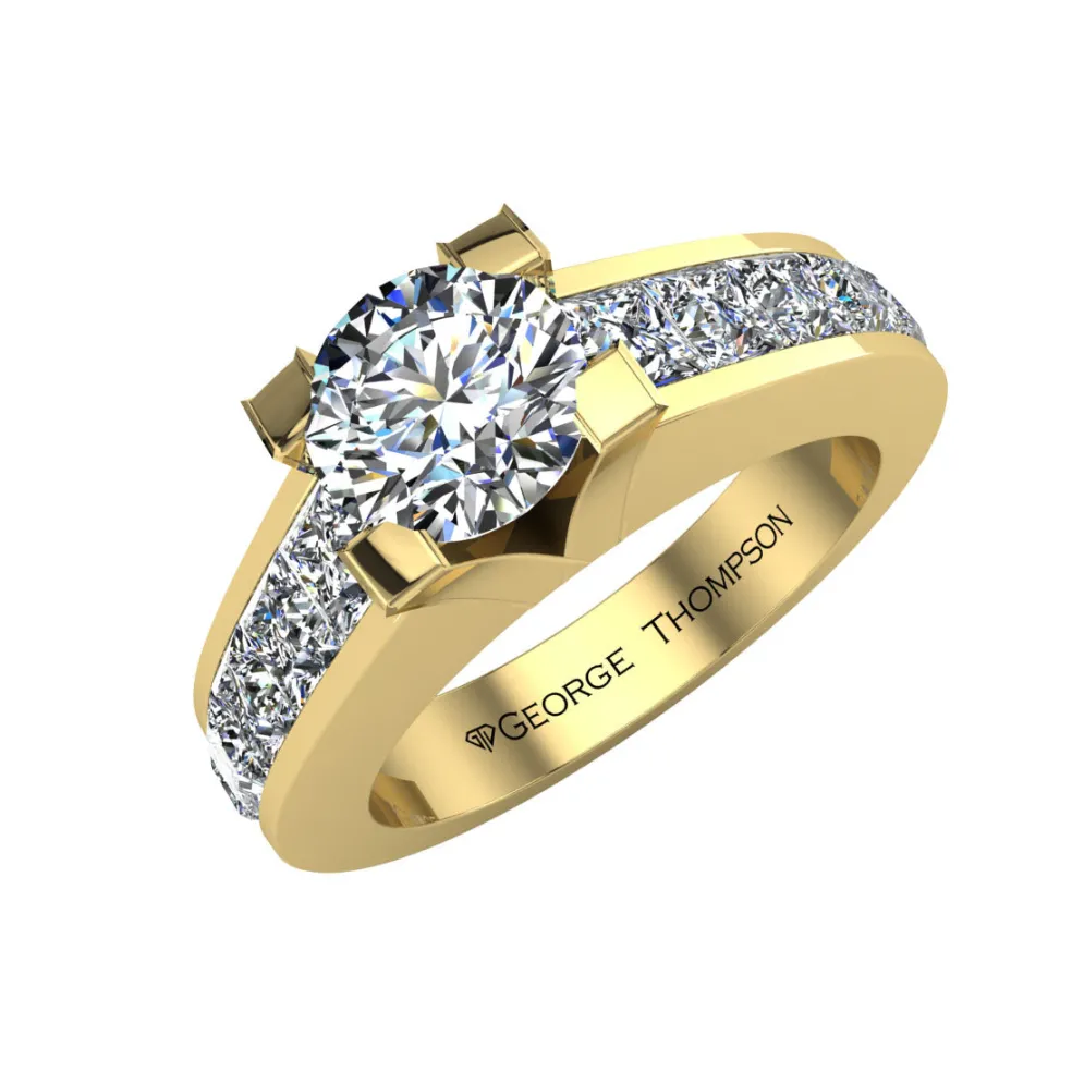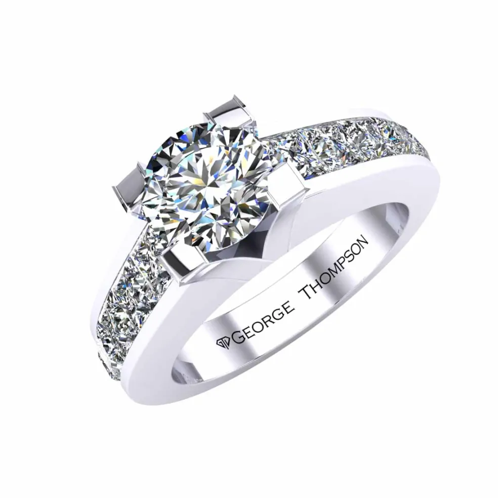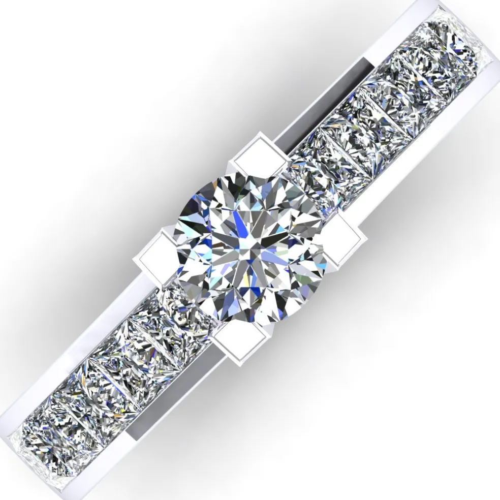 The Delana, a diamond engagement ring that’s sleek, clean, and undeniably sophisticated. The star of the show is a dazzling round brilliant diamond of approximately 0.30ct, surrounded by 10 princess cut accent diamonds with an approximate total weight of 0.95cts. add a touch of geometric edge to the design. With a total diamond weight of approximately 1.25cts, this engagement ring is sure to turn heads.
