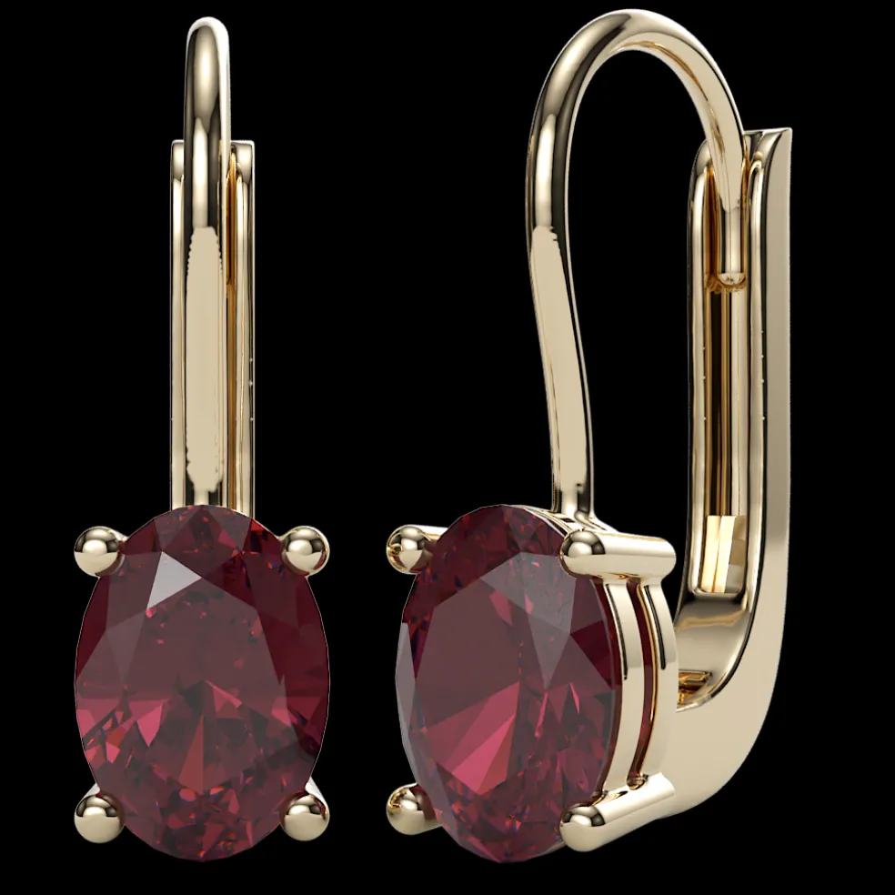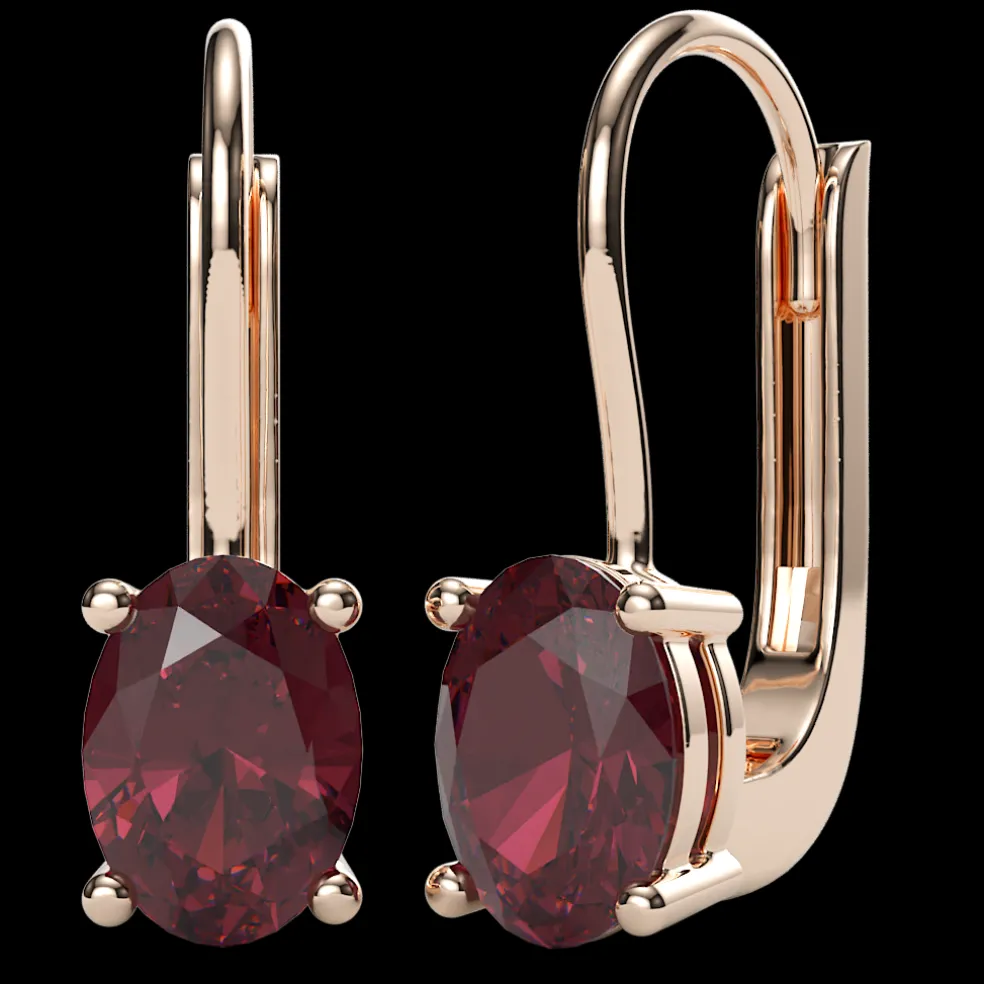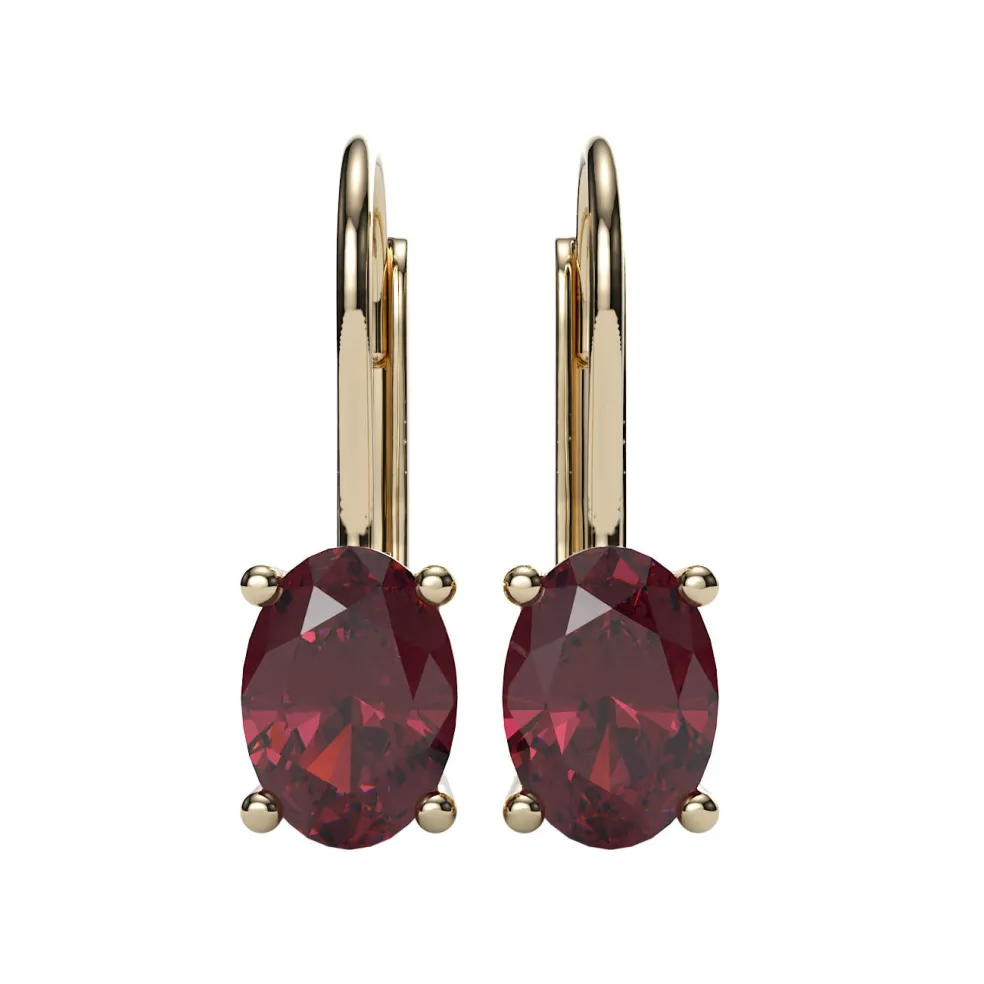 Step up your earring game with The Emilia, a stunning pair of White Gold and Garnet Earrings that will add a pop of color to any outfit. The center Oval-Cut Garnet of approximately 2.85cts. sparkles with every movement, and the leverback design ensures that these earrings will stay securely in place. These earrings have a total gems weight of 2.85cts. and are the perfect addition to your jewelry collection.
