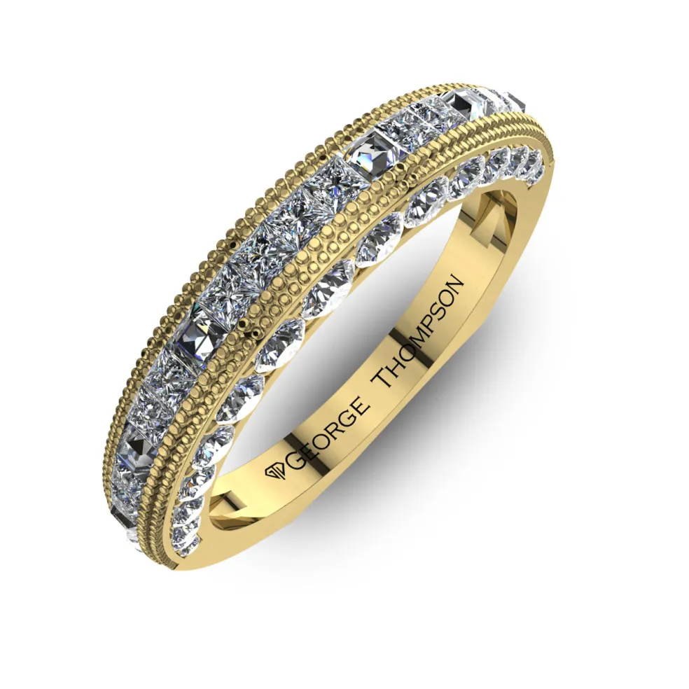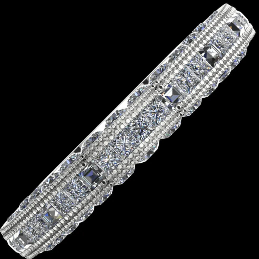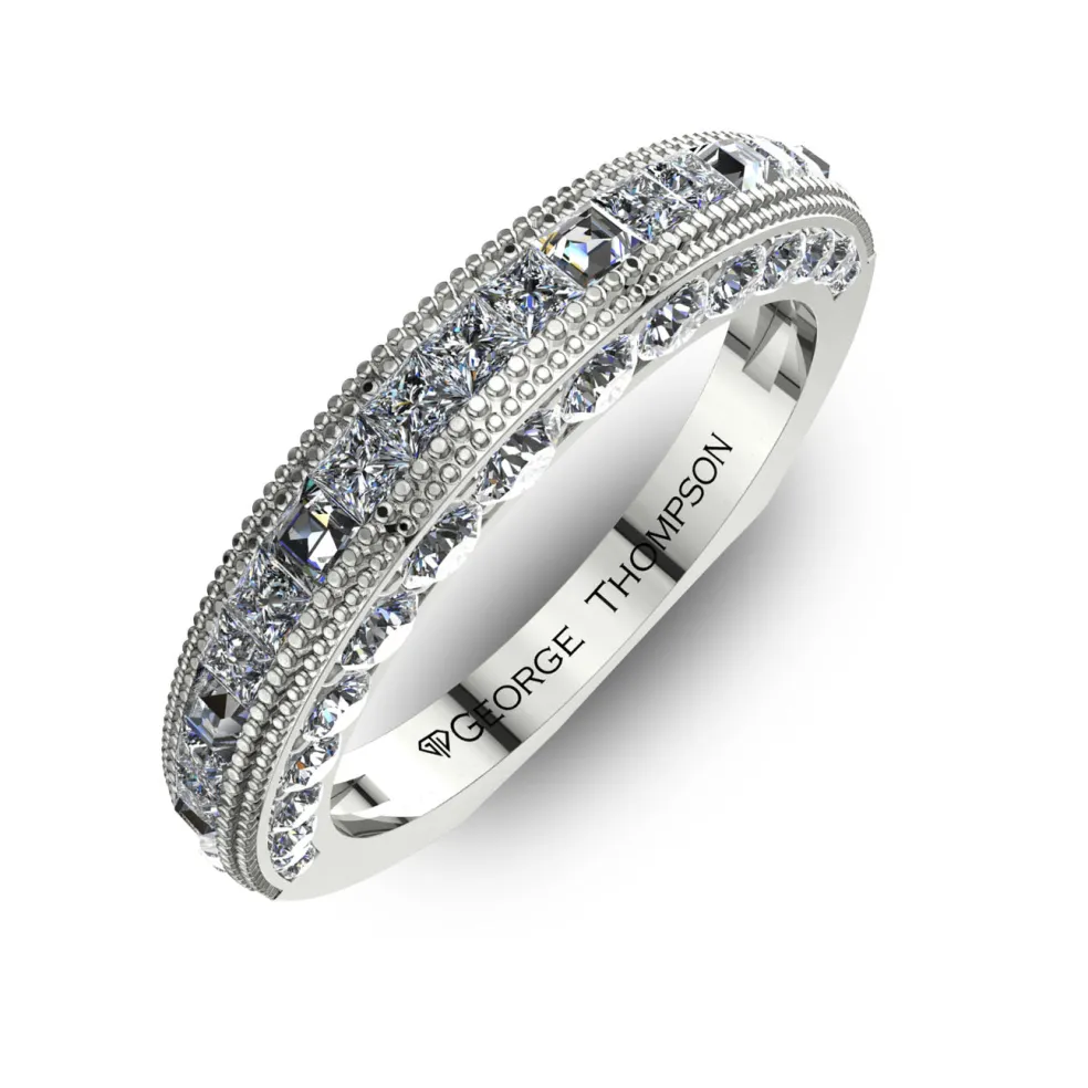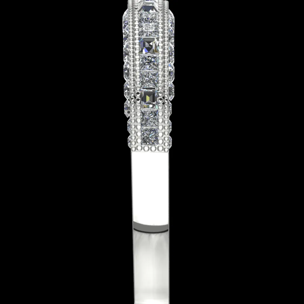 Fall in love with the Escala, a White Gold Diamond Band that exudes luxury and sophistication. This breathtaking piece features 34 Round Brilliant accent diamonds, and 25 Princess Cut access diamonds with an approximate total weight of 1.20cts.