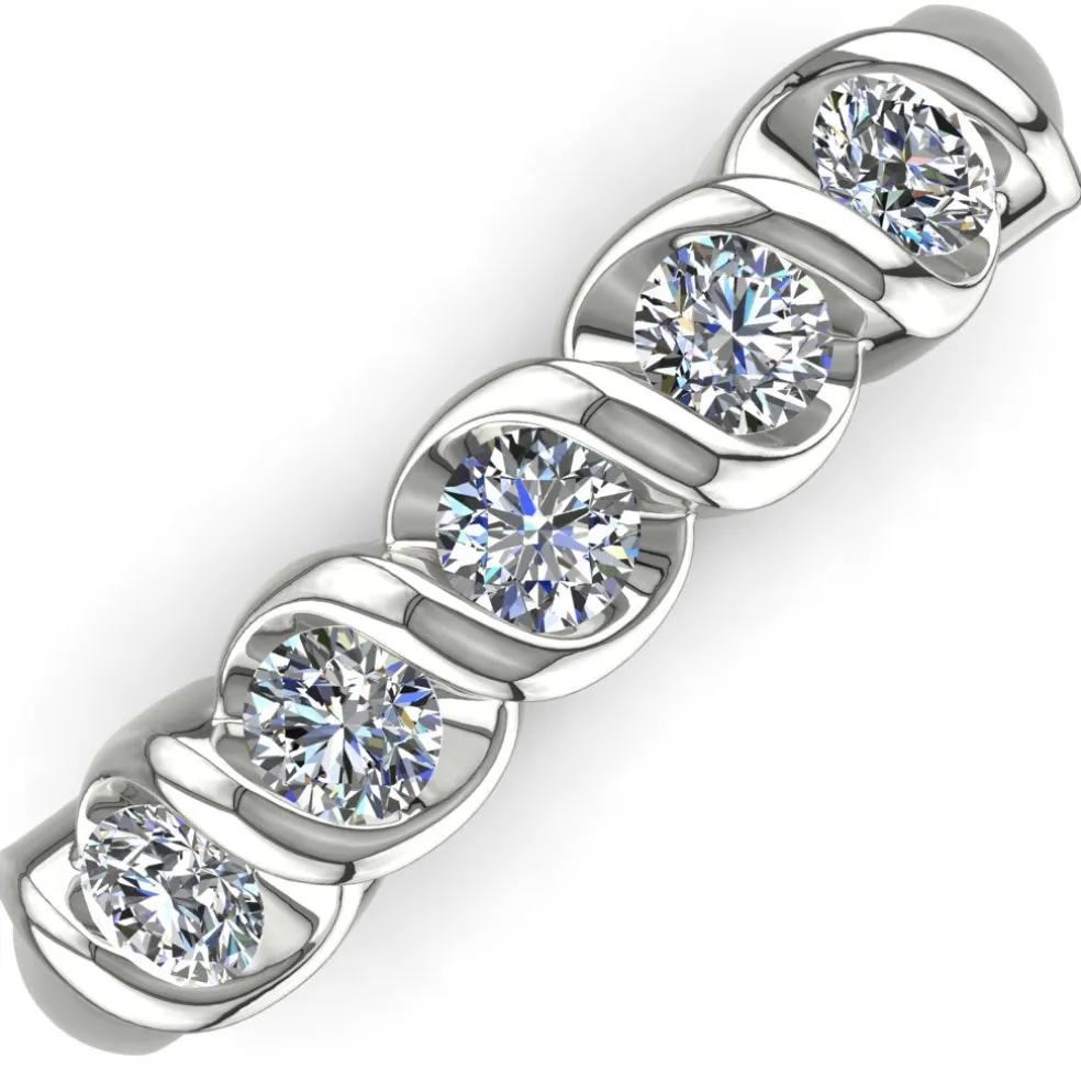 The Rahima, a White Gold and Diamond Band. 5 round brilliant accent diamonds with an approximate total weight of 0.50ct. This Band has a total diamond weight of approximately 0.50ct. and weighs approximately 4.0 grams in 14kt white gold, also available in Yellow Gold, Rose Gold, Palladium, and Platinum; and can be made to fit any size.