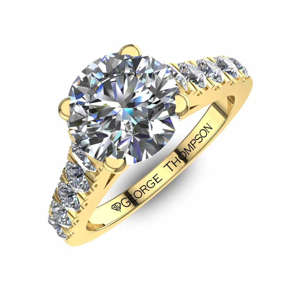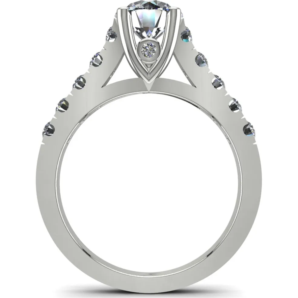 Whether it’s for your special day or to mark a milestone anniversary, this engagement ring is the ultimate way to show your commitment and affection. The Folla is adorned with a center Round Brilliant Diamond of approximately 1.00ct.,12 Round Brilliant accent diamonds with an approximate total weight of 0.45cts. and a total diamond weight of approximately 1.45cts., this ring is sure to catch everyone’s eye.