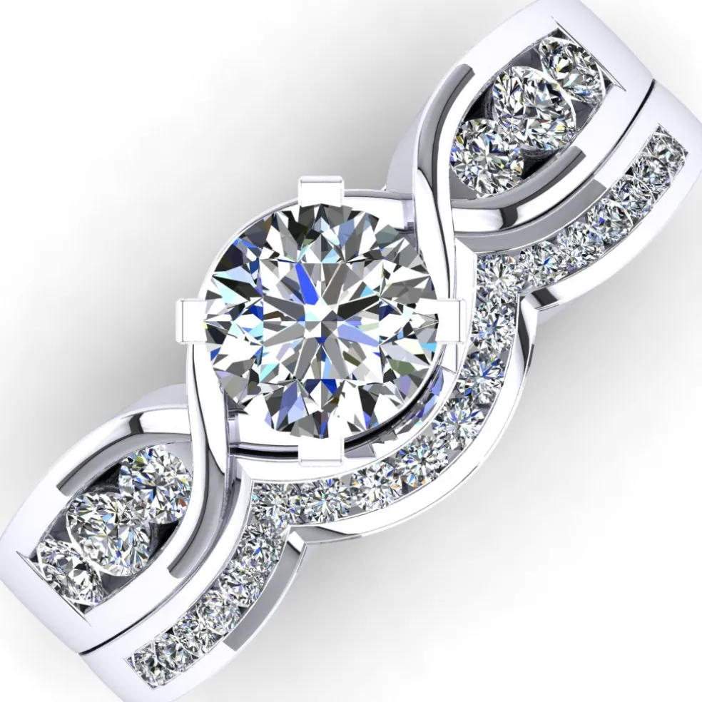 Meet the Girora, a chic and modern diamond wedding set that is sure to take your breath away. Crafted from high-quality 14kt white gold, this ring is a true masterpiece of design and craftsmanship. At the center of the Girora sits a stunning round brilliant diamond, boasting an impressive weight of approximately 1.00ct. The beauty of this center stone is perfectly complemented by 26 expertly cut round brilliant accent diamonds, with an approximate total weight of 0.50ct. Together, these diamonds create a radiant and glittering display that is both understated and sophisticated.