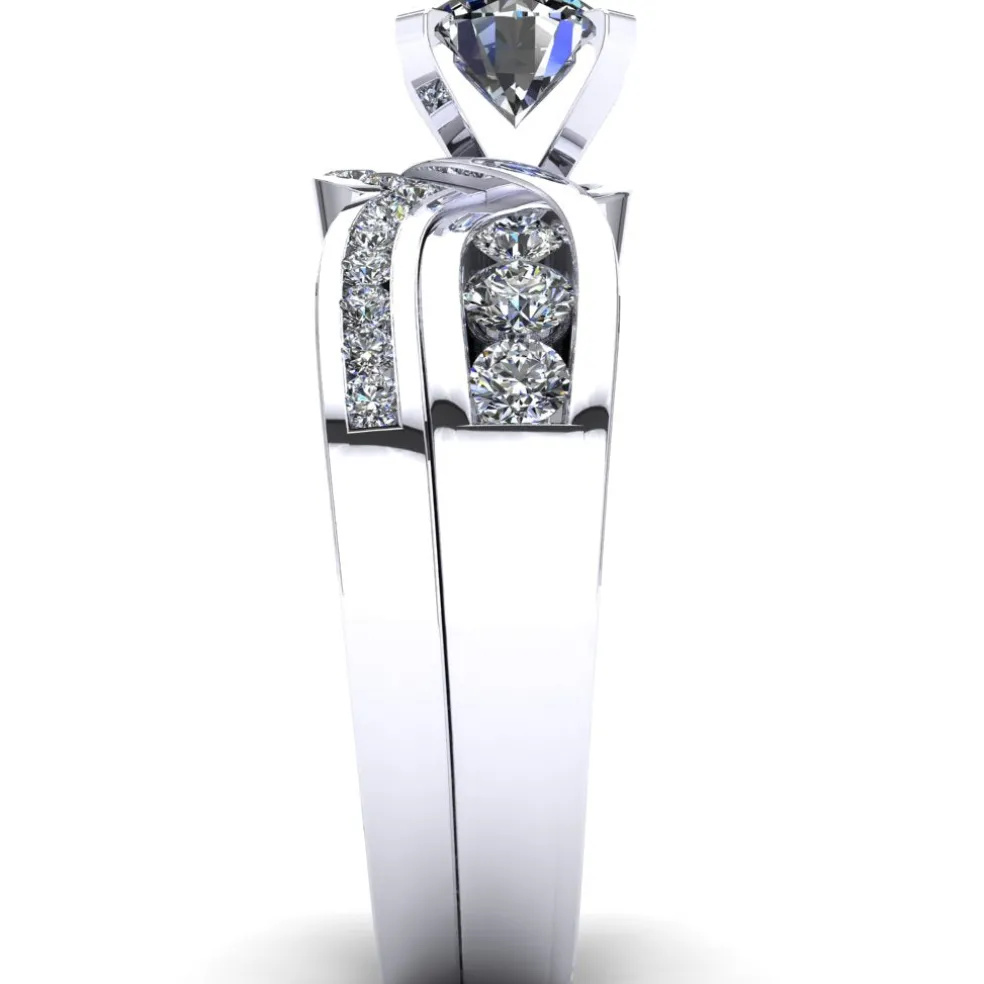 But what truly sets the Girora apart is its curve shank design. This unique and modern twist on a classic style creates a bold and eye-catching look that is sure to make a statement. With a total diamond weight of 1.50ct, this wedding set is substantial and impressive, yet still delicate and feminine. Weighing in at approximately 7.00 grams, this ring is comfortable to wear and will make you feel confident and beautiful on your big day.