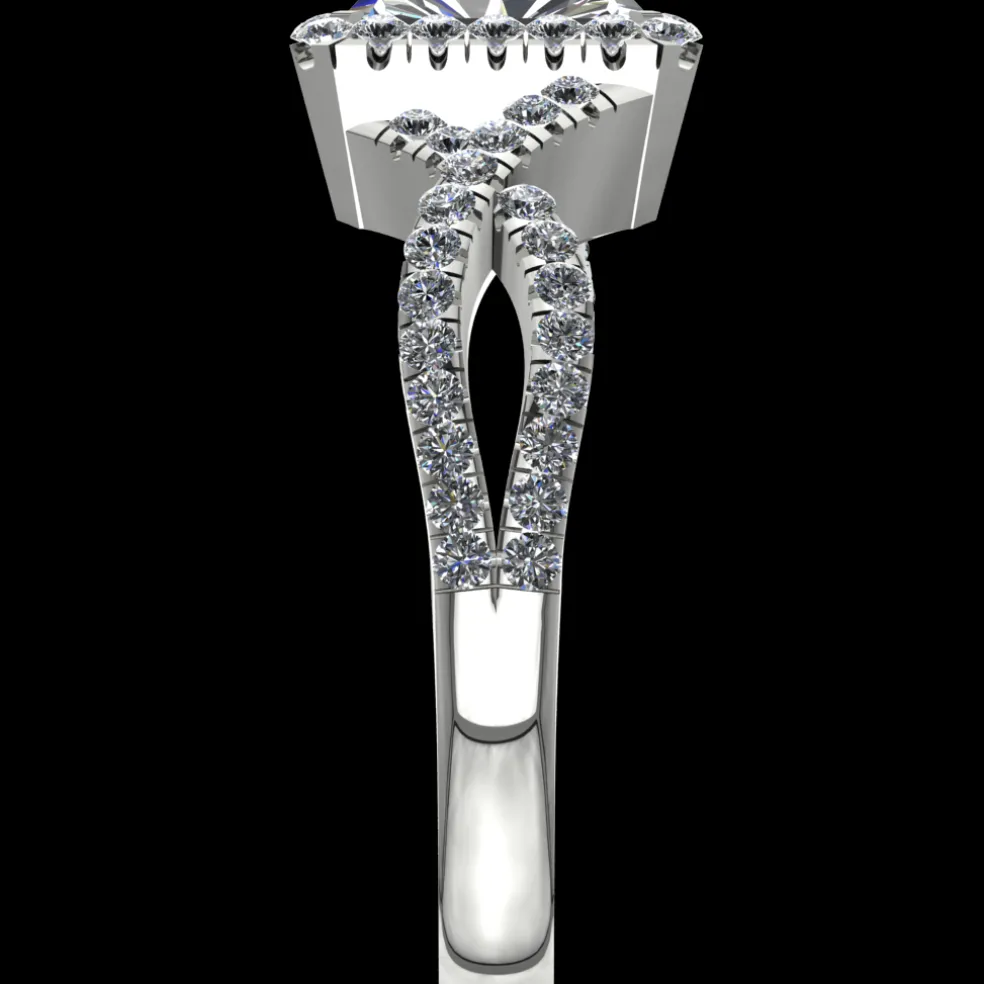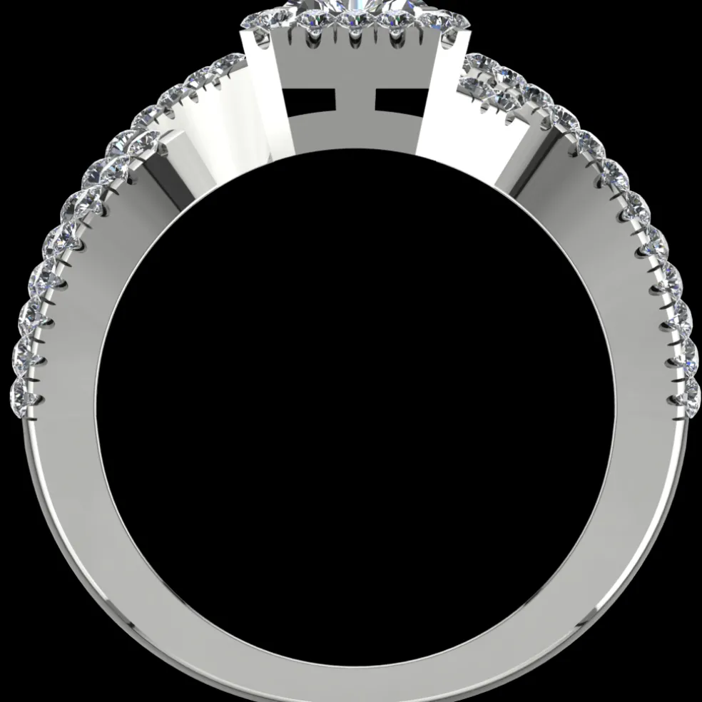 Introducing the sleek and elegant Gwena, a stunning engagement ring that embodies the perfect balance of sophistication and beauty. This exquisite ring features a center Brilliant Cut Diamond of approximately 0.75ct, accented by 71 Round Brilliant diamonds with an approximate total weight of 0.40cts. The total diamond weight of this piece is approximately 1.15cts, ensuring it sparkles from every angle. Crafted from the finest 14kt white gold, it weighs approximately 4.75 grams, offering both durability and comfort.