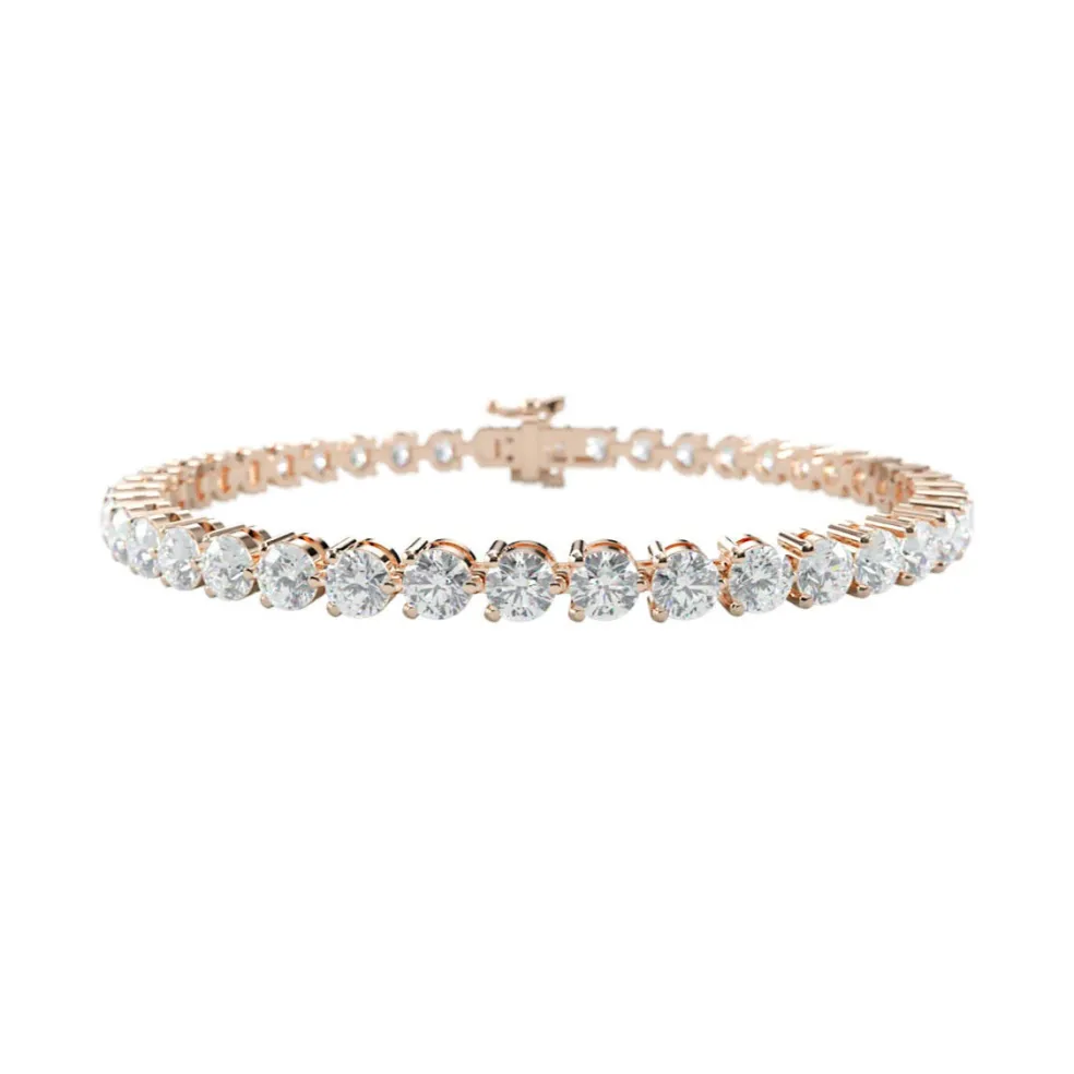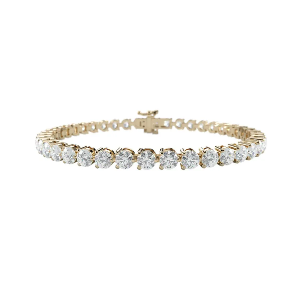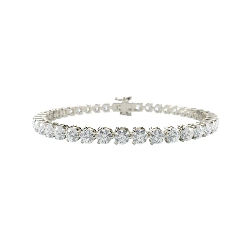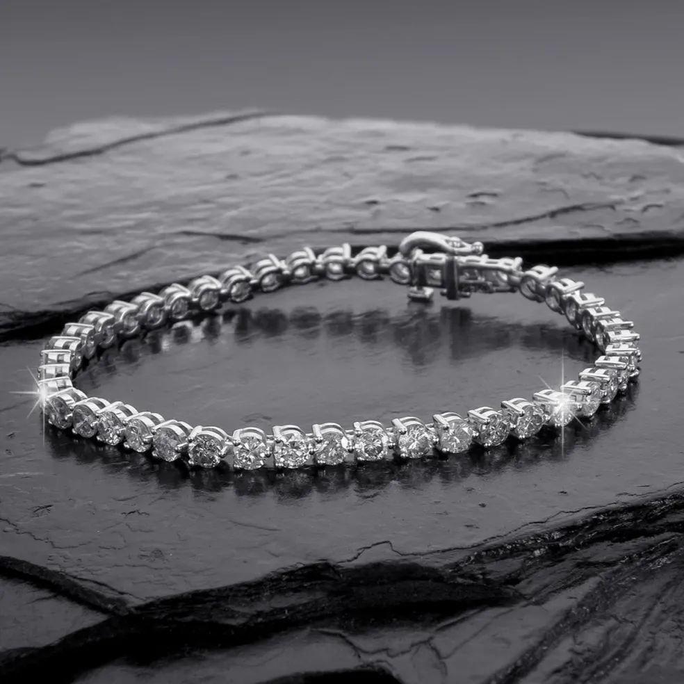 A gleaming diamond bracelet that will make you feel like a true fashion icon. Crafted from 14kt White Gold and featuring 44 dazzling Round Brilliant Diamonds with an approximate total weight of 6.22 cts., this bracelet is the perfect accessory for any occasion. The diamonds are expertly set in a sleek and modern design, adding just the right amount of sparkle to catch the eye. Weighing approximately 10.25 grams, this bracelet has a delicate yet substantial feel, making it the perfect addition to any jewelry collection.