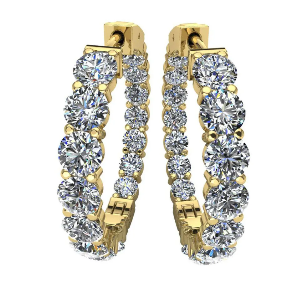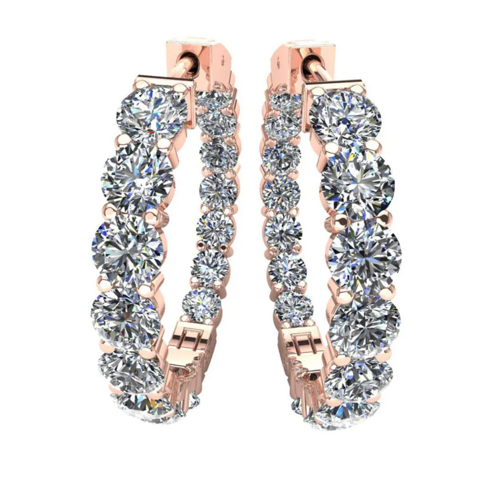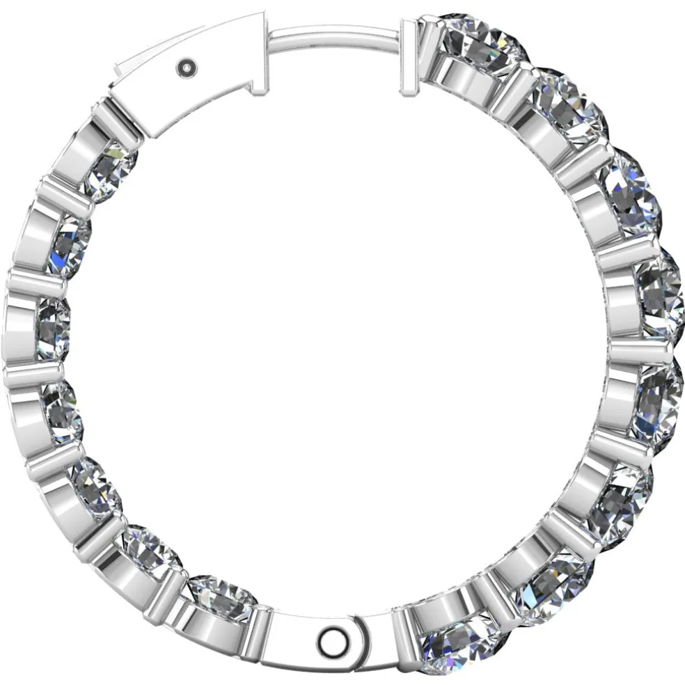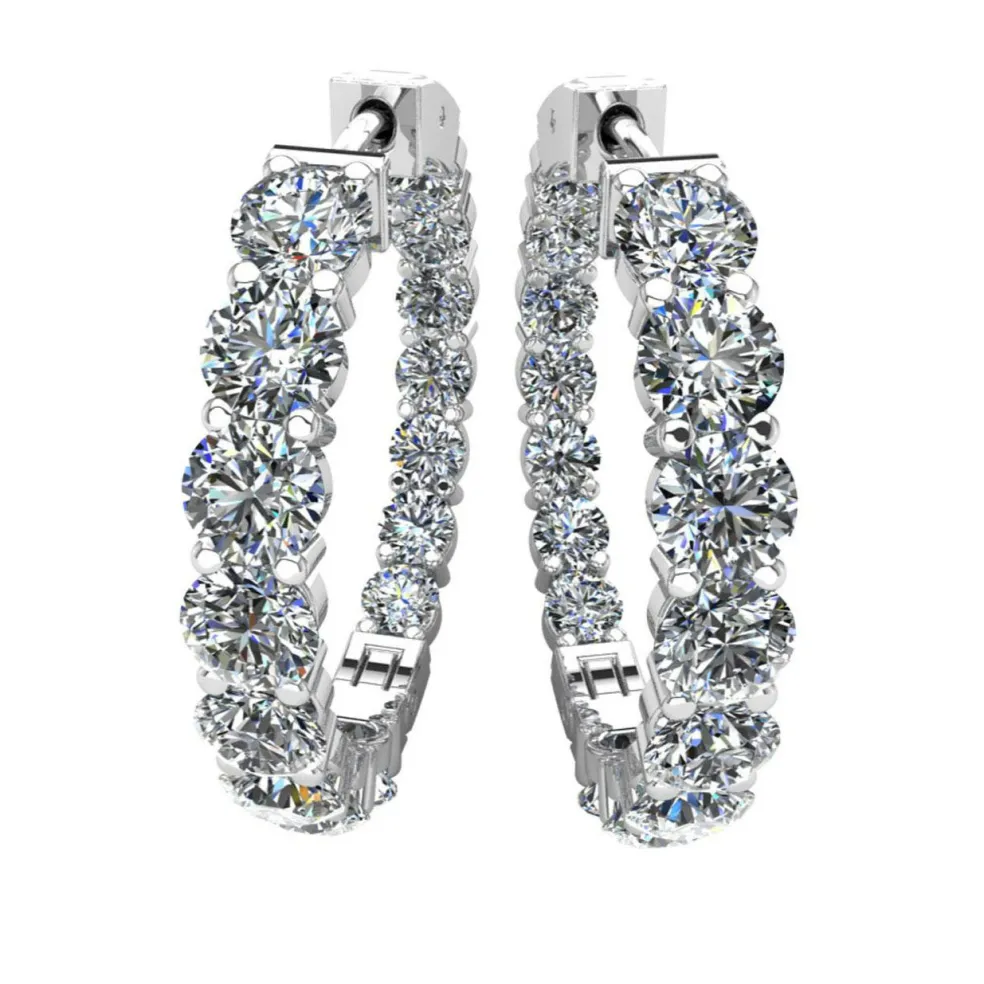Weighing approximately 7.50 grams in 14kt white gold, they are also available in Yellow Gold, Rose Gold, Palladium, and Platinum. Experience the epitome of elegance with the Juliana diamond hoop earrings.