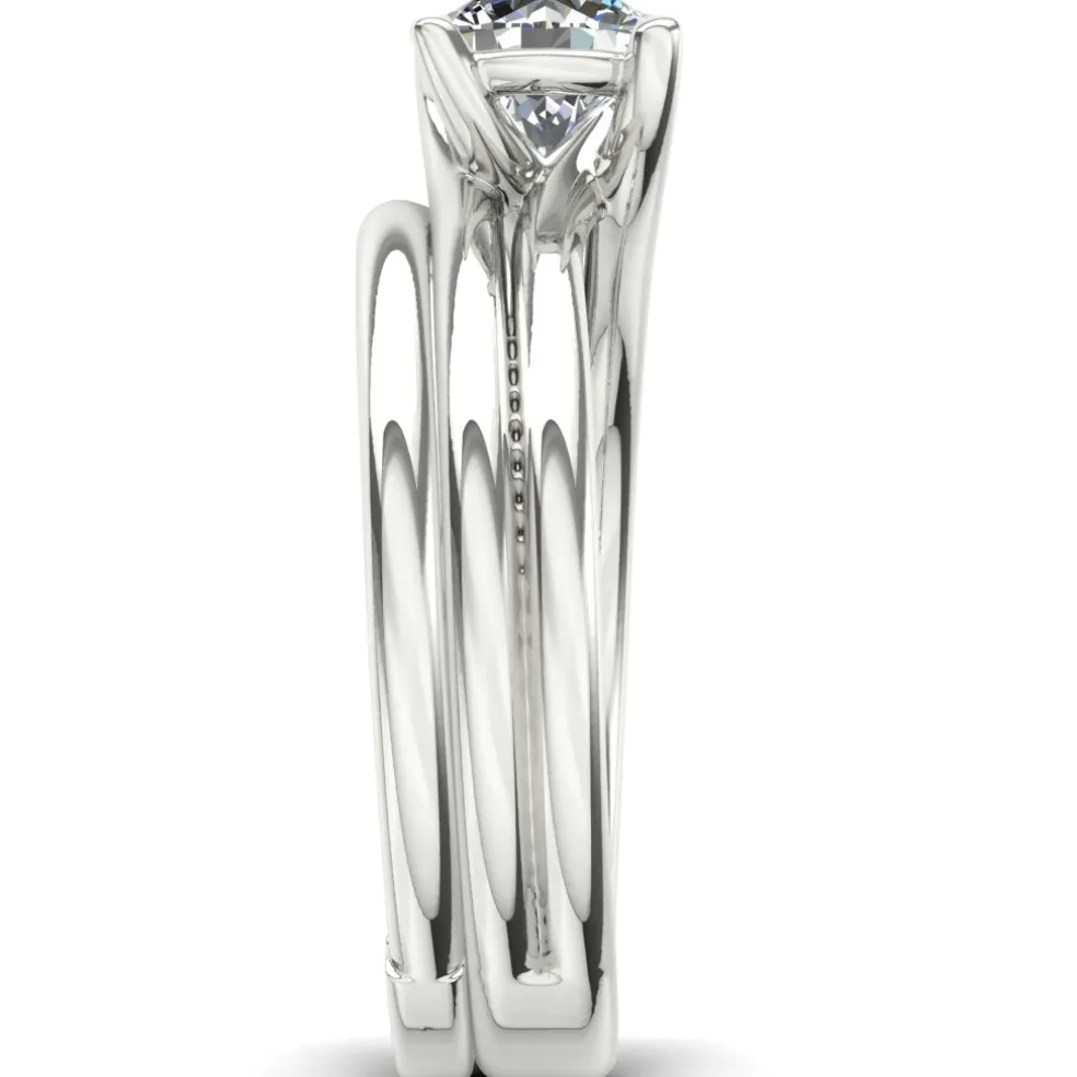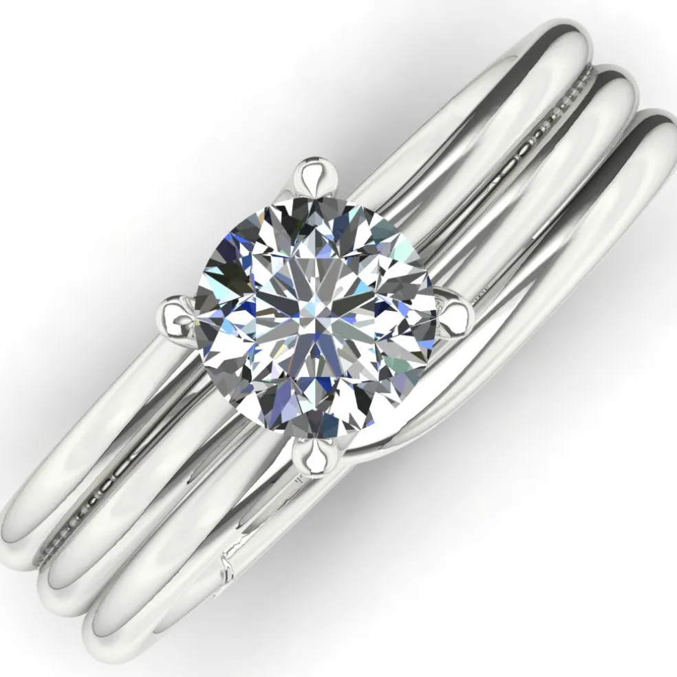 The Kaiya, a sleek and modern diamond wedding set that exudes simplicity and sophistication. The centerpiece of this stunning set is a gorgeous 0.80ct Round Brilliant Diamond.