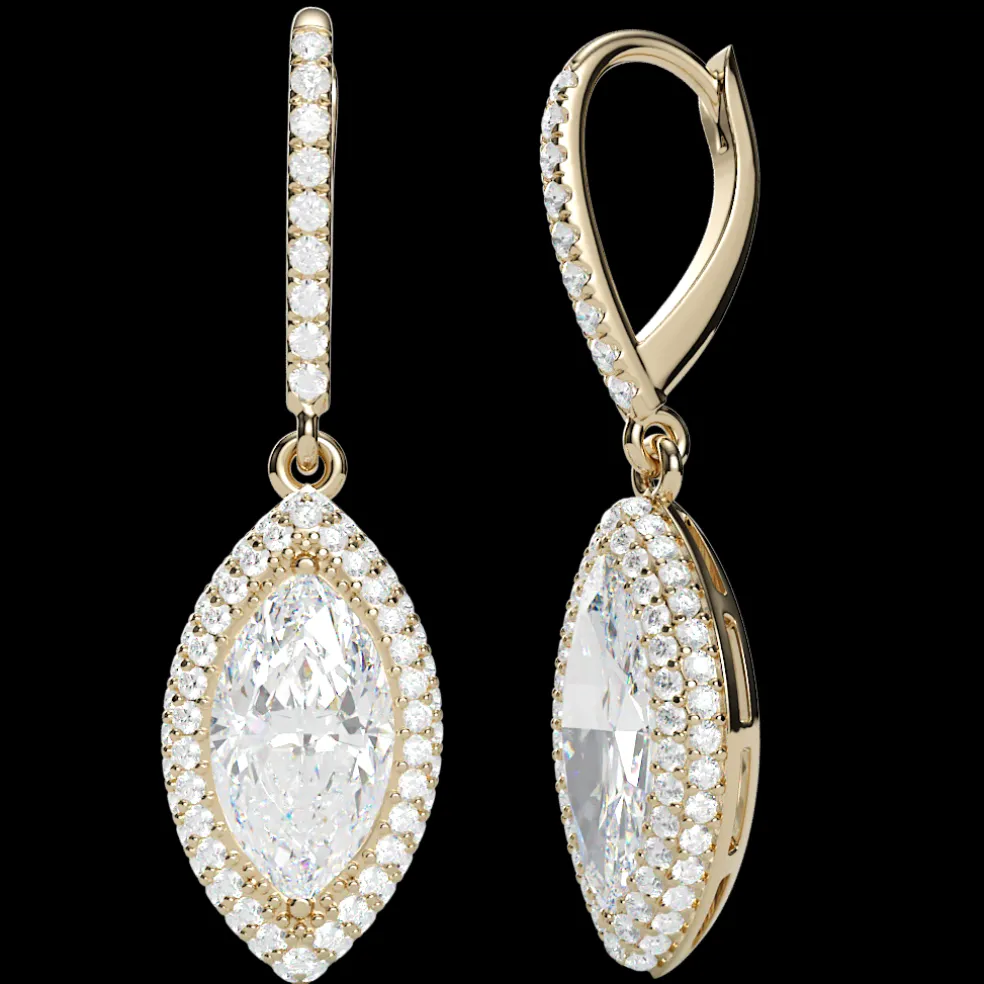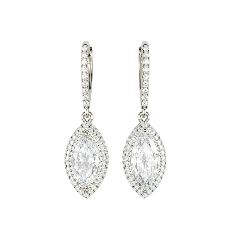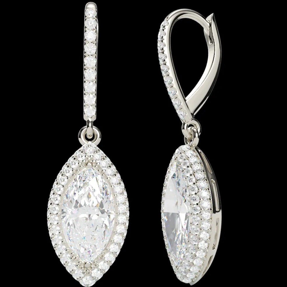 The Milliga, a stunning Marquise Diamond Halo Lever Back Earrings that is custom-designed for our client with exceptional taste. With marquise cut diamonds of approximately 1.16cts and 1.04cts, these earrings are the epitome of elegance and grace.