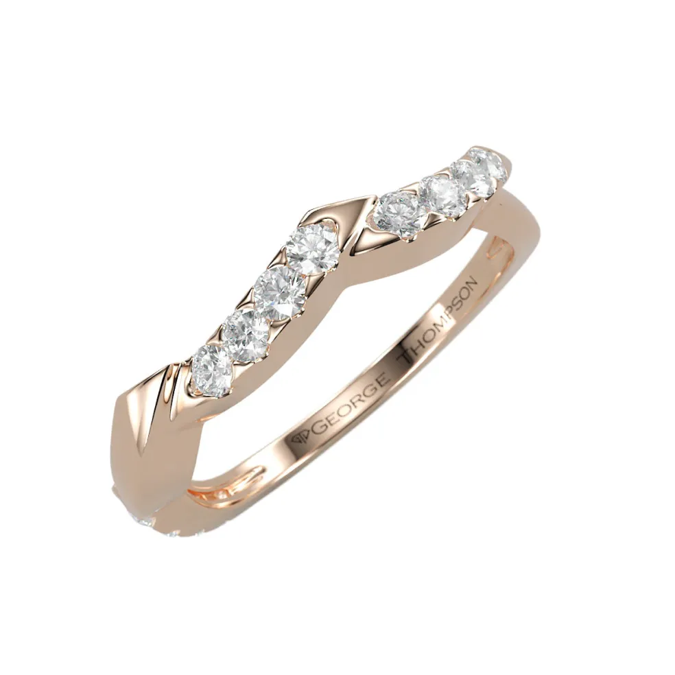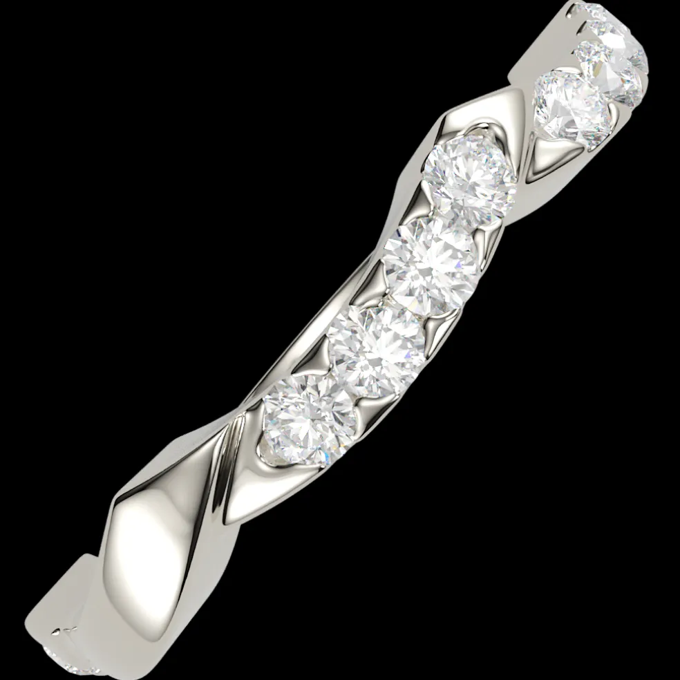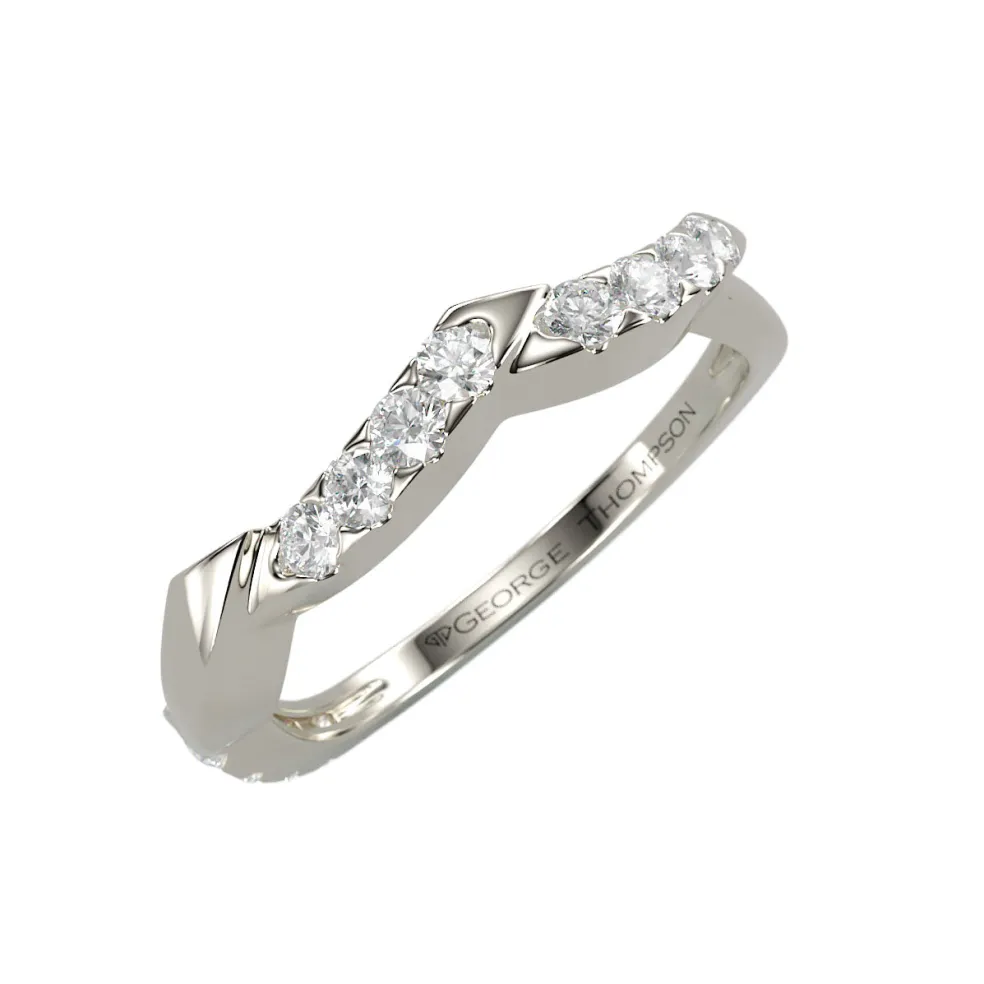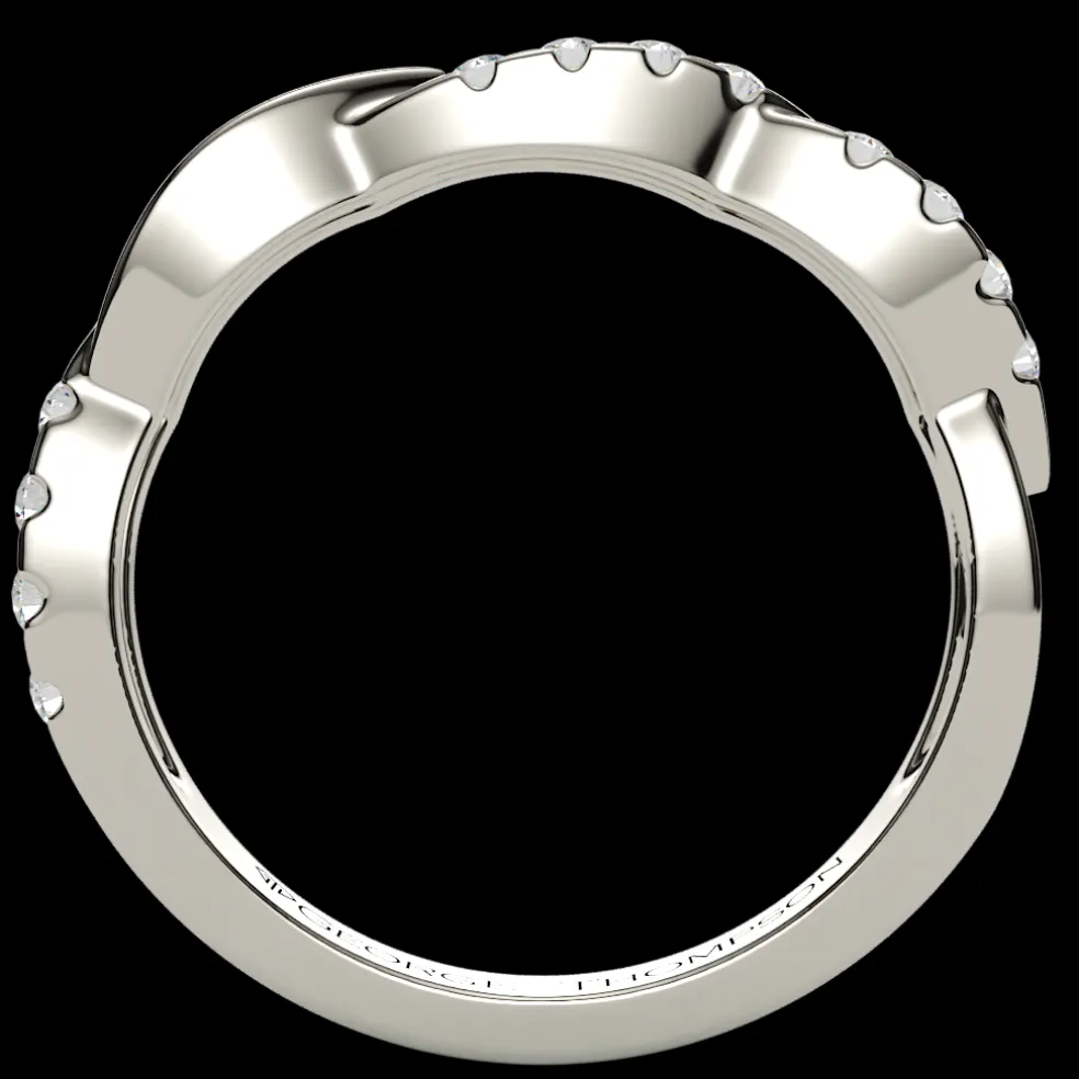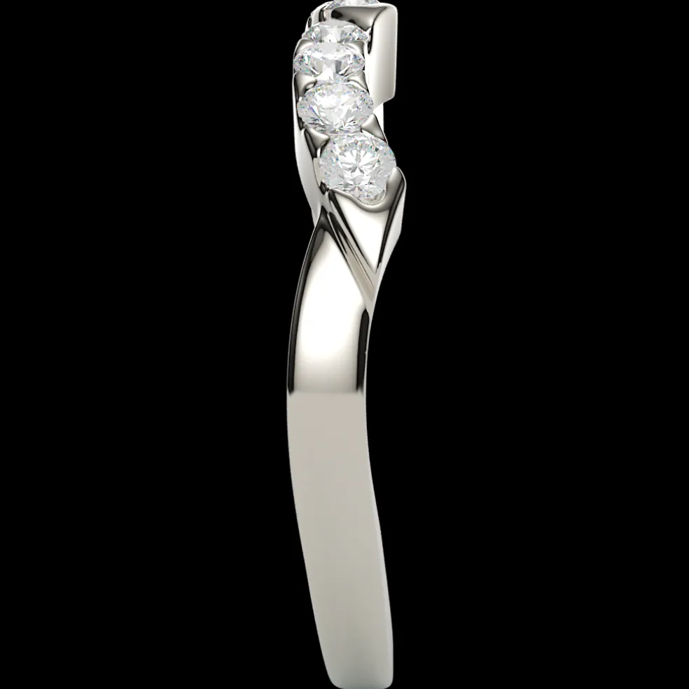 The breathtakingly beautiful curved wedding band, adorned with 12 sparkling round brilliant accent diamonds, The Natina. With an approximate total weight of 0.15cts, this band boasts a total diamond weight of approximately 0.15cts, radiating pure elegance and glamour. Crafted from high-quality 14kt white gold, this stunning band weighs approximately 2.90 grams, and is available in yellow gold, rose gold, palladium and platinum, ensuring a perfect match for any style and taste. Customizable to fit any size, this stunning piece of jewelry is the perfect choice for anyone looking for the ultimate symbol of love and commitment.