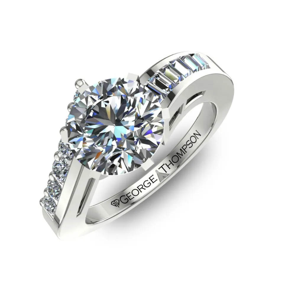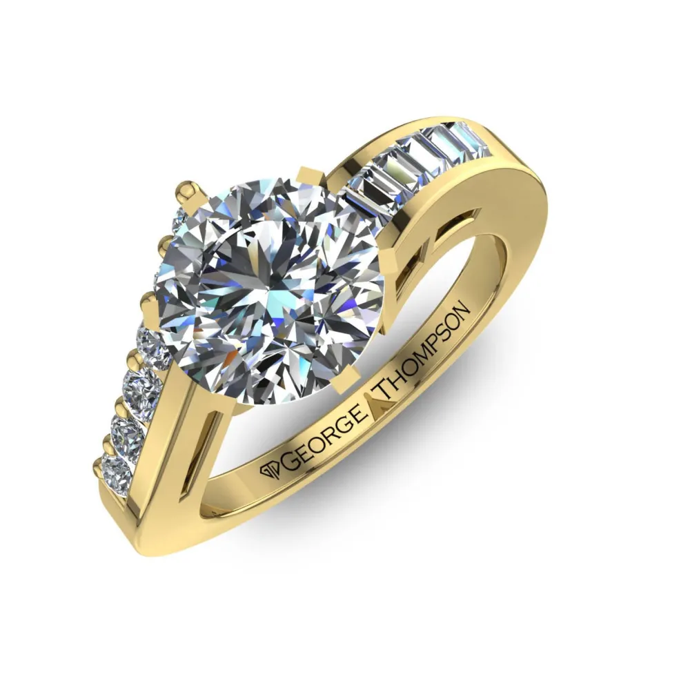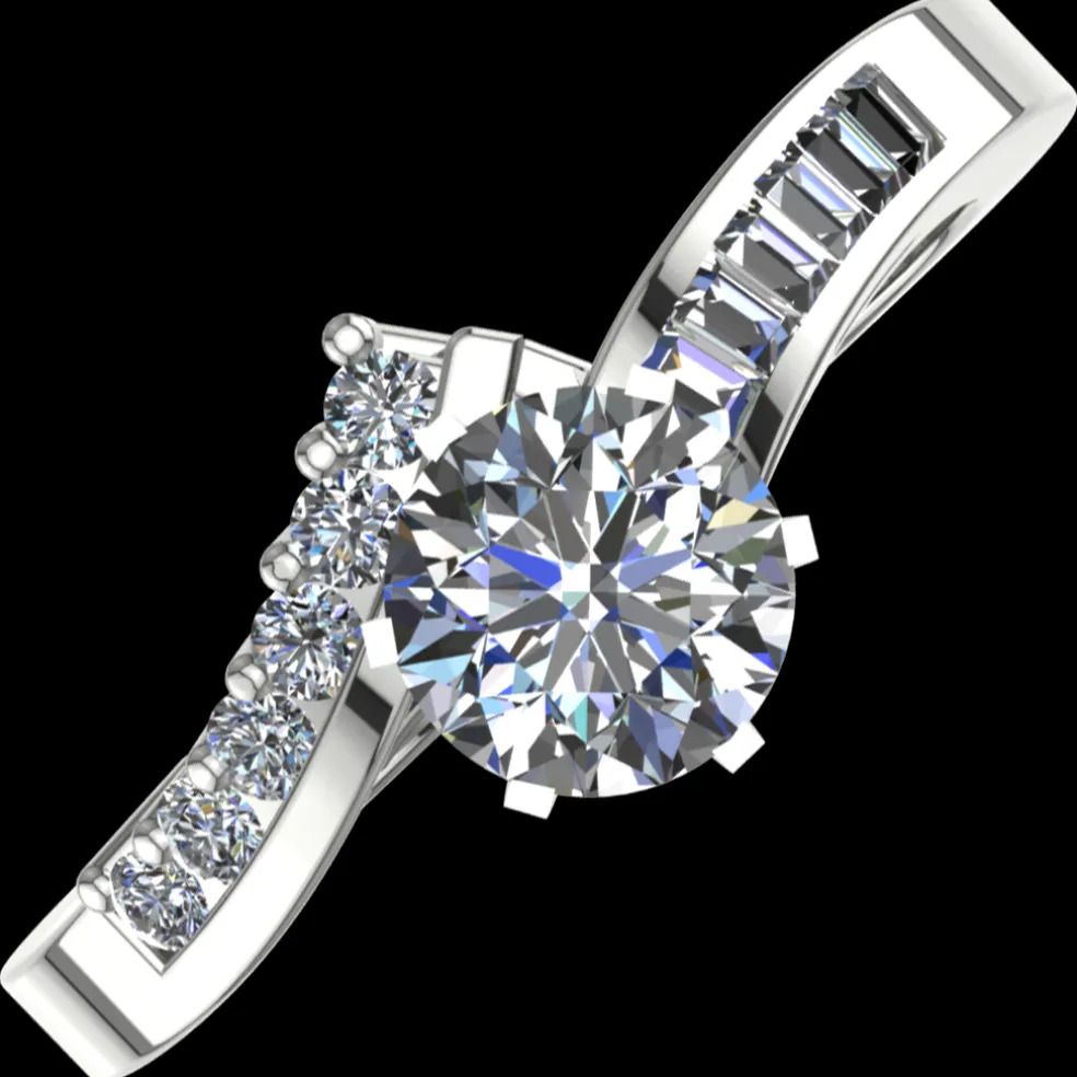 Meet the Nica, the epitome of elegance and sophistication in the world of engagement rings. Crafted with the finest materials, this stunning ring is designed to take your breath away. With a center Round Brilliant Diamond weighing approximately 1.00ct, this ring exudes timeless beauty and brilliance. But that’s not all, it also boasts 6 Round Brilliant accent diamonds of approximately 0.15ct and 6 Baguette Cut Diamonds of approximately 0.25ct, adding even more sparkle and glamour to this already magnificent piece.