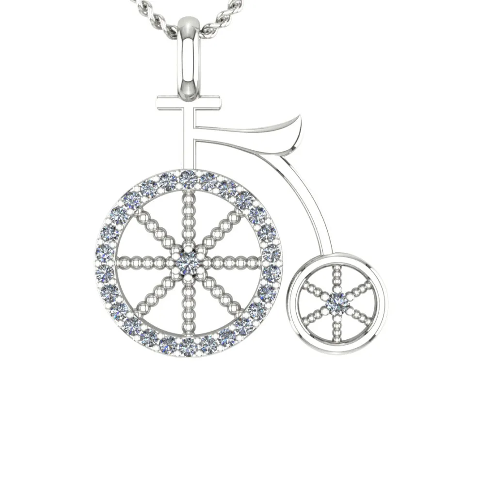 Ride in style with The Penca! Featuring a playful bicycle design, this pendant is adorned with 28 Round Brilliant Diamonds of approximately 0.35cts, adding just the right amount of sparkle to your look. Crafted with 14kt White Gold and weighing approximately 2.1 grams,