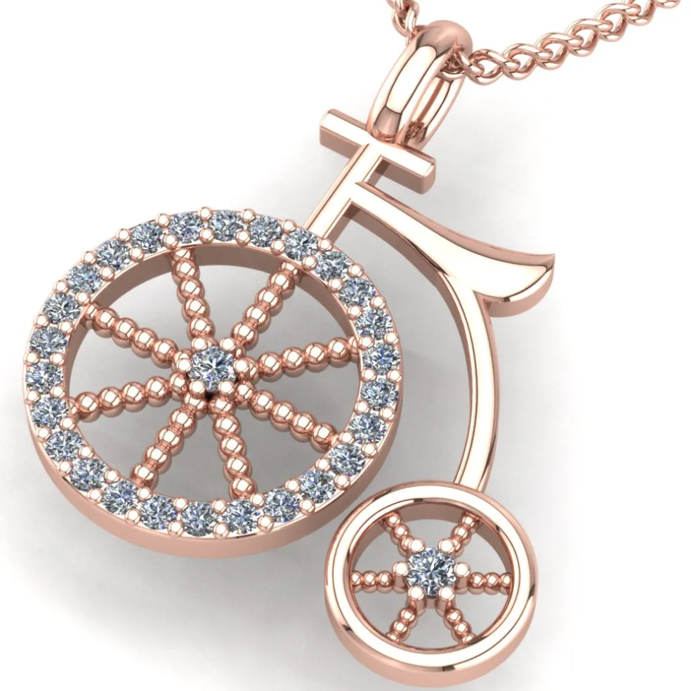 The Penca pendant is a perfect statement piece for any cycling enthusiast or anyone who loves unique and trendy jewelry. Available in Yellow Gold, Rose Gold, Palladium, and Platinum to match your personal style.