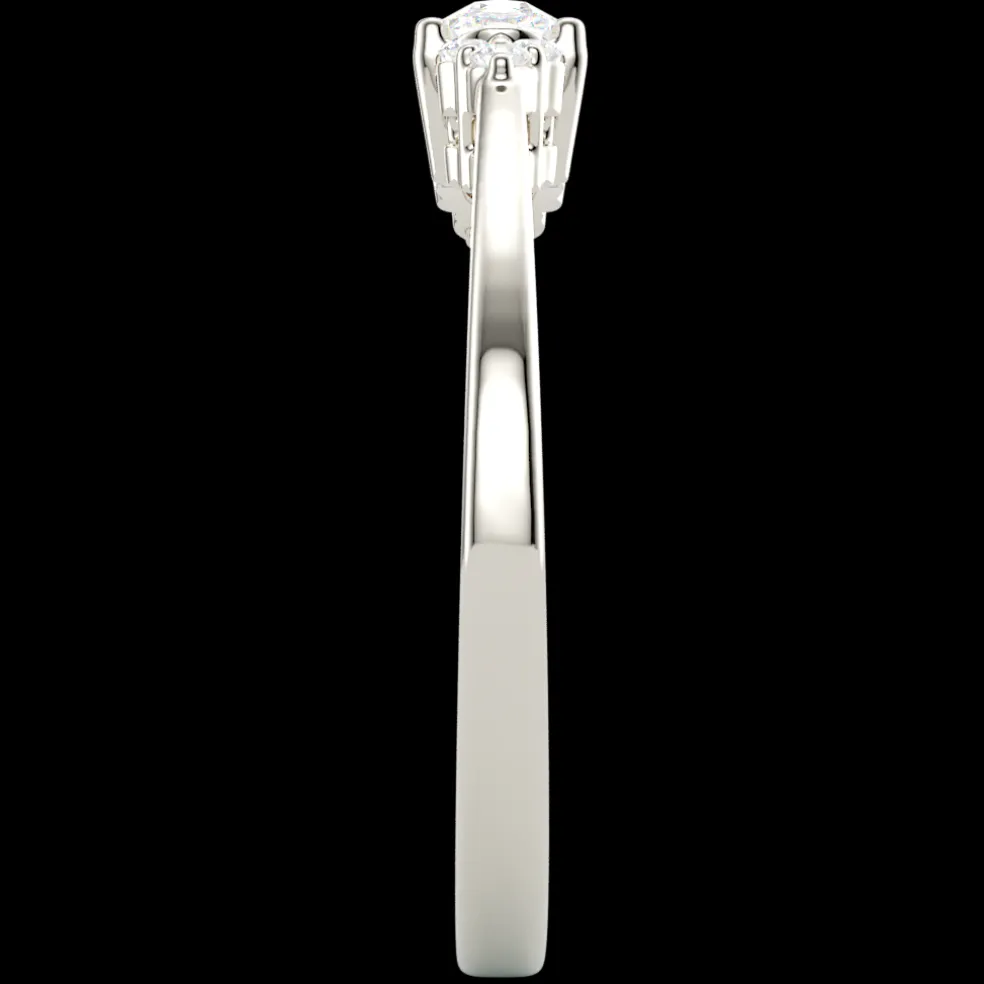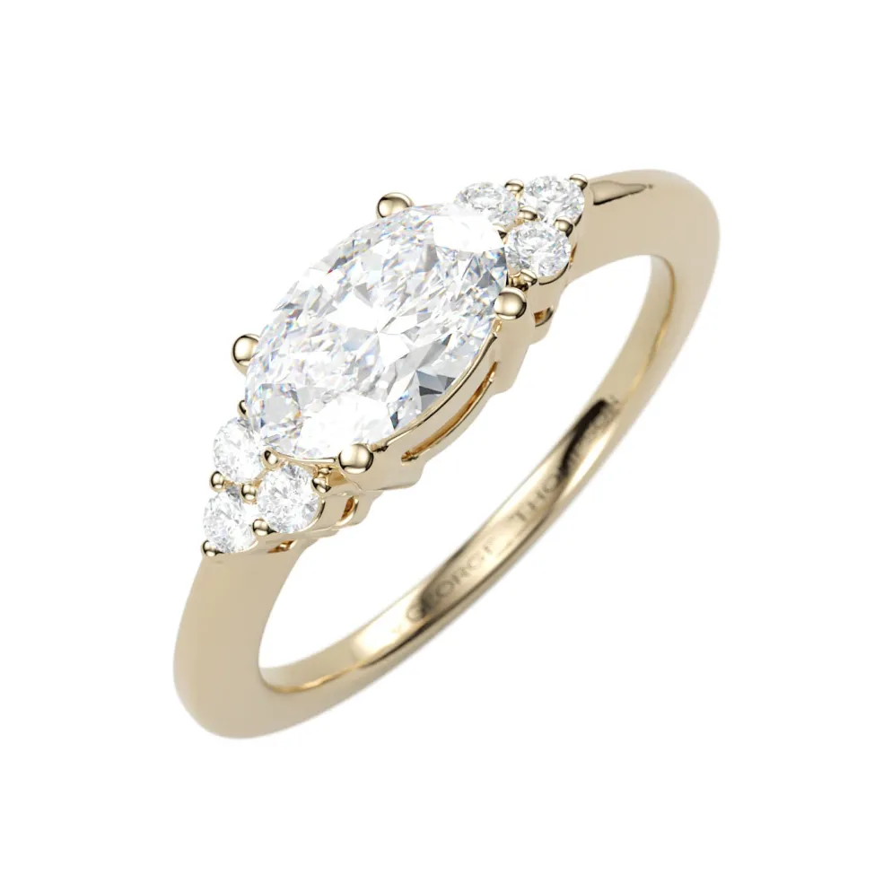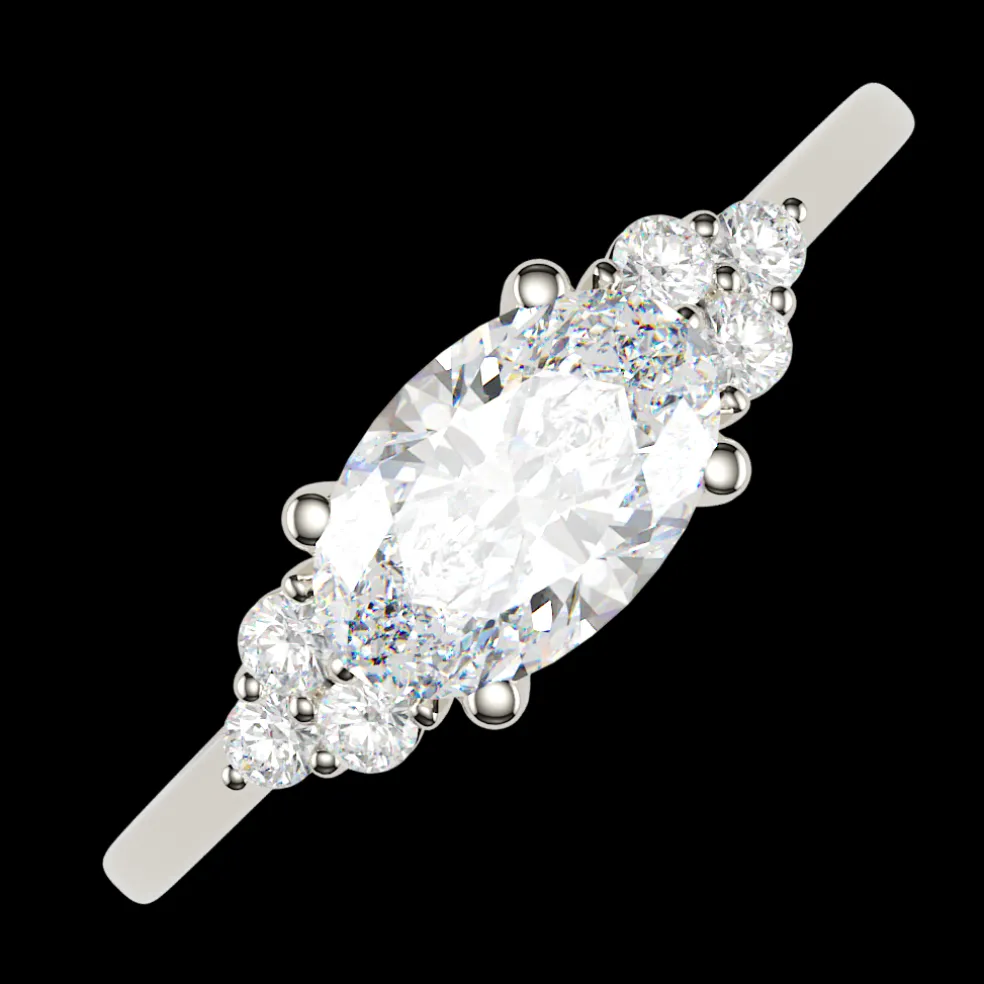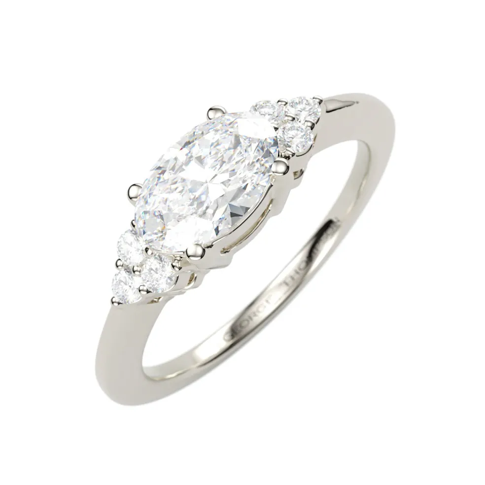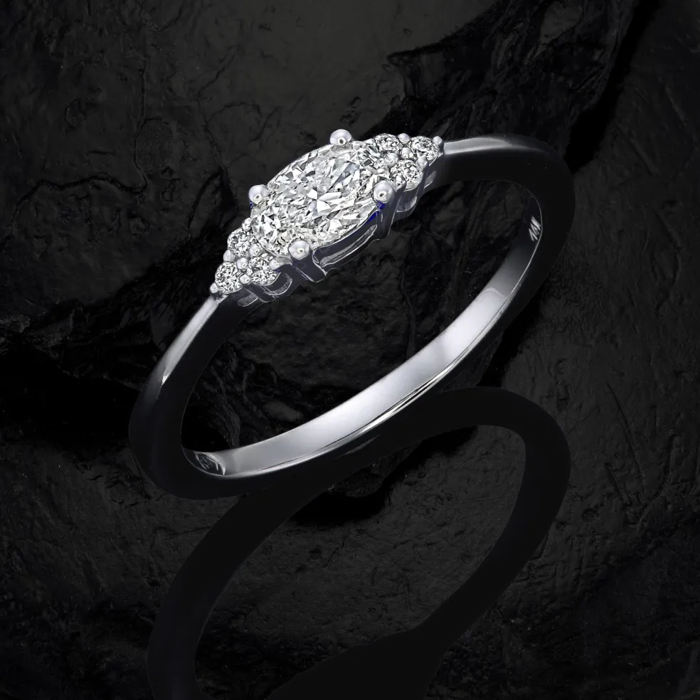 Say ‘I do’ to elegance and whimsy with this wedding band – a shimmering testament to your forever love story, the Plutina. Crafted from 14KT white gold, weighing a mere 2.0 grams, it’s a feather-light symbol of your profound connection. At its heart shines a petite oval diamond, 0.35 carats of pure enchantment, capturing the essence of your unique bond. Surrounding it are 6 round brilliant-cut diamonds, 0.06 carats of twinkling radiance, each one adding its own sparkle to your journey together. With this band, your love story takes center stage, ready to light up the world with its charm and elegance. It’s not just a wedding band; it’s a radiant reminder of the beautiful adventure that lies ahead.