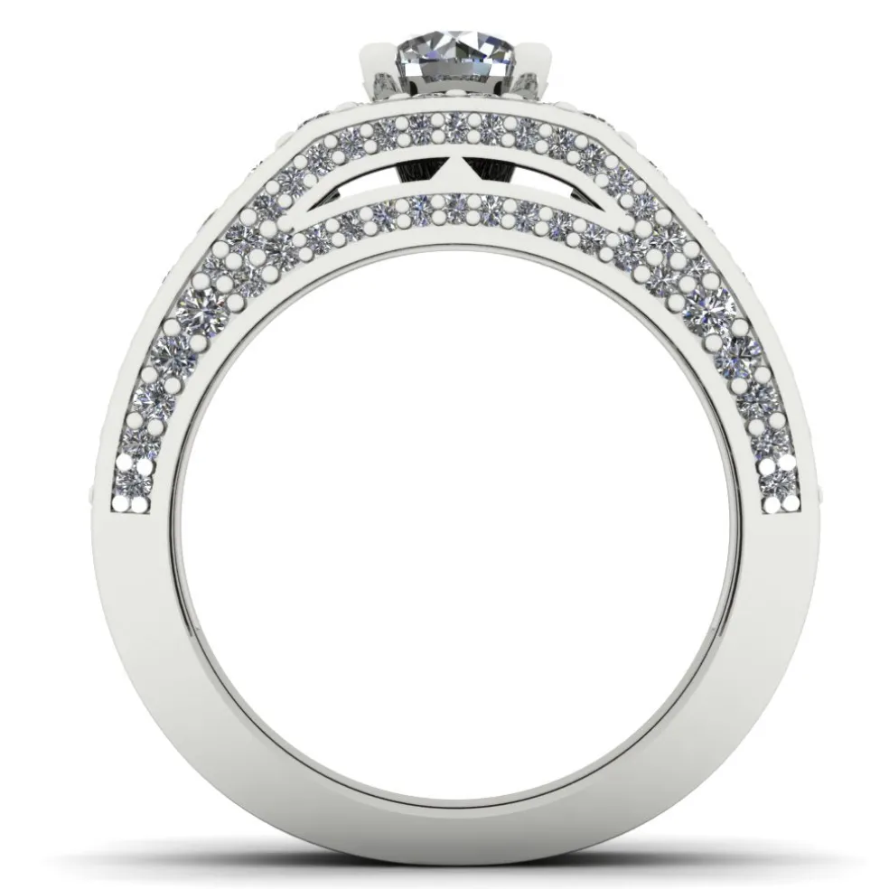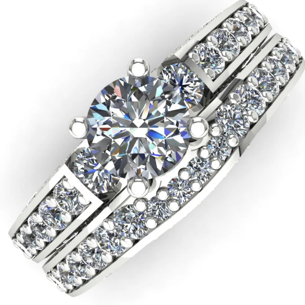 The Salita, a White Gold Diamond Wedding Set. A Center Round Brilliant Diamond of approximately 2/3ct. and 134 Round Brilliant accent diamonds with an approximate total weight of 1.00cts. This Wedding set has a total diamond weight of approximately 1.70cts and weighs 7.4g in 14kt White Gold.