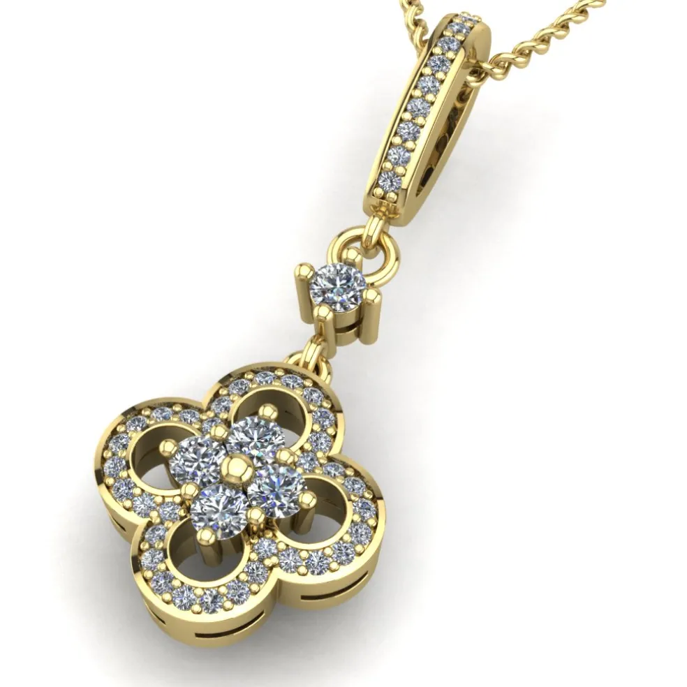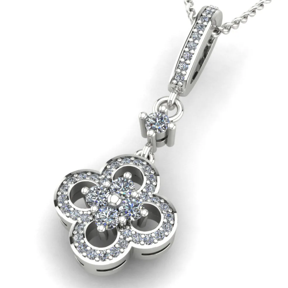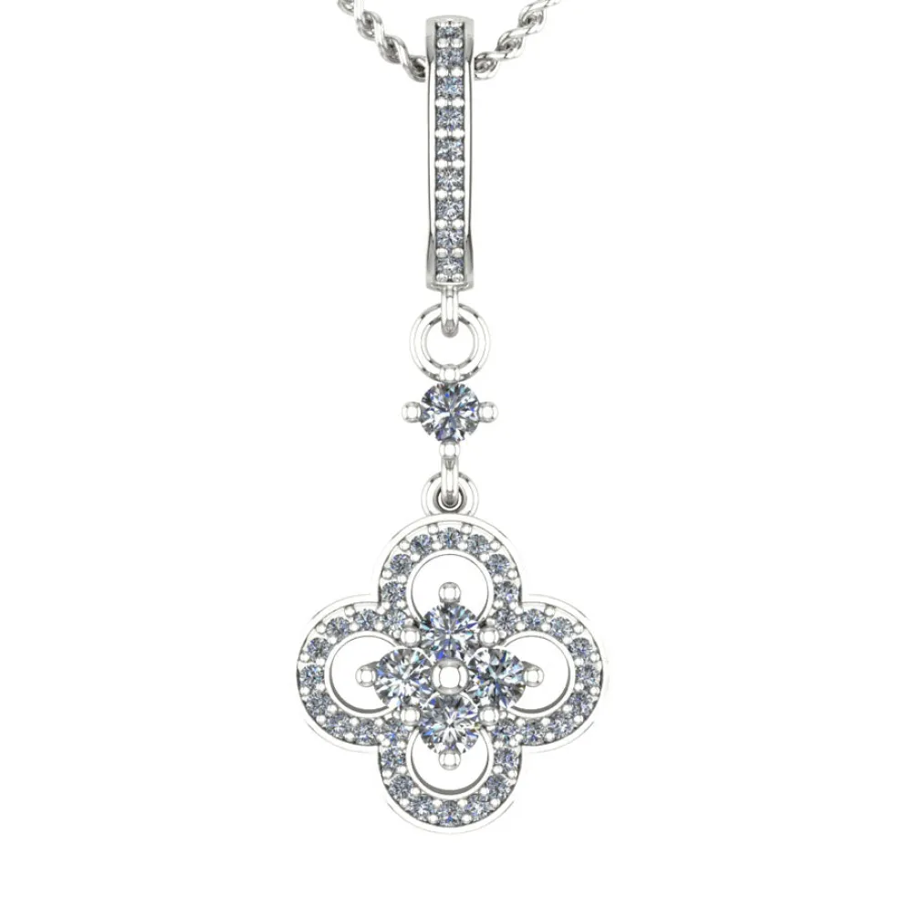 Elevate your look with the stunning Sorta, a unique and elegant clover-shaped diamond pendant that’s sure to turn heads. Featuring a dazzling array of 76 Round Brilliant Diamonds with an approximate total weight of 0.50cts, this pendant sparkles and shines from every angle. Weighing approximately 2.8g in 14kt White Gold, the Sorta is also available in Yellow Gold, Rose Gold, Palladium, and Platinum.