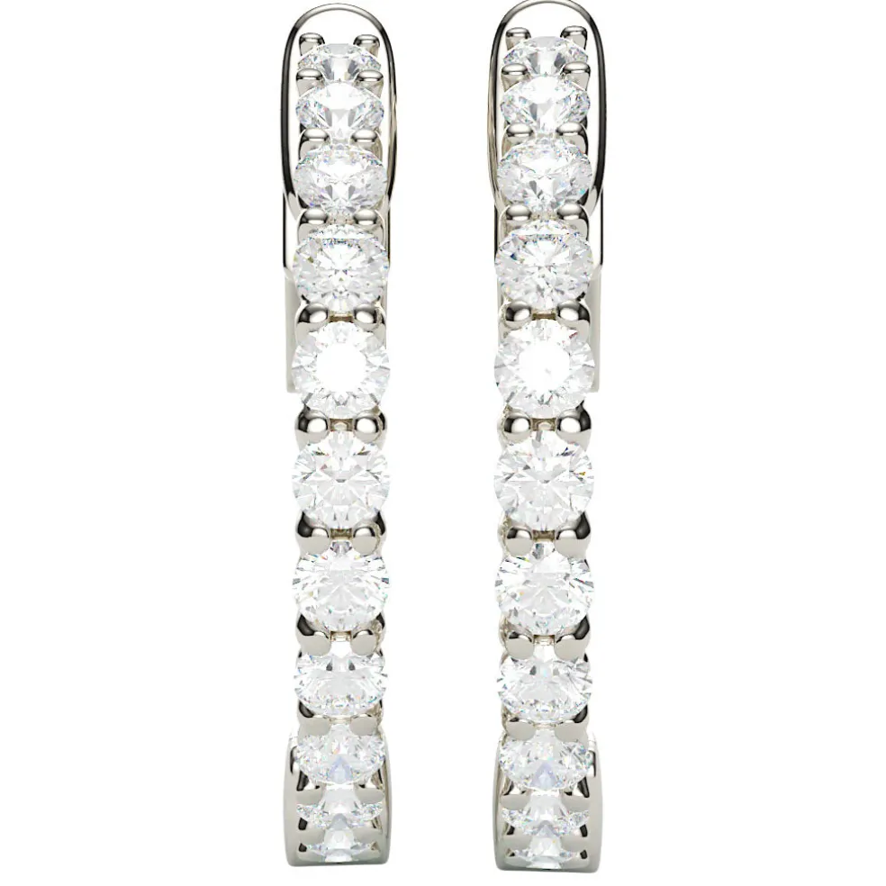 Sparkle with Effortless Elegance with the Vaniza! Embrace the Timeless Trend of our Diamond Hoop Earrings! Crafted in 14kt white gold weighing 3.95 g, these hoops are adorned with 36 round diamonds, totaling a brilliant 0.55 carats. Each diamond adds its own touch of radiance, making these earrings the perfect accessory to elevate any ensemble. Whether you’re rocking a casual chic look or dressing up for a glamorous affair, these hoops effortlessly combine classic charm with a modern edge. Let your style shine bright with these mesmerizing diamond hoop earrings, because when it comes to elegance, there’s no such thing as too much sparkle!