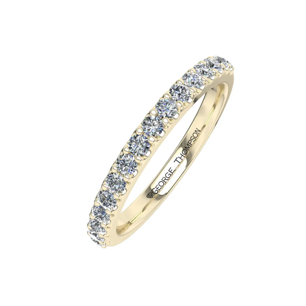 Meet the Acacia, a timeless and elegant diamond band that radiates classic beauty. Featuring 16 round brilliant accent diamonds with an approximate total weight of 0.30ct., the Acacia is a true symbol of love and commitment.