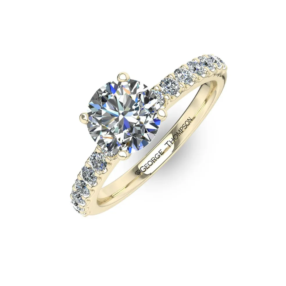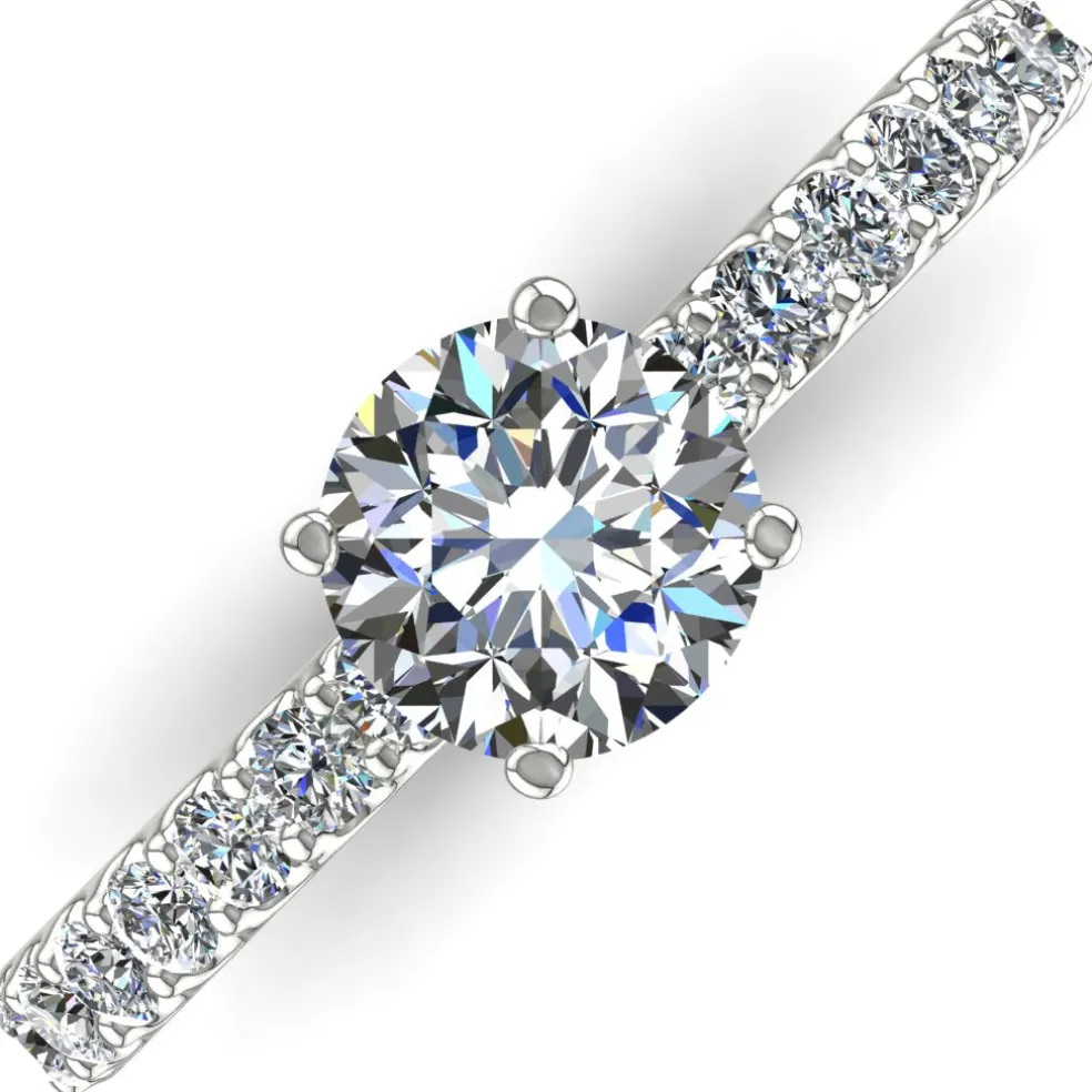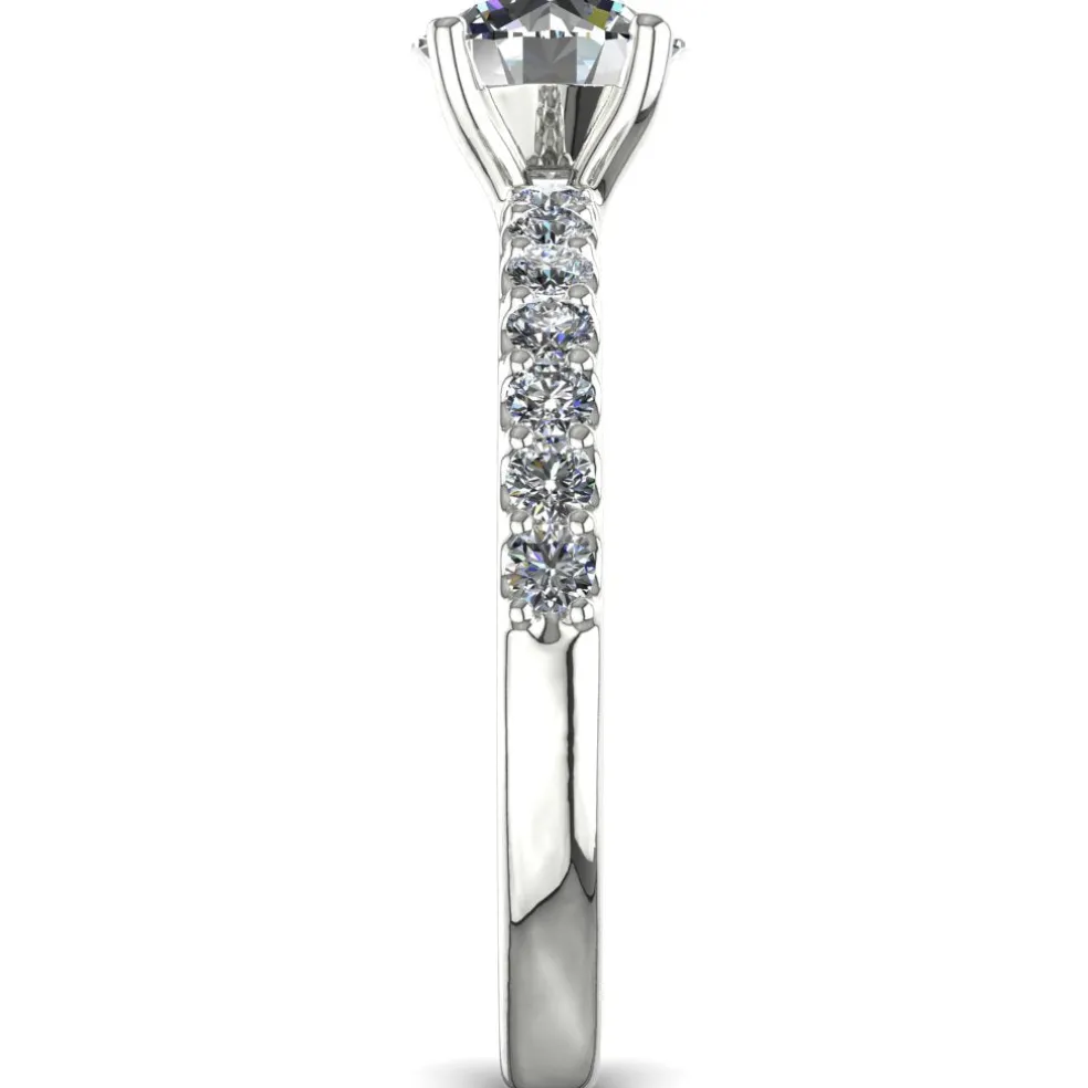 Meet the Acacia, a timeless and elegant diamond engagement ring that radiates classic beauty. The centerpiece of this stunning ring is a breathtaking 0.80ct Round Brilliant Diamond, accented by 14 additional Round Brilliant diamonds with a total weight of approximately 0.25cts. With a total diamond weight of approximately 1.05cts., the Acacia is a true symbol of love and commitment.