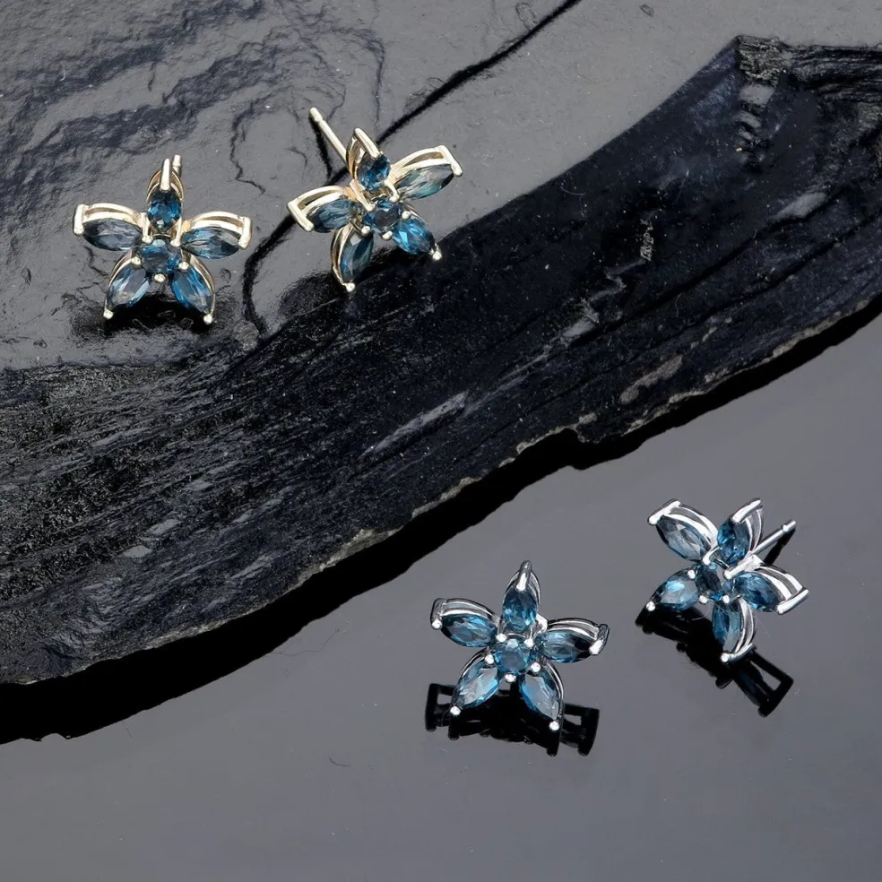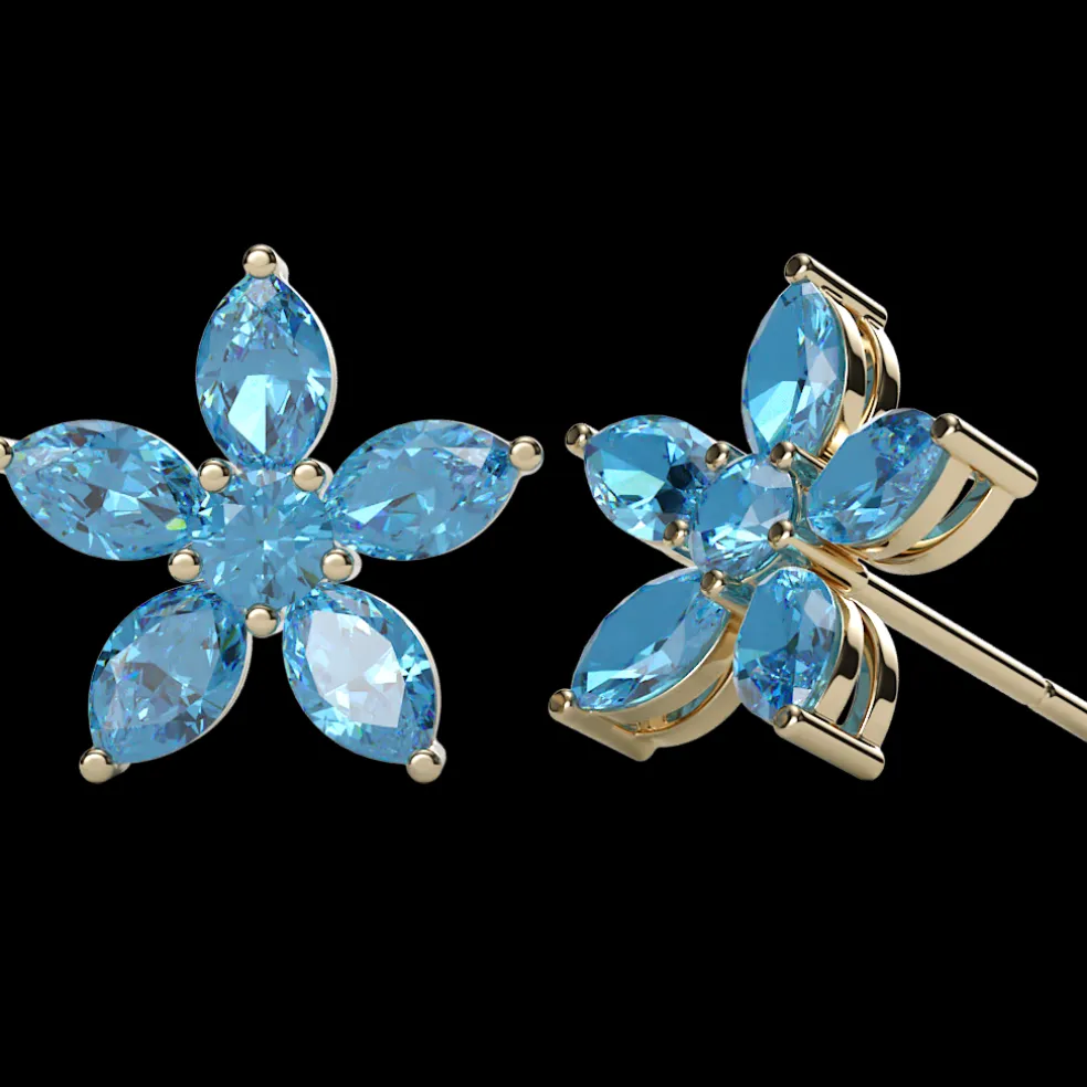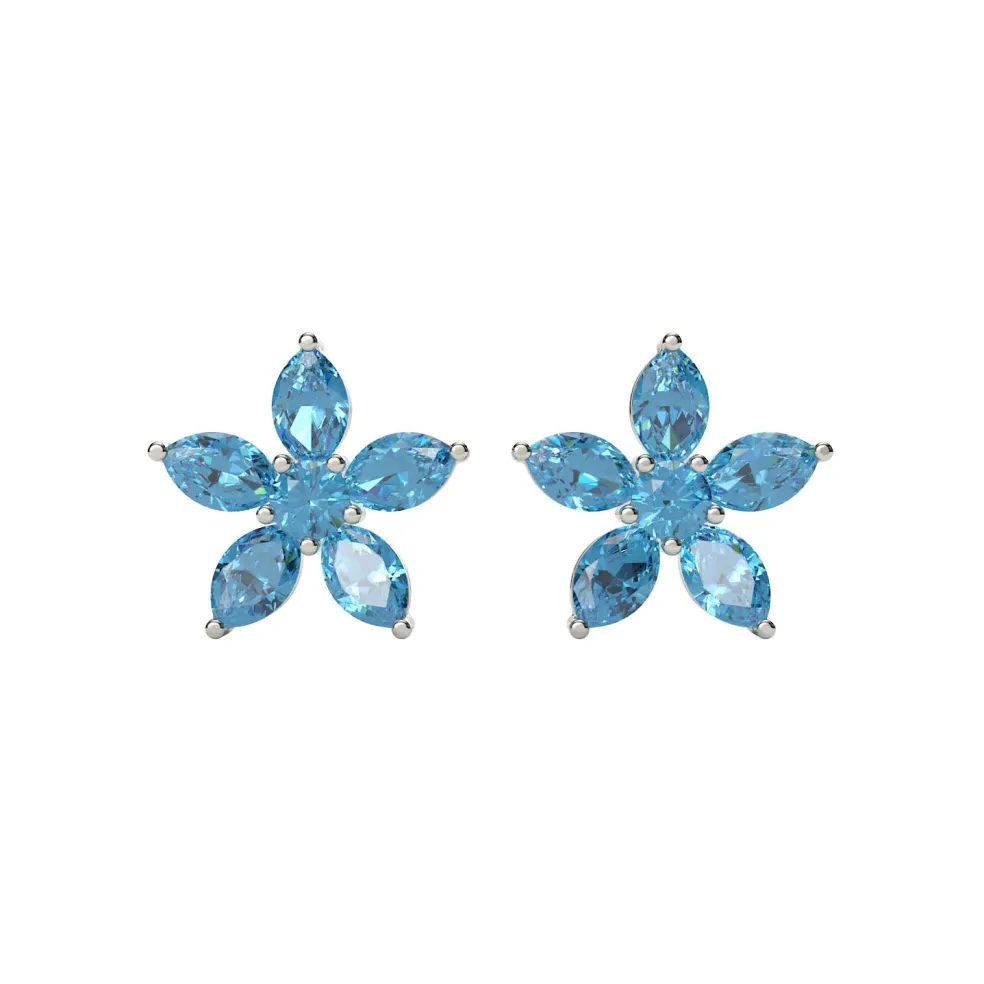 Elevate your look with the Agathena, a stunning pair of stud earrings in a delicate flower shape. Crafted in white gold, these earrings feature a pair of London Blue Topaz gemstones with a total weight of approximately 1.85 cts and weighs approximately 2.05 grams in 14kt white gold. But that’s not all, these earrings can also be customized with diamonds or any other gemstones of your choice! Available in 14kt white gold, yellow gold, rose gold, palladium, and platinum, these earrings are the perfect addition to any jewelry collection.