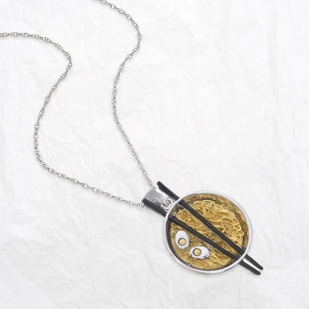 Make a statement with this striking custom-made pendant, crafted from a luxurious blend of 14KT white and yellow gold, weighing 8.45 grams. Featuring two polished onyx stones totaling 0.57 carats, this pendant exudes a bold and sophisticated charm. The contrasting gold tones perfectly complement the deep, mysterious allure of the onyx, creating a one-of-a-kind piece that’s both elegant and modern. A perfect choice for those who love to stand out with timeless style!