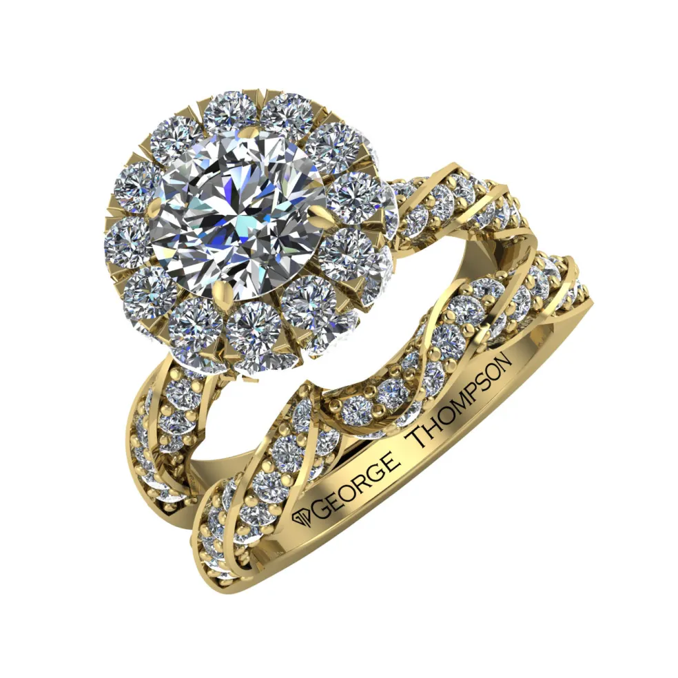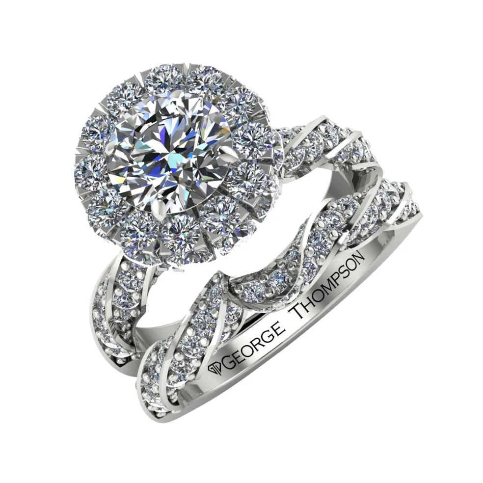 Get ready to be mesmerize to the Audreya, a diamond wedding set that radiates shimmering sophistication and modern elegance. At the center of this set is a stunning round brilliant diamond of approximately 1.00cts that captures the light and sparkles with every movement. Surrounding the center stone are 123 round brilliant accent diamonds of approximately 0.90cts that add a layer of chic shimmer to this already dazzling piece. The total diamond weight of this set is approximately 1.90cts, making it a true statement piece.