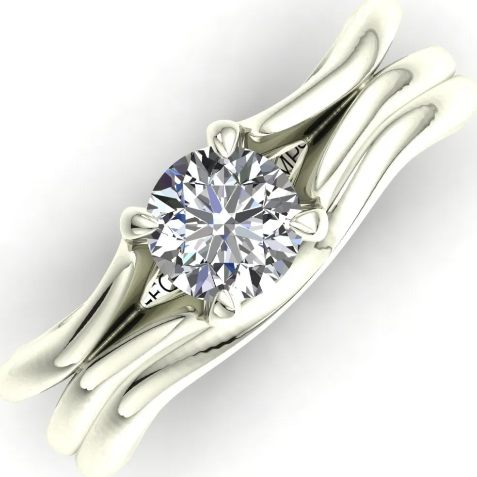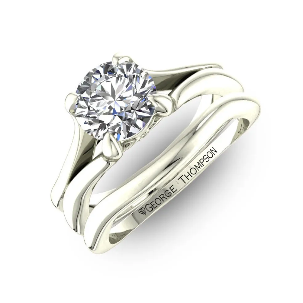 The Cadora, a wedding set that exudes sophistication and elegance in its simplicity. This stunning ring features a single, sparkling Round Brilliant Diamond at its center, weighing approximately 0.70ct, that captures the light beautifully and adds just the right amount of sparkle to your special day. The ring is crafted from lustrous 14kt white gold and and weighs approximately 5.60 grams, but also available in Yellow Gold, Rose Gold, Palladium, and Platinum, to perfectly match your style.