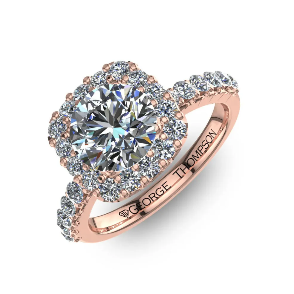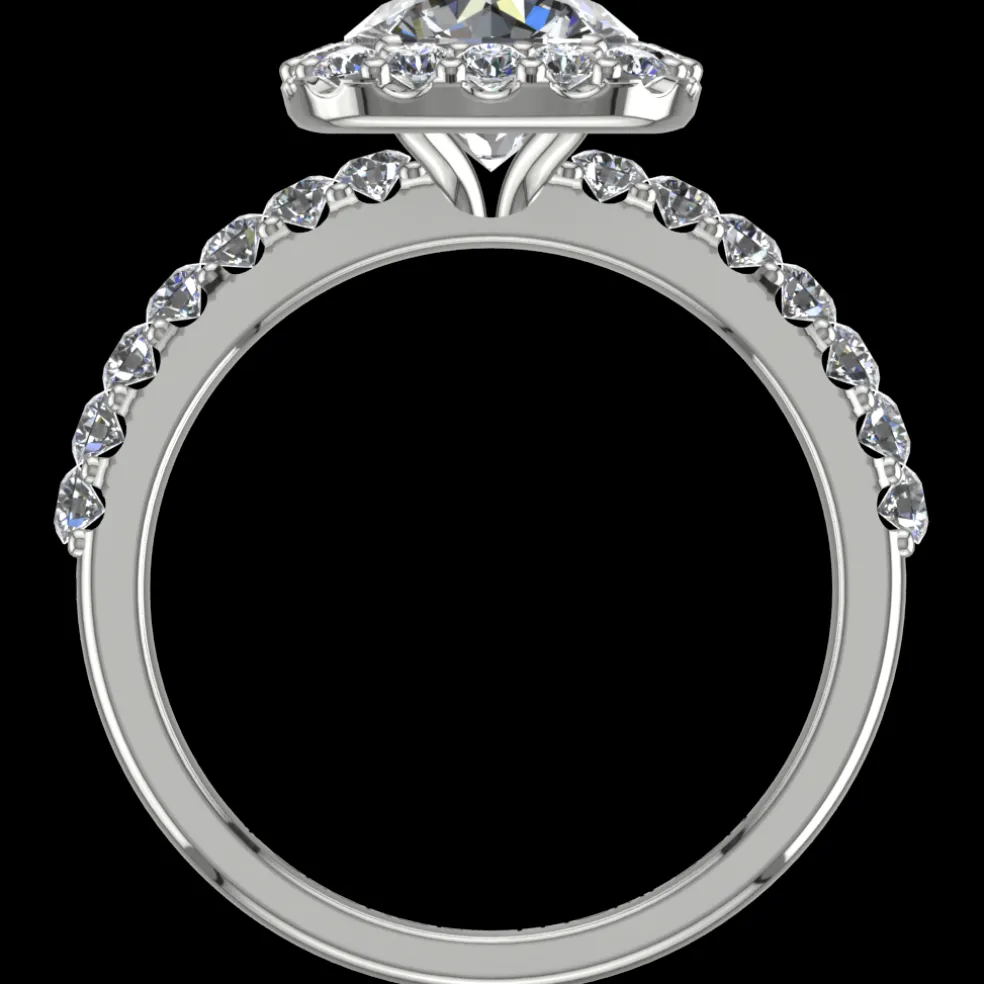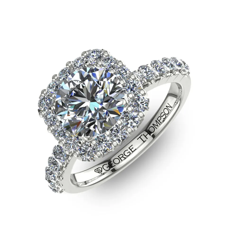 Behold the stunning Cesta, a breathtaking expression of love and commitment. This dazzling engagement ring features a center Round Brilliant Diamond of approximately 1.50ct, brilliantly accented by 30 Round Brilliant diamonds with an approximate total weight of 0.40cts. The total diamond weight of this ring is approximately 1.90cts, ensuring it glimmers from every angle. Crafted from the finest 14kt white gold, it weighs approximately 4.00 grams, ensuring both durability and comfort.