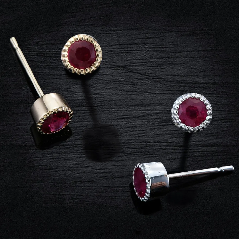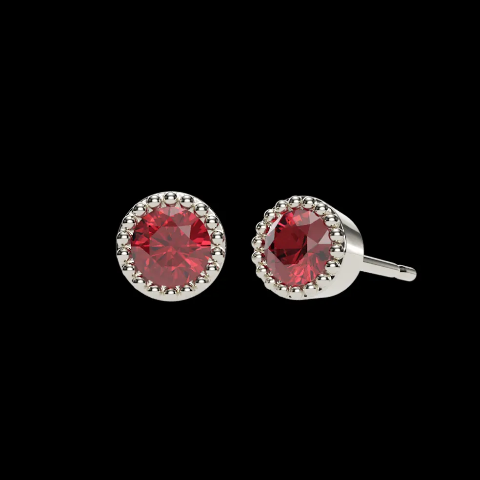 Dress your ears in the allure of passion with the Hebina, an exquisite 0.57 grams of refined elegance designed to elevate your style. At their center, two vibrant round rubies, totaling 0.37 carats, capture the essence of love and desire. Nestled in a bed of white gold, these earrings are not just accessories; they’re a symphony of color and brilliance, crafted to grace your ears with timeless beauty.