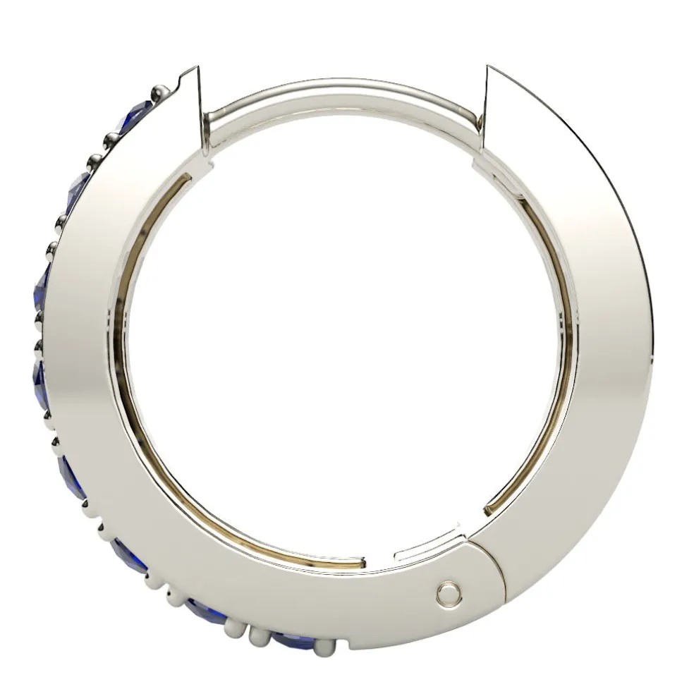 At the center of attention, 16 pcs of mesmerizing round sapphires, totaling 0.35 carats, add a burst of color and allure. Crafted with precision and passion, these earrings aren’t just embellishments; they’re a declaration of your unique style and a testament to the enduring beauty of gemstones. The combination of White Gold, sapphires, and diamonds makes these earrings a true expression of modern chic.