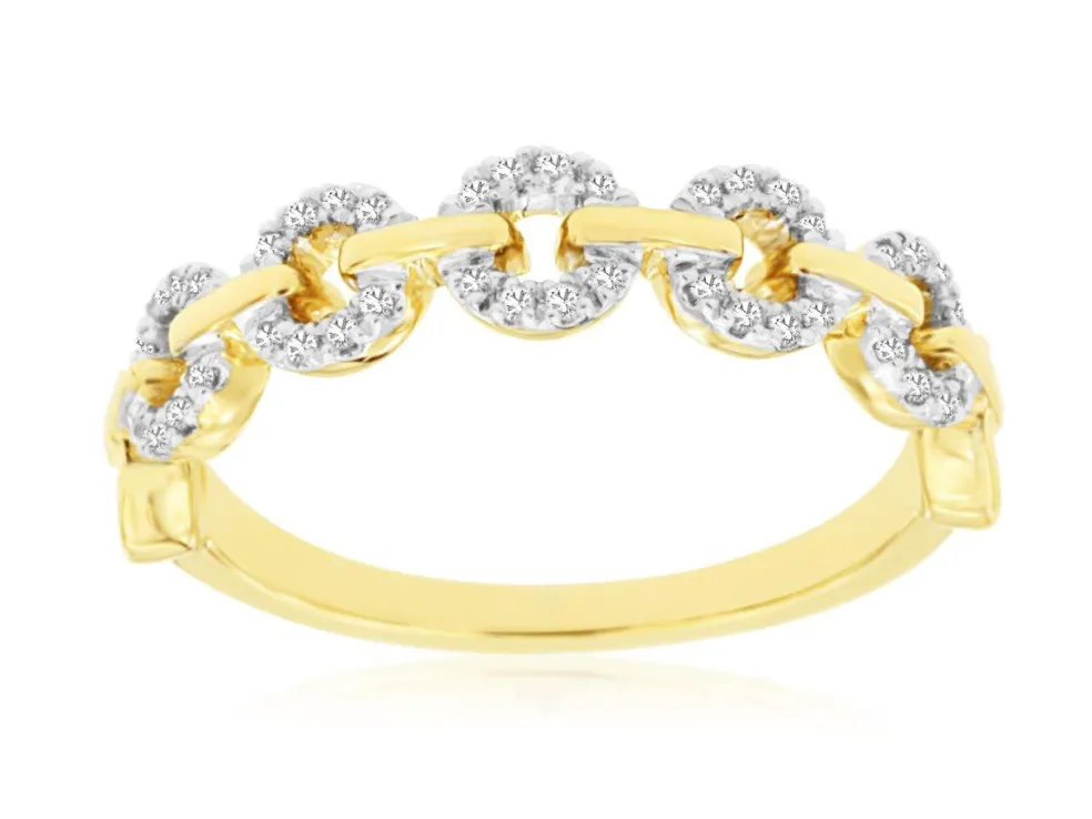 Celebrate your love story with this timeless .10 carat diamond anniversary band in yellow gold, the Hooda. Each sparkling diamond is a symbol of the moments you’ve shared, set in a warm golden band that radiates with the glow of your journey together. Simple yet meaningful, this ring is a chic reminder that true love only gets better with time.