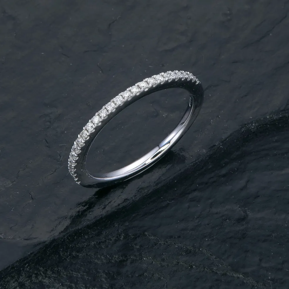 Meet “The Igora” a sleek and minimalist wedding band that radiates effortless style and sophistication. Crafted from high-quality 14kt white gold, this band features 25 round brilliant accent diamonds with an approximate total weight of 0.15cts, adding just the right amount of sparkle to your special day.