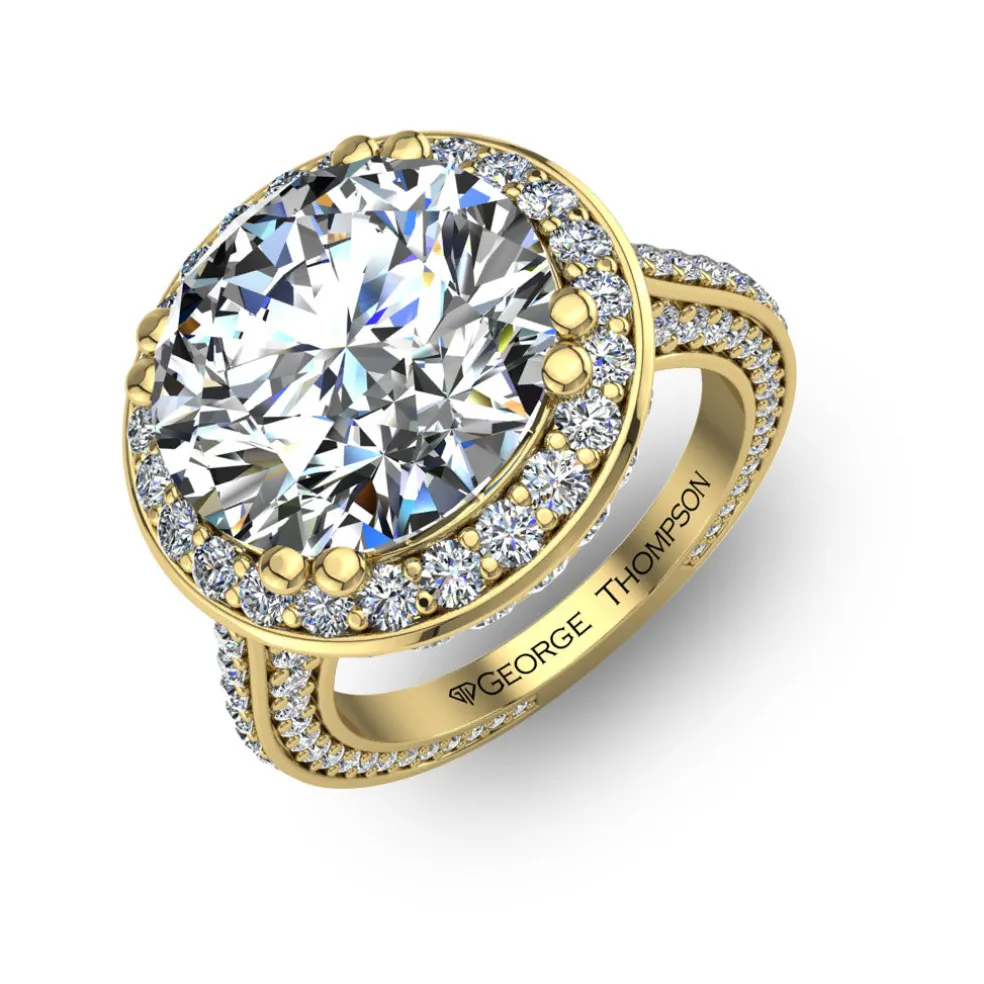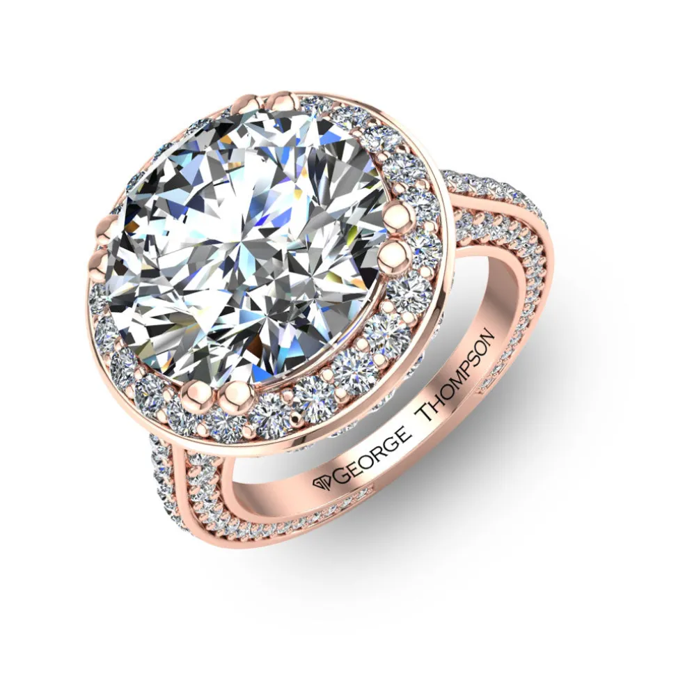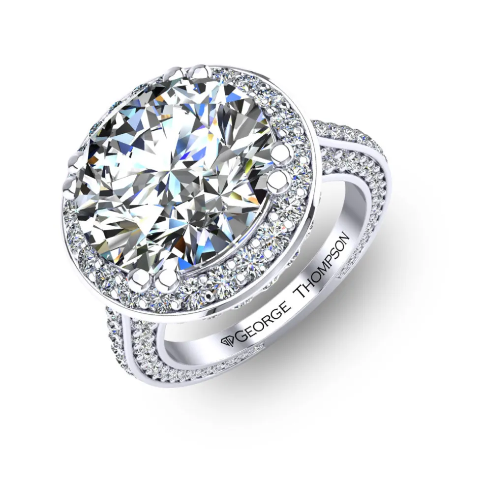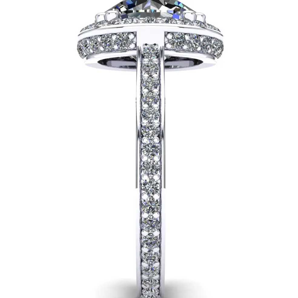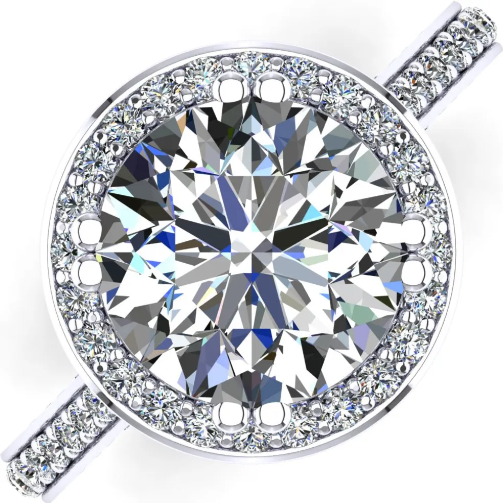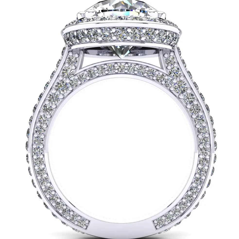 The Isola is a truly opulent diamond engagement ring that will make any bride feel like royalty on her special day. The centerpiece of this ring is a stunning Round Brilliant Diamond that boasts a sizeable 3.00 carats, making it a true showstopper. The center stone is accented by 174 Round Brilliant Diamonds with an approximate total weight of 1.20 cts, which beautifully enhance the center stone’s brilliance and fire. This ring has a total diamond weight of approximately 4.20 cts, which makes it a statement piece that will surely turn heads.