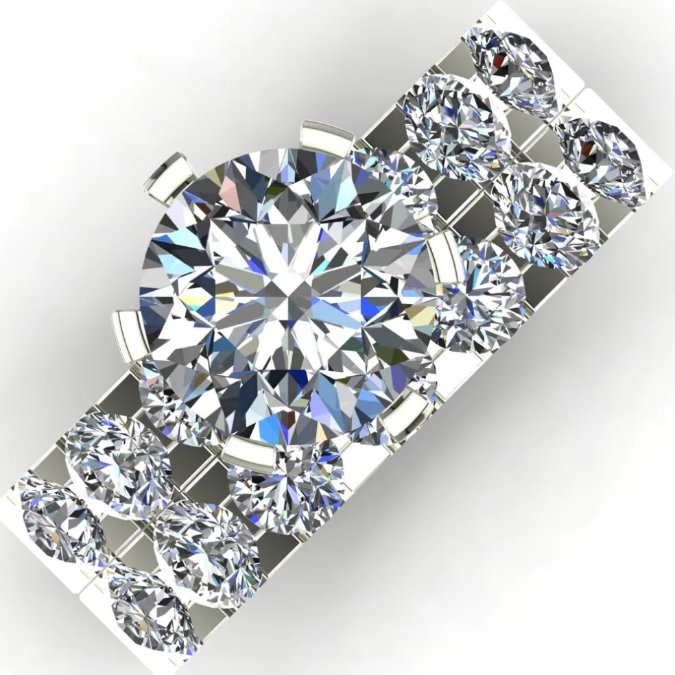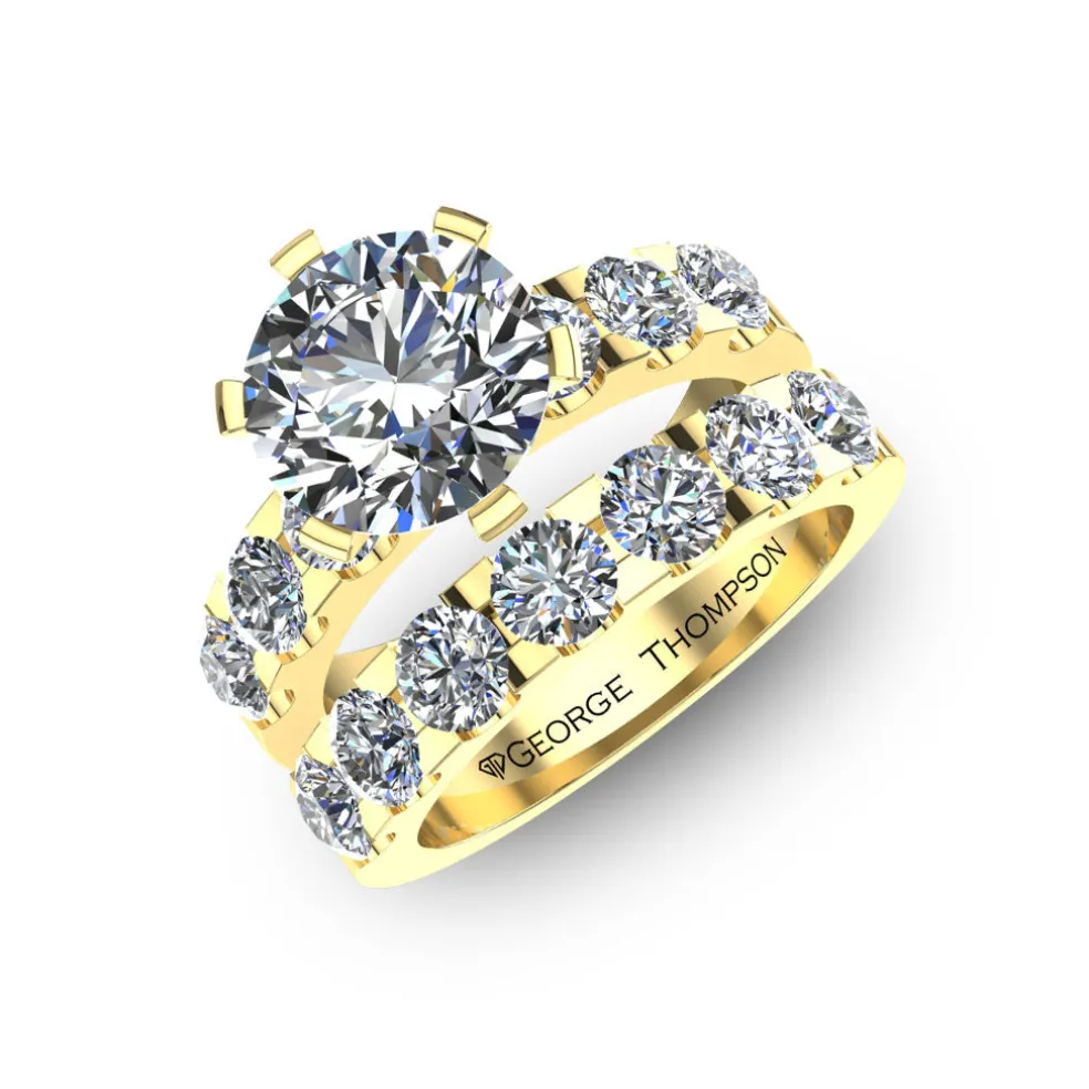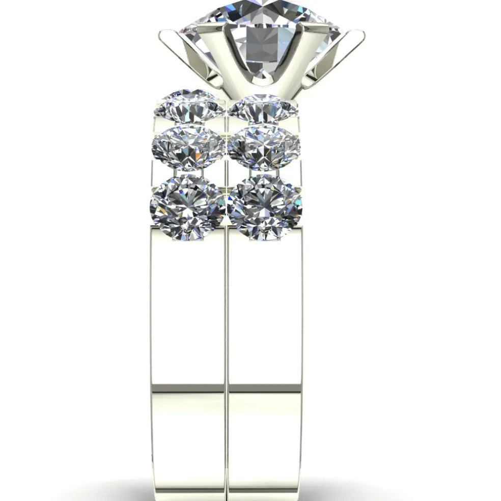 The Jana, a grand and exquisite wedding set that radiates pure luxury and extravagance. This breathtaking ring features a center round brilliant diamond of approximately 2.00ct, captivating the eye with its undeniable brilliance and beauty.