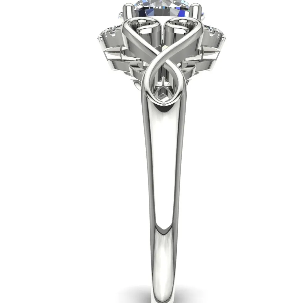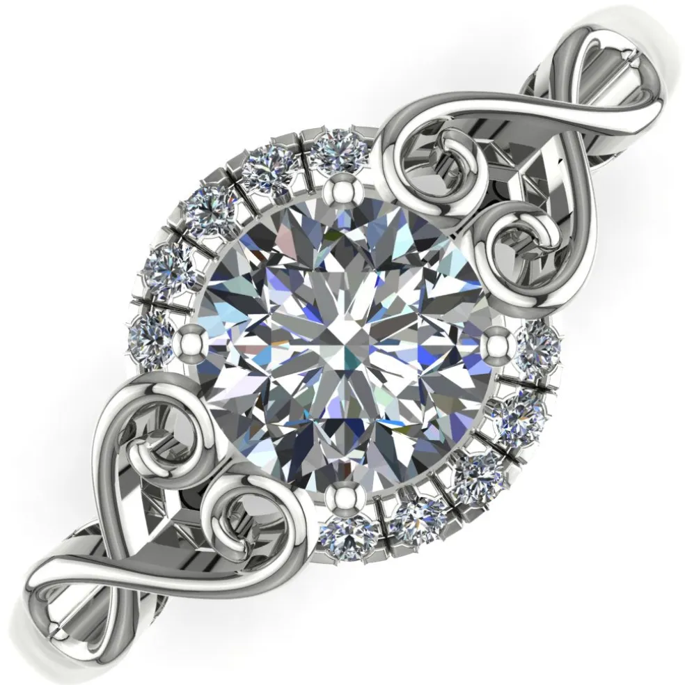 Meet the Joneta, the ultimate statement piece for the modern bride. This stunning piece features a brilliant round diamond at its center, weighing approximately 1.00ct. Surrounded by 10 round brilliant accent diamonds, adding an approximate total weight of 0.10cts, the Joneta boasts a total diamond weight of approximately 1.10cts. The unique design is crafted in 14kt white gold, weighing approximately 3.25 grams and is also available in Yellow Gold, Rose Gold, Palladium, and Platinum.