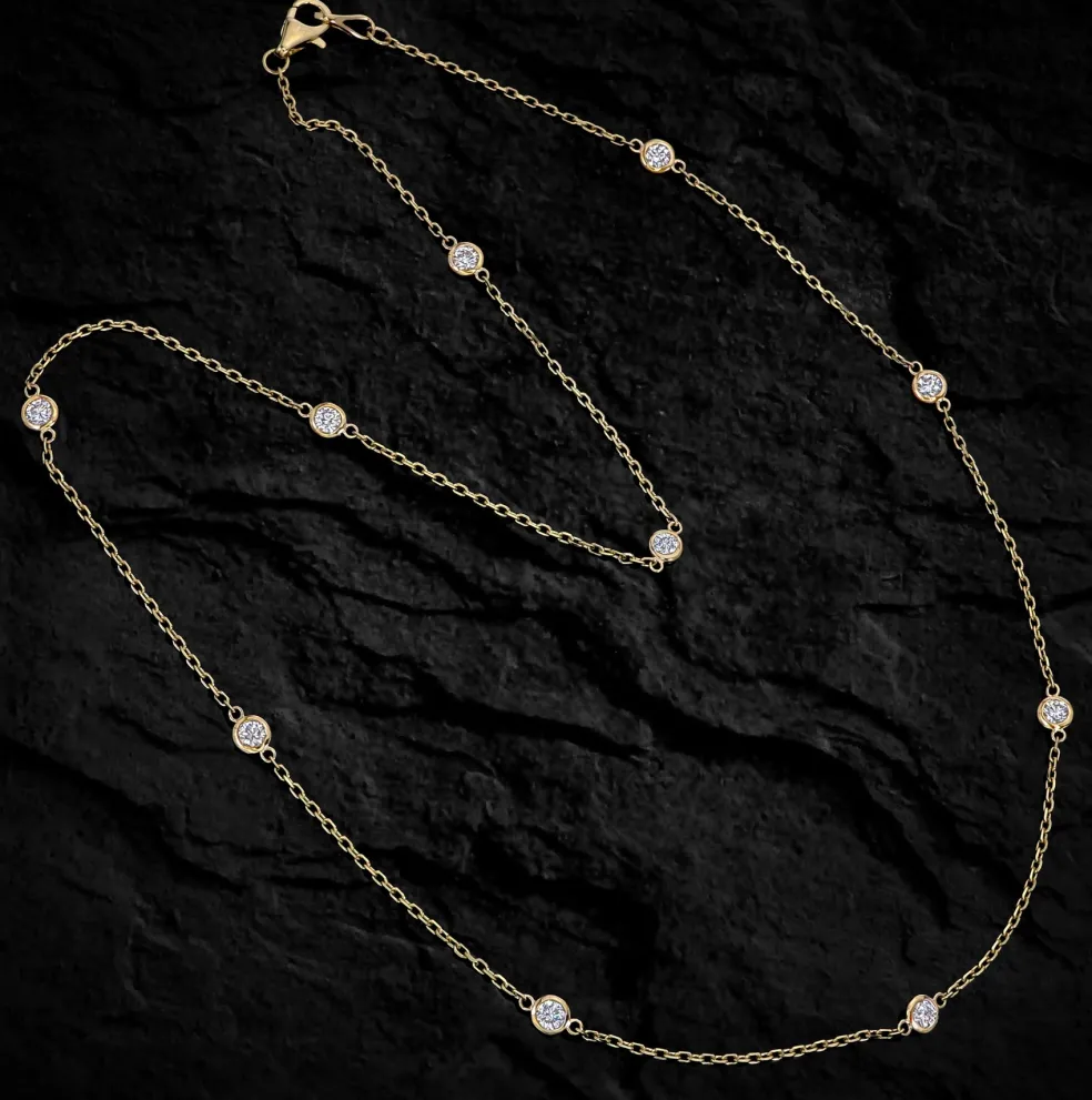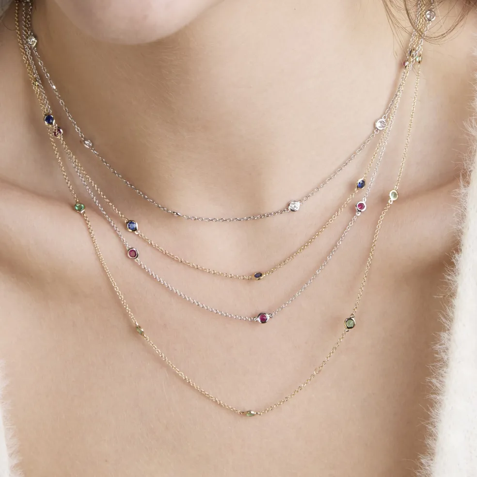 Introducing The Julia, George Thompson Diamond Co.’s version of the classic ‘diamond by the yard’ necklace. Bezel set diamonds, sapphires, emeralds or rubies perfectly positioned on a solid 14k gold chain that can be worn at your desired length with the adjustable loops. Elevate any outfit with this luxurious everyday essential. Trust us, this is an amazing gift as well because it looks great on everyone.