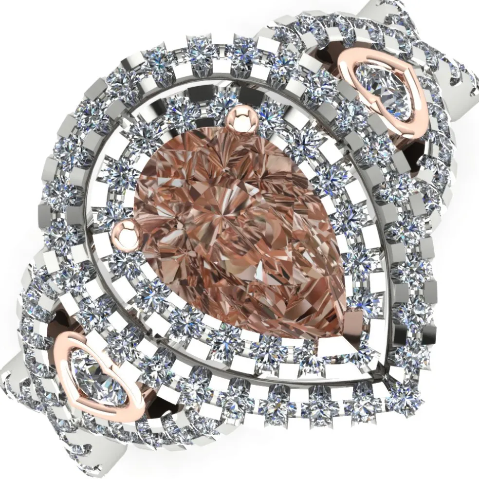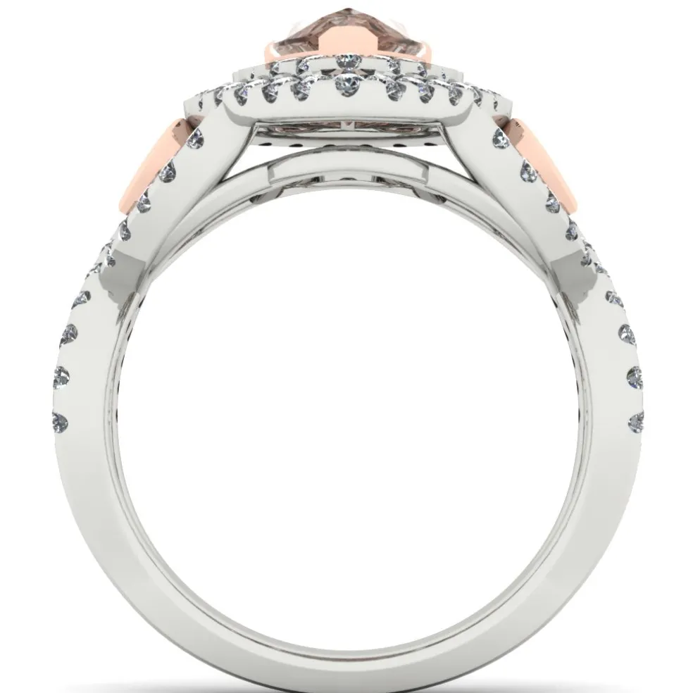 A true one-of-a-kind piece that is sure to turn heads, the Lacrima. This stunning ring features a luscious center Pearshape Cut Chocolate Diamond of approximately 1.00ct, surrounded by 85 dazzling Round Brilliant Accent Diamonds of approximately 0.65cts. The combination of white and rose gold beautifully complements the richness of the chocolate diamond, creating a truly unique and grandiose look. With a total diamond weight of 1.65cts, this ring is not for the faint of heart. Make a statement and show off your individuality with the Lacrima, available in White Gold, Rose Gold, and featuring the highest quality diamonds.