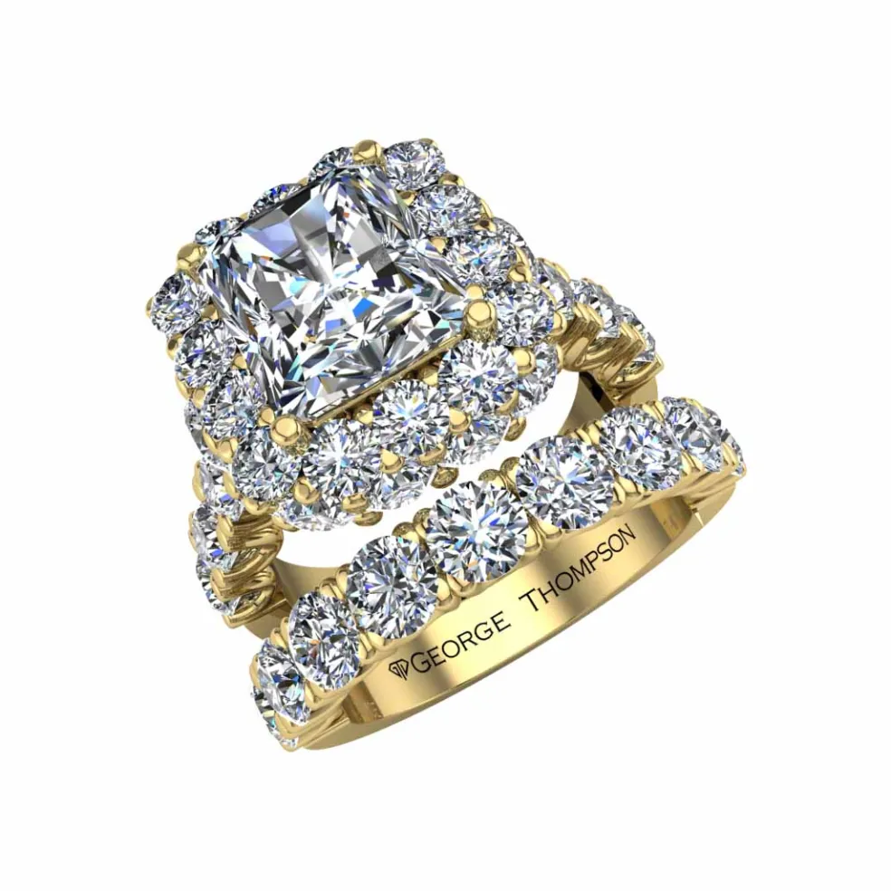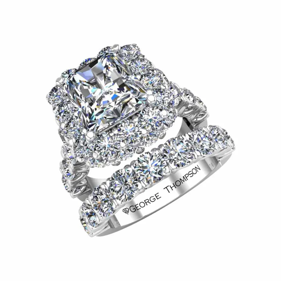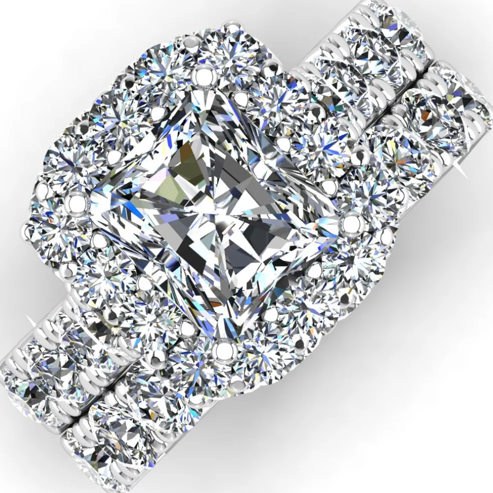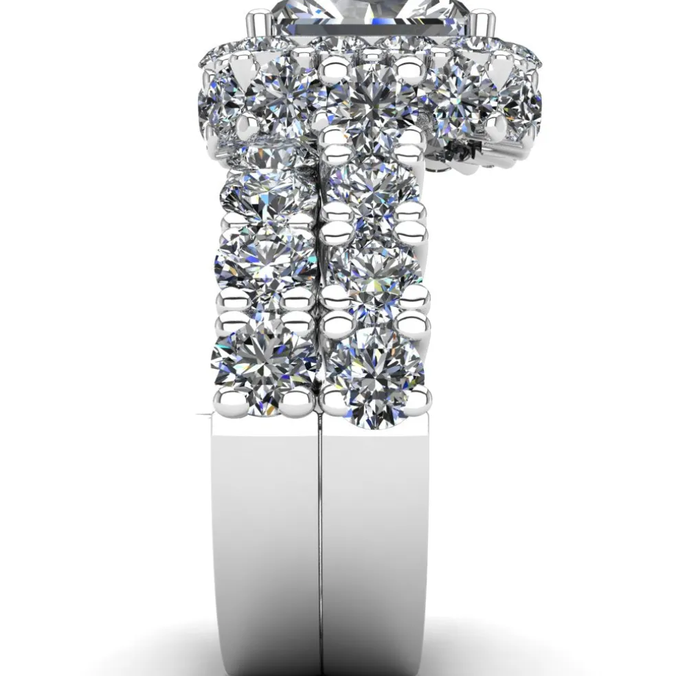 Elevate your wedding day look with our simple yet stunning diamond wedding set, the Luminata. Featuring a center Emerald Brilliant Diamond of approximately 1.20 cts., 74 Round Brilliant accent diamonds with an approximate total weight of 3.00 cts. This set has a total diamond weight of approximately 4.20cts., this set offers the perfect balance of elegance and simplicity.