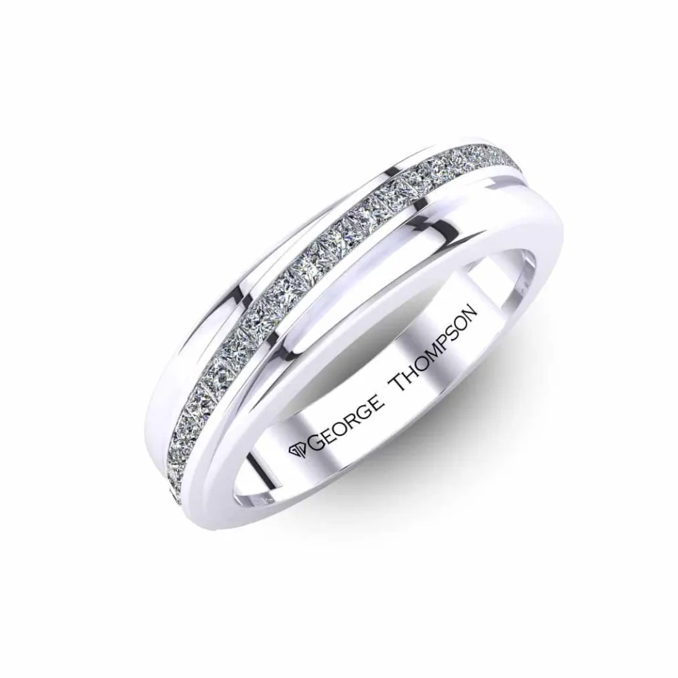 Meet the Mahda, a sleek and classy white gold band adorned with 21 sparkling princess cut accent diamonds, totaling approximately 0.25ct. With a total diamond weight of approximately 0.25cts and a weight of around 4.00 grams in 14kt white gold, this band strikes the perfect balance between simplicity and elegance.
