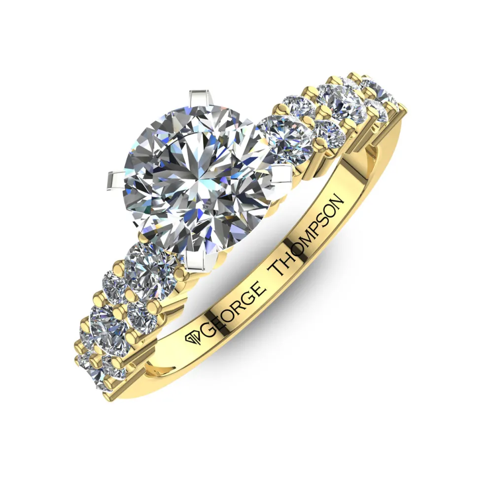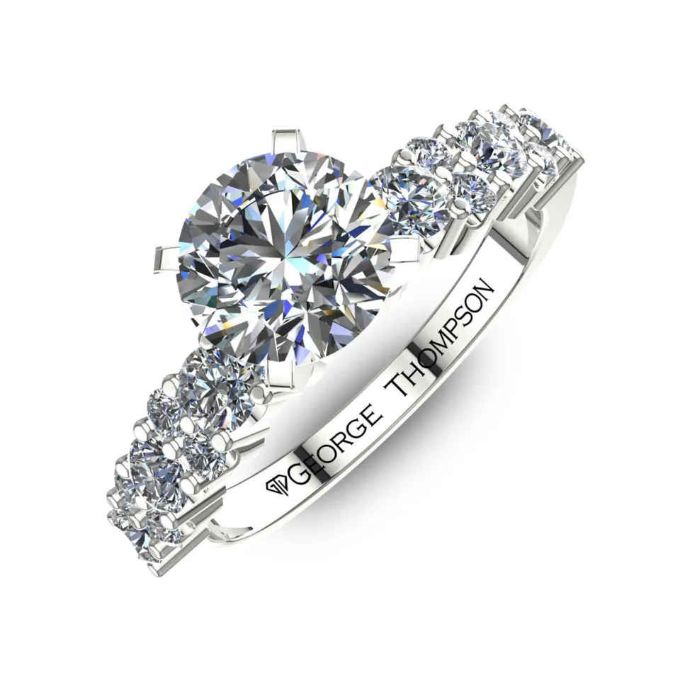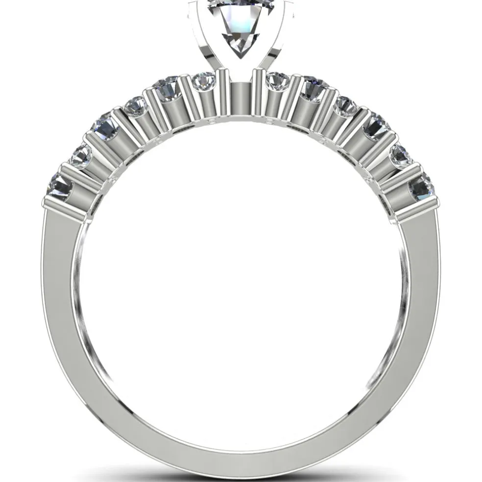 Get ready to sparkle and shine with the Torda. This simple yet breathtaking engagement ring is crafted with the finest quality 14kt white gold and adorned with a center Round Brilliant Diamond of approximately 1/2ct., 18 Round Brilliant accent diamonds with an approximate total weight of 0.50cts. and has a total diamond weight of approximately 1.00cts. Weighing approximately 2.5 grams, this ring is delicately designed to fit any size, ensuring that it is comfortable and snug for a lifetime of wear.