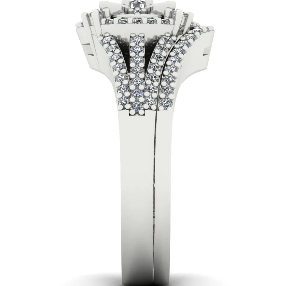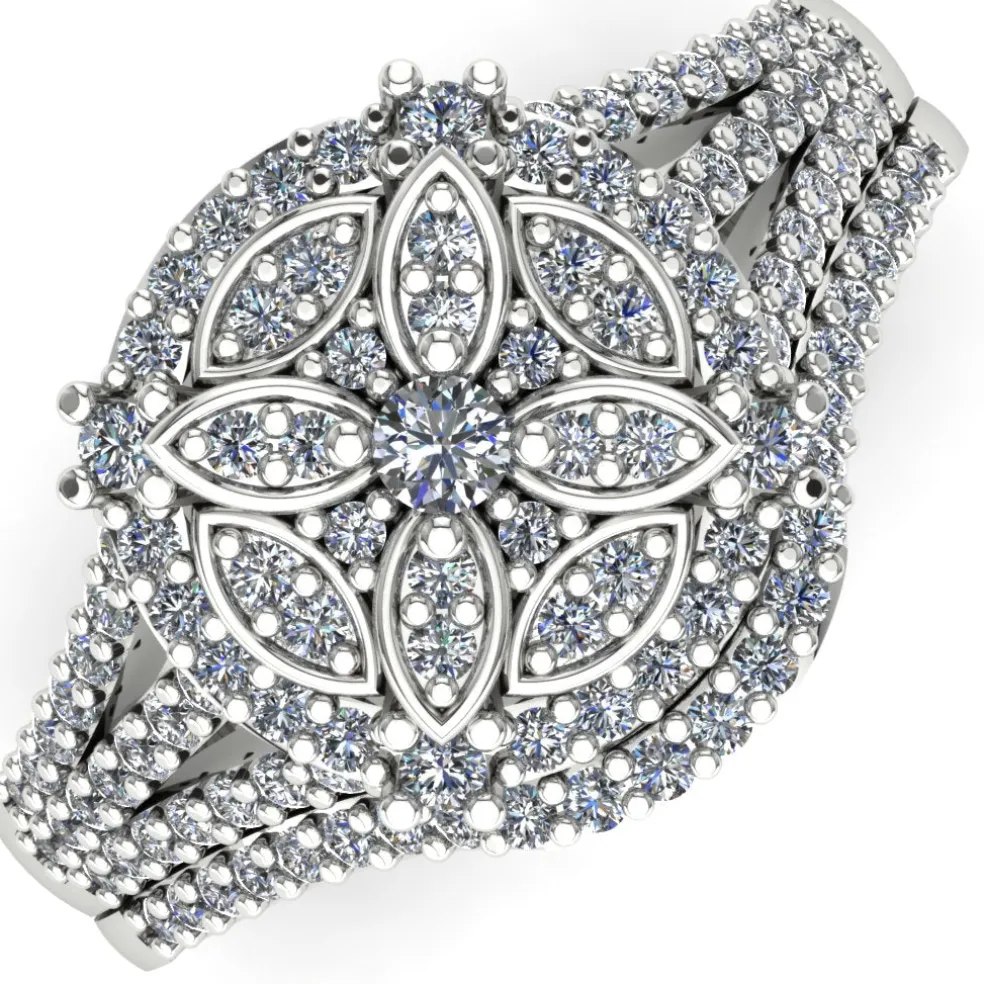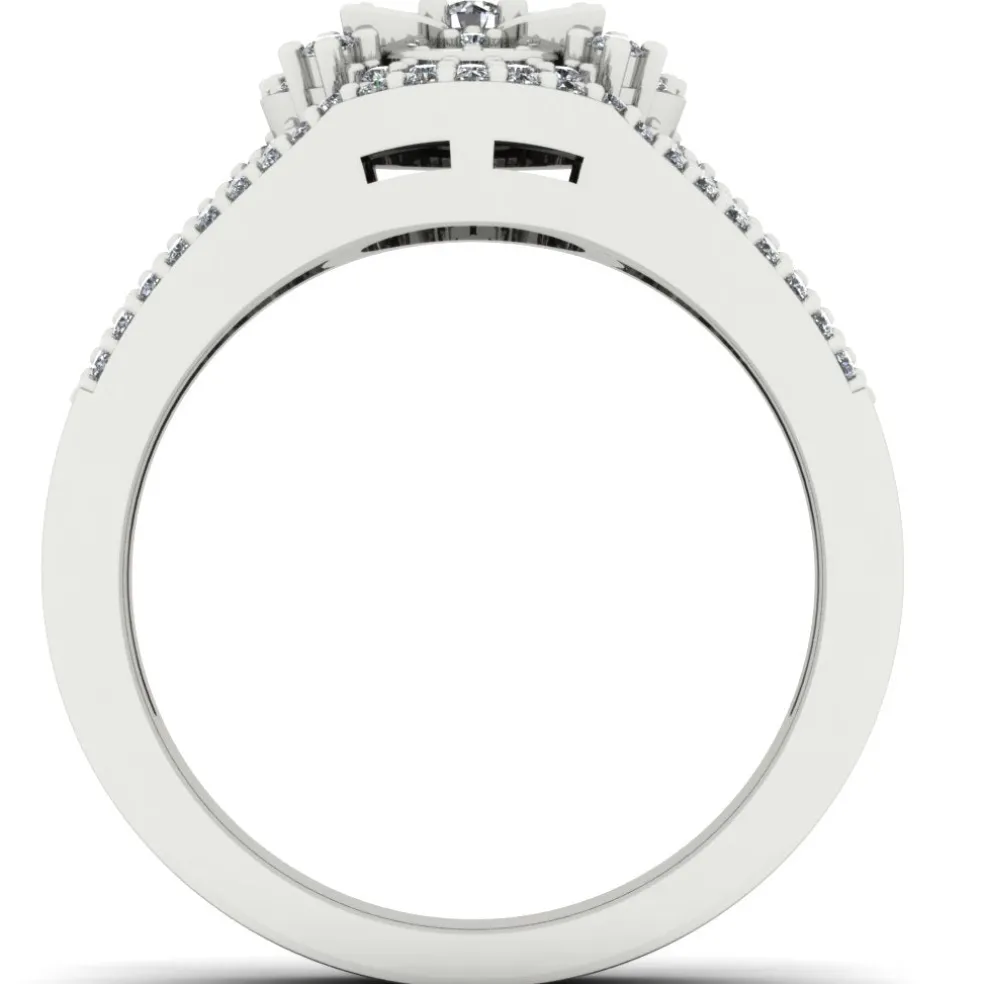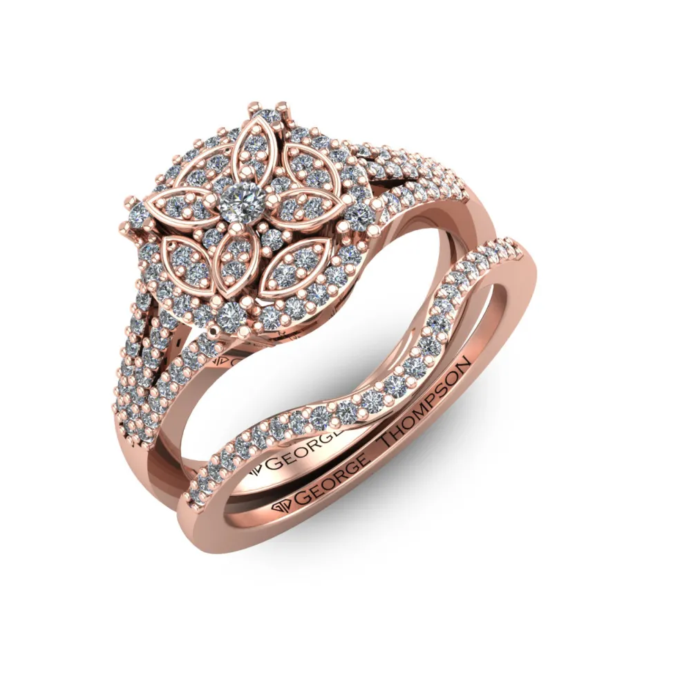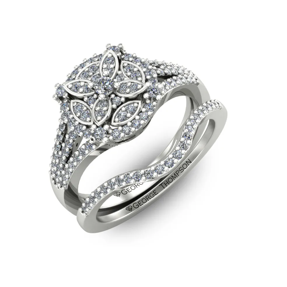 Meet the Margherita, a beautiful and feminine piece that will take your breath away. Crafted in 14kt white gold, this set features 110 round brilliant diamonds of approximately 0.55cts. The ring has a total diamond weight of approximately 0.55cts, making it the perfect choice for the modern and stylish bride who loves understated elegance. The Margherita is the epitome of sophistication and femininity, with its delicate details and exquisite design. Weighing in at a total gold weight of 5.7g, this piece is both lightweight and durable, perfect for everyday wear.