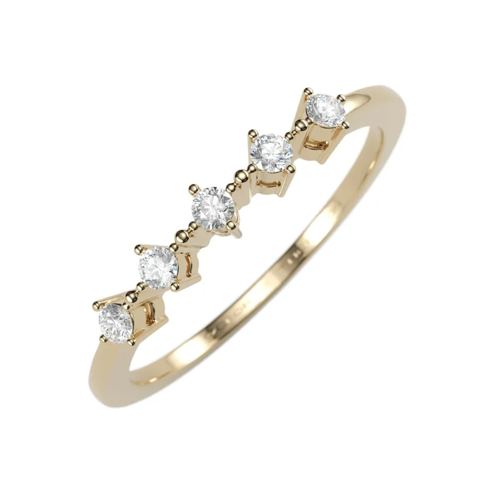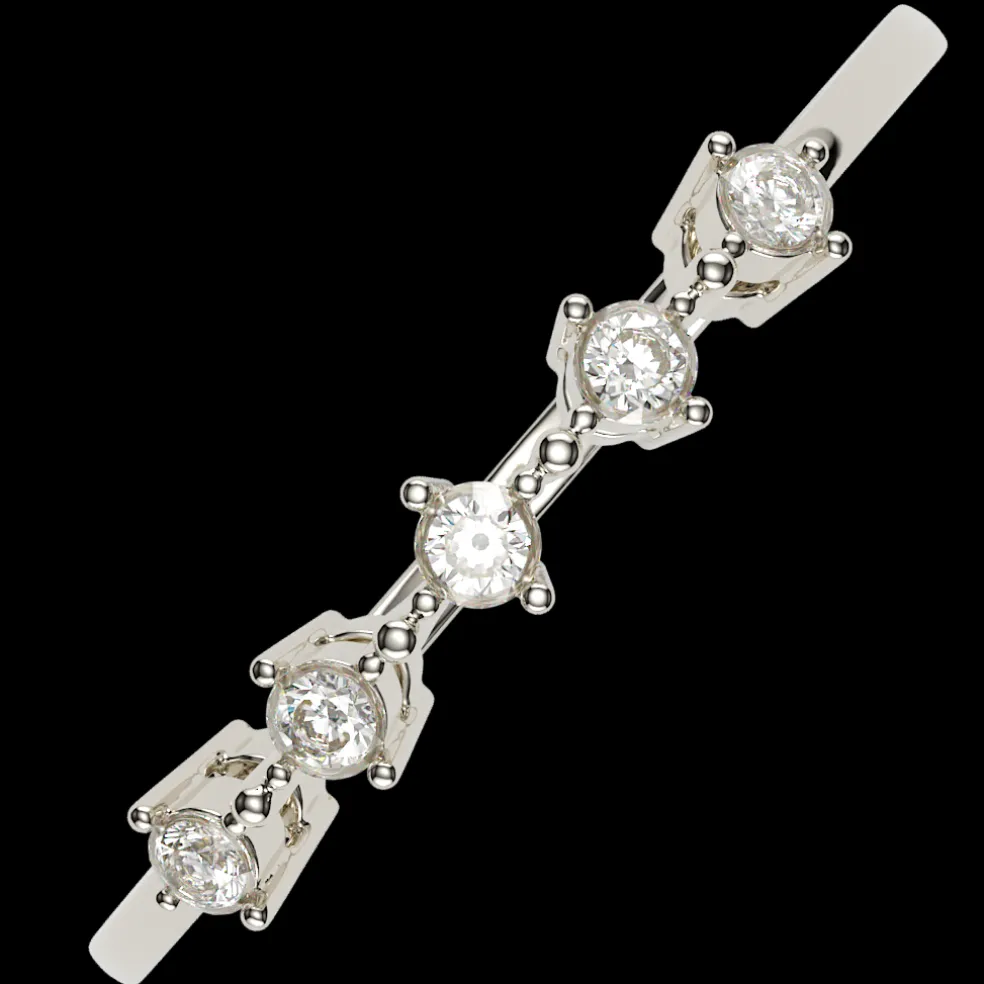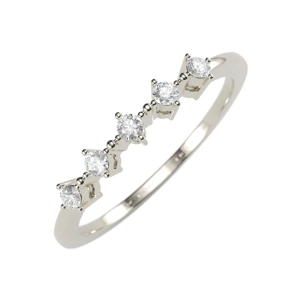 This band is a classic and elegant addition to your jewelry collection – a white gold band adorned with five Round Brilliant accent diamonds, with an approximate total weight of 0.10ct. This Band has a total diamond weight of approximately 0.10ct. and weighs approximately 1.30 grams in 14kt white gold, and is also available in Yellow Gold, Rose Gold, Palladium and Platinum.