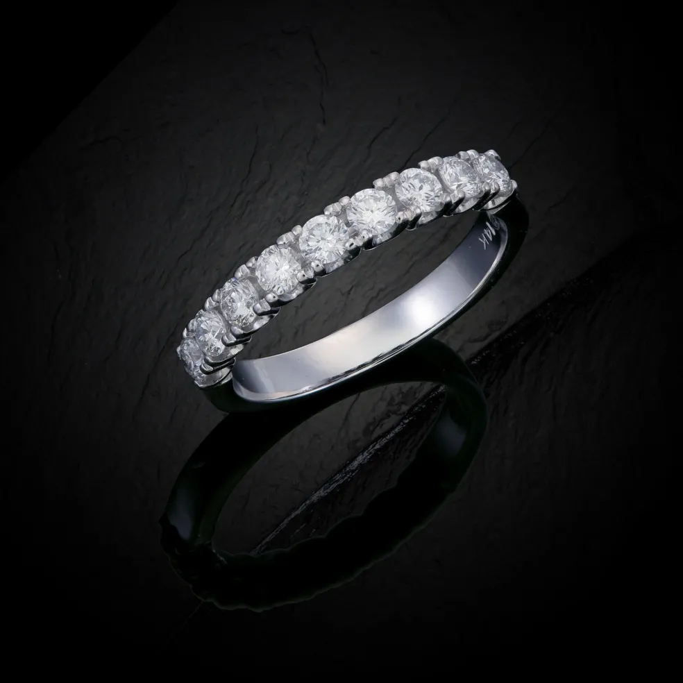 Get ready to make a grand statement with the Mazzetta, a luxurious and captivating diamond band that is sure to take your breath away. Crafted from 14kt white gold, this ring is a true masterpiece of design and craftsmanship, destined to become a treasured family heirloom for generations to come.