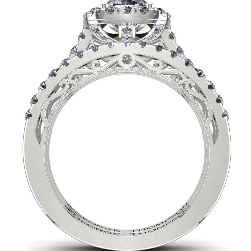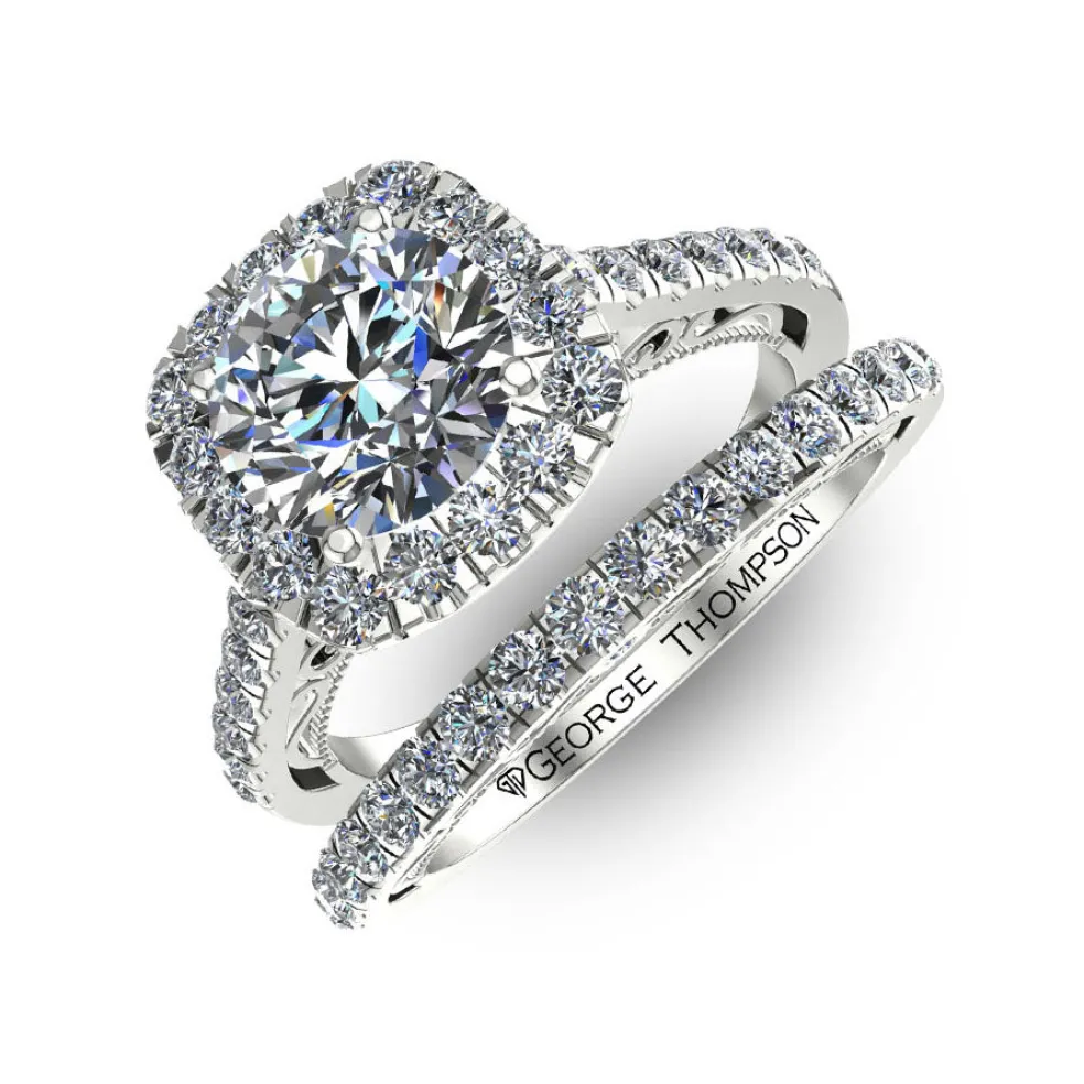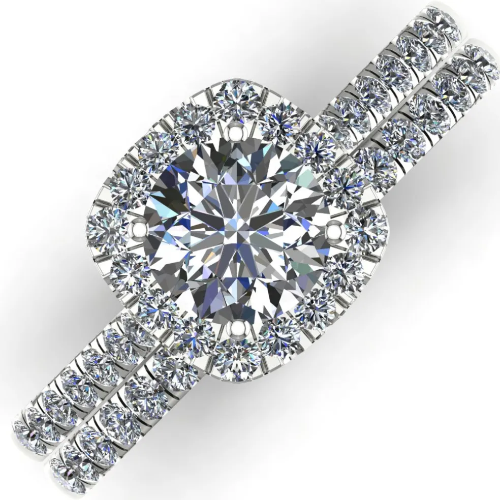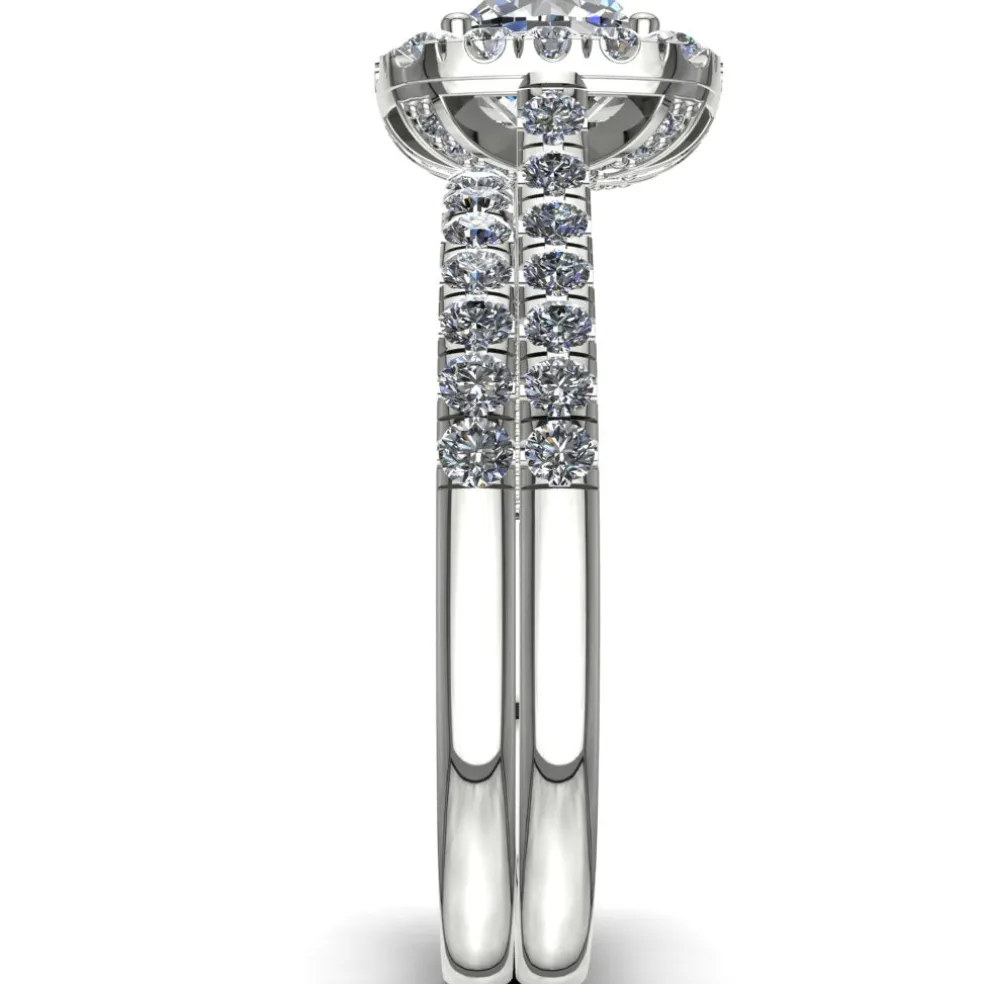 Meet the Mineva, a stunning White Gold Diamond Wedding Set that is sure to leave you breathless. At the center of this set is a gorgeous Round Brilliant Diamond weighing approximately 1.00ct, perfect for the bride who wants to make a statement on her special day. The center stone is further complemented by 69 Round Brilliant accent diamonds with an approximate total weight of 0.65cts, adding even more brilliance and sparkle to this already stunning piece. With a total diamond weight of approximately 1.65cts, the Mineva is the ultimate symbol of love and commitment. Crafted in 14kt rose gold, this set weighs approximately 6.55 grams and is also available in Yellow Gold, White Gold, Palladium, and Platinum.
