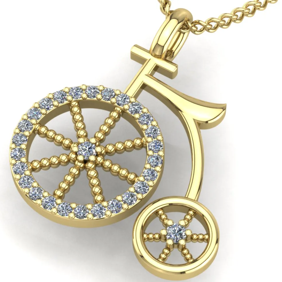 The Penca pendant is a perfect statement piece for any cycling enthusiast or anyone who loves unique and trendy jewelry. Available in Yellow Gold, Rose Gold, Palladium, and Platinum to match your personal style.
