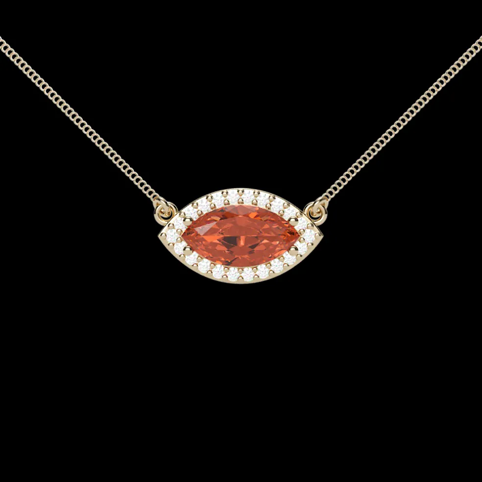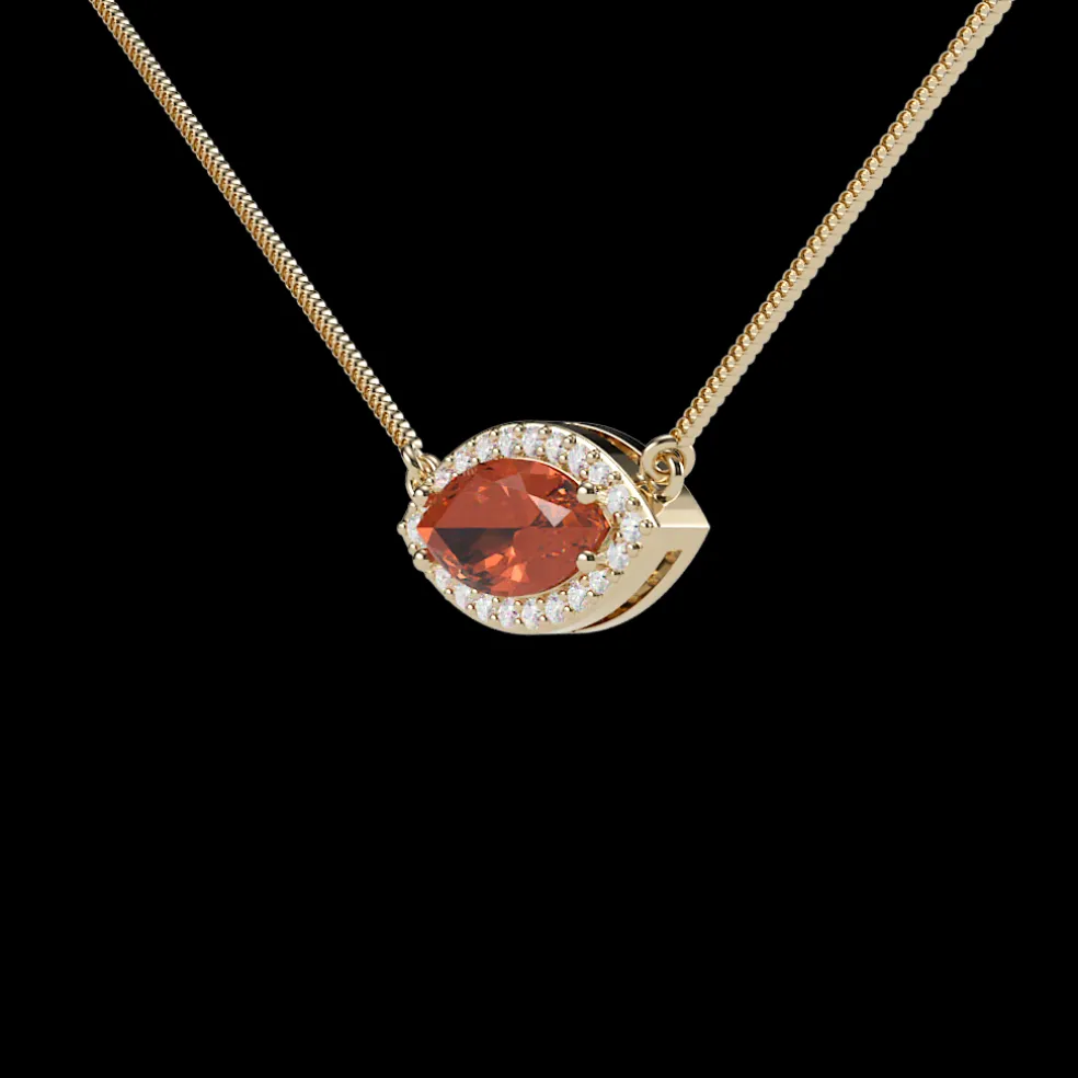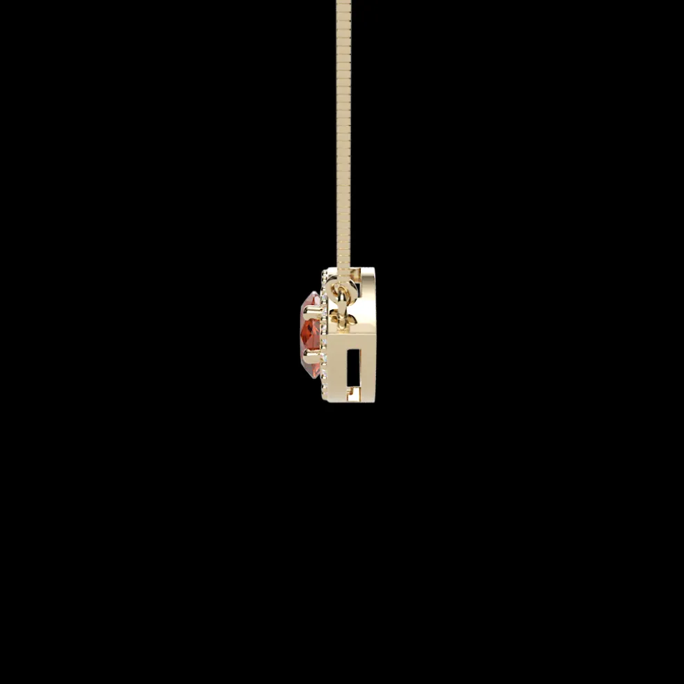 Bold, fiery, and irresistibly elegant—the Prisca Spessartite Garnet is a true statement of luxury. At its center glows a 0.92-carat Spessartite Garnet, renowned for its rich, sunlit orange hue that exudes warmth and vitality. Surrounding this radiant gem are 20 round-cut diamonds, totaling 0.07 carats, adding a delicate shimmer that enhances its brilliance. This pendant is lightweight yet striking, perfect for those who love distinctive beauty. Whether worn as a daily signature piece or for special occasions, this pendant is a treasure of sophistication and charm.